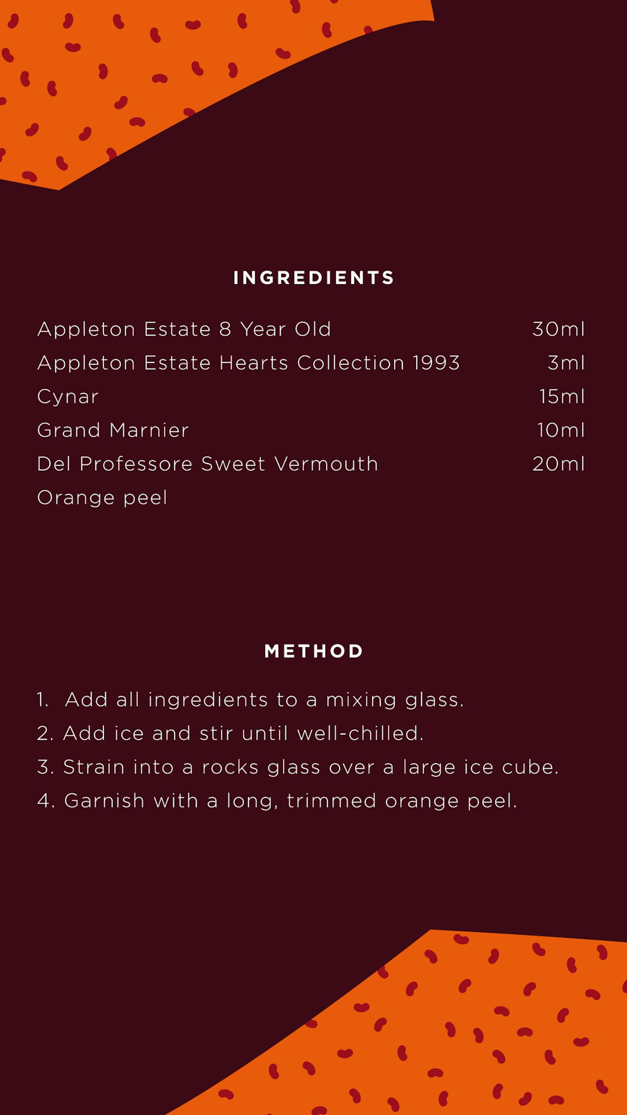 Our take on the Kingston Negroni incorporates a touch of high-ester vintage rum alongside Appleton Estate 8-Year to amplify its funky character.