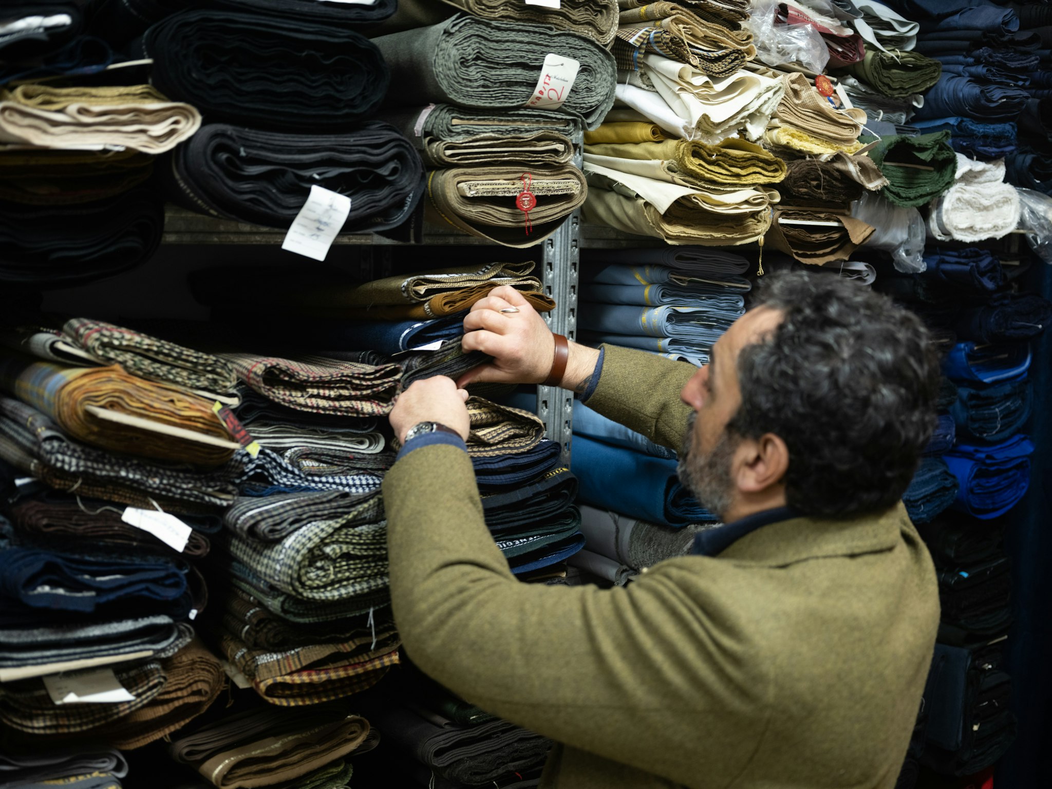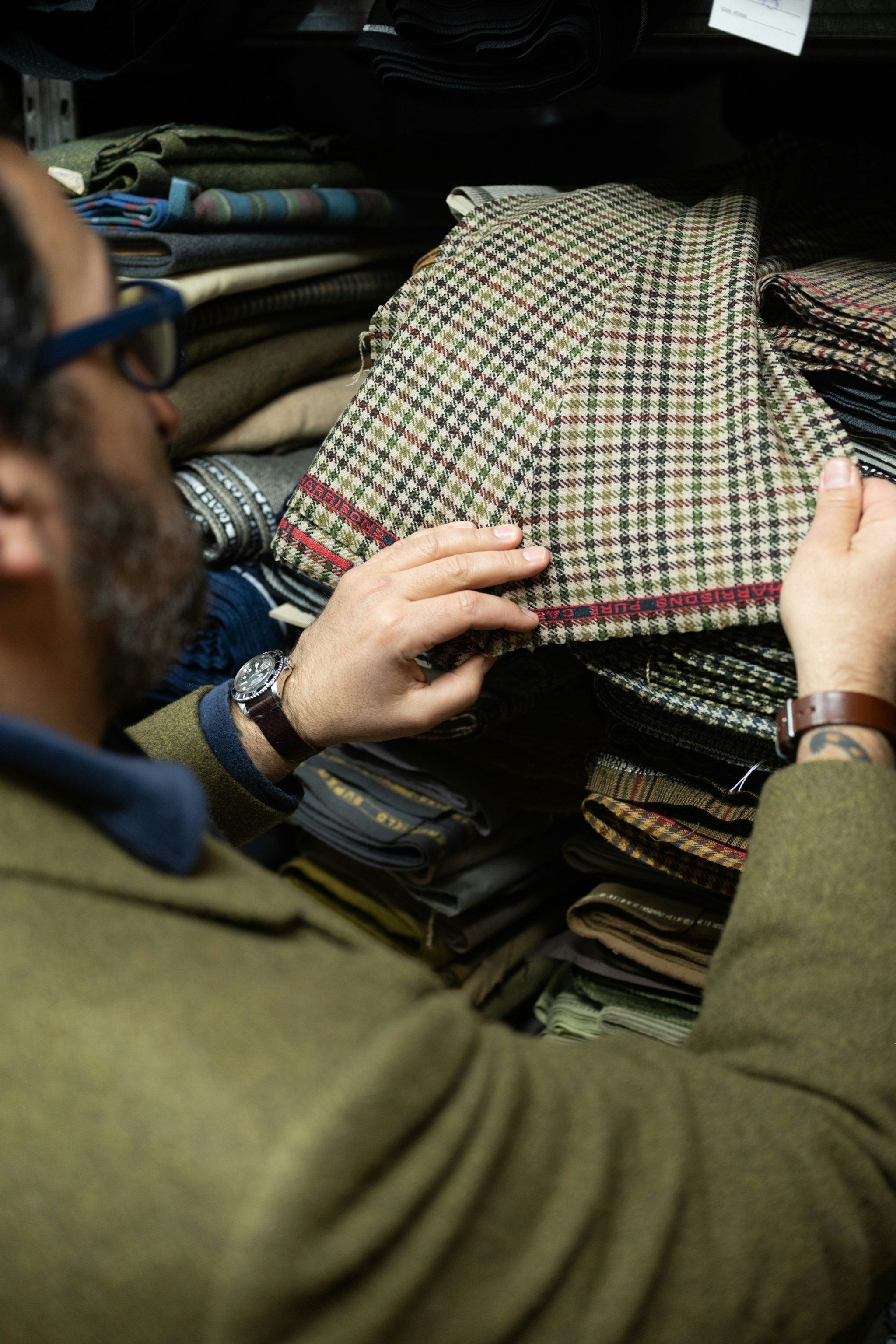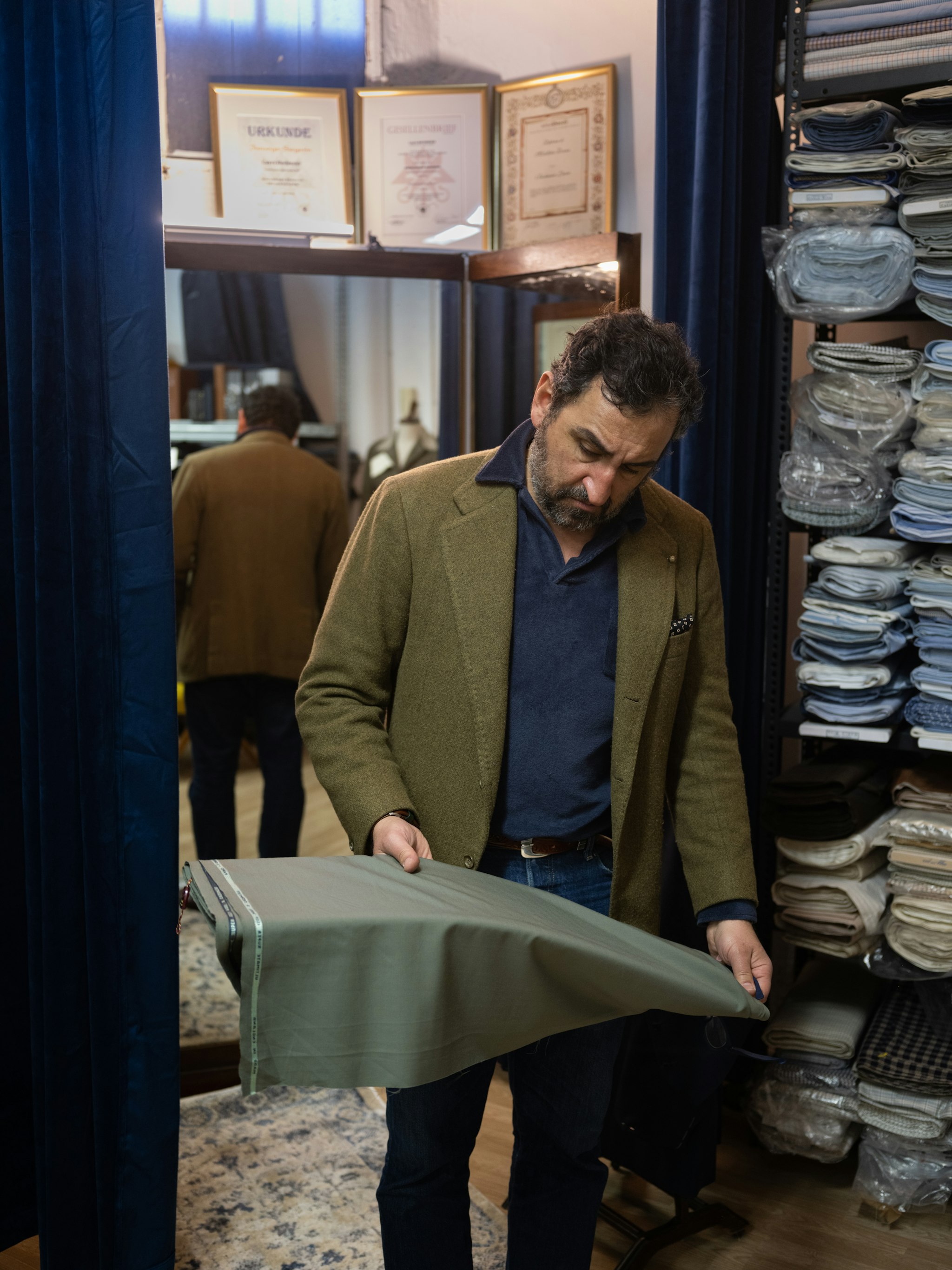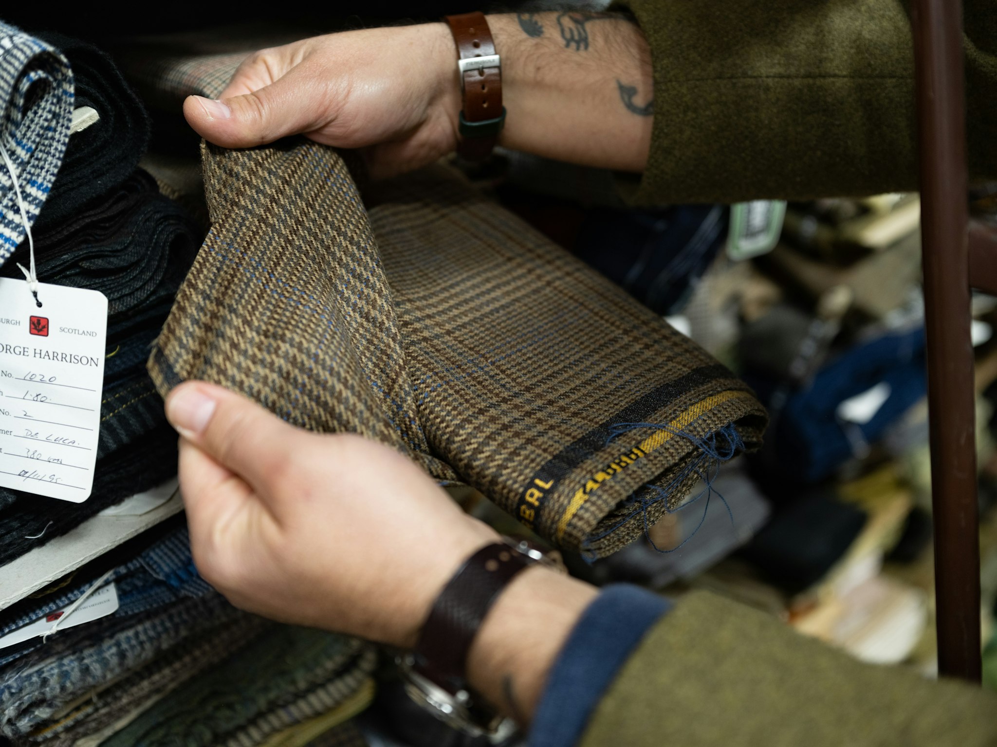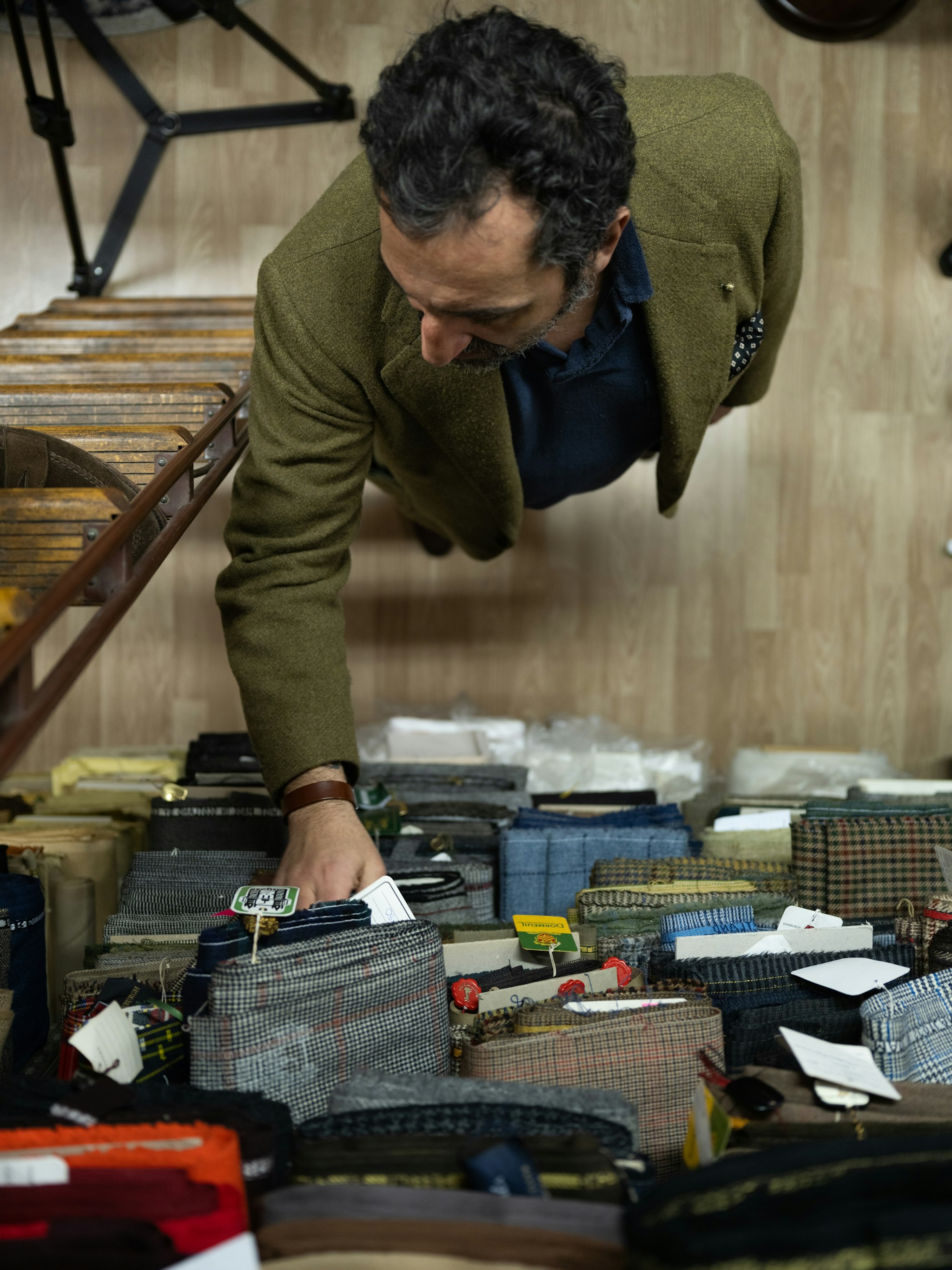 "Vintage fabrics can be very unique because they were made for a different market," explains Gianluca. Because of the internet and globalization of taste, many mills and merchants now produce the same things. However, when you source from vintage archives, you can find special mixtures that would be too expensive to produce today, long-lost patterns, or yarns that are no longer manufactured. "The taste is a little different.”
