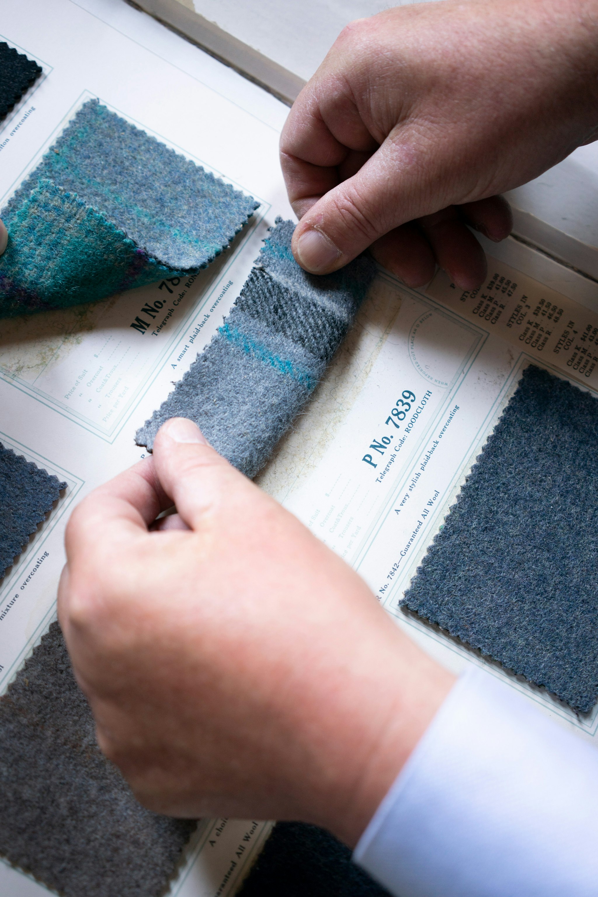 Palazzi was quite happy when the trousers were delivered, and they’ve since become part of his off-duty rotation. “There’s a big difference between seeing a fabric in a swatch book and seeing it made into a garment,” Migliarotti explained. “That’s the thing about Fox. Even with solid-colored fabrics in basic colors such as navy or brown, there’s always something that makes them special. This flannel looks like a rustic army green from a distance, but when you look at it under direct light, slivers of blue, red, yellow, and brown come through. I think Douglas told me there are somewhere between twelve or fifteen unique colors that went into making this fabric, which is why it has such tremendous visual depth.”