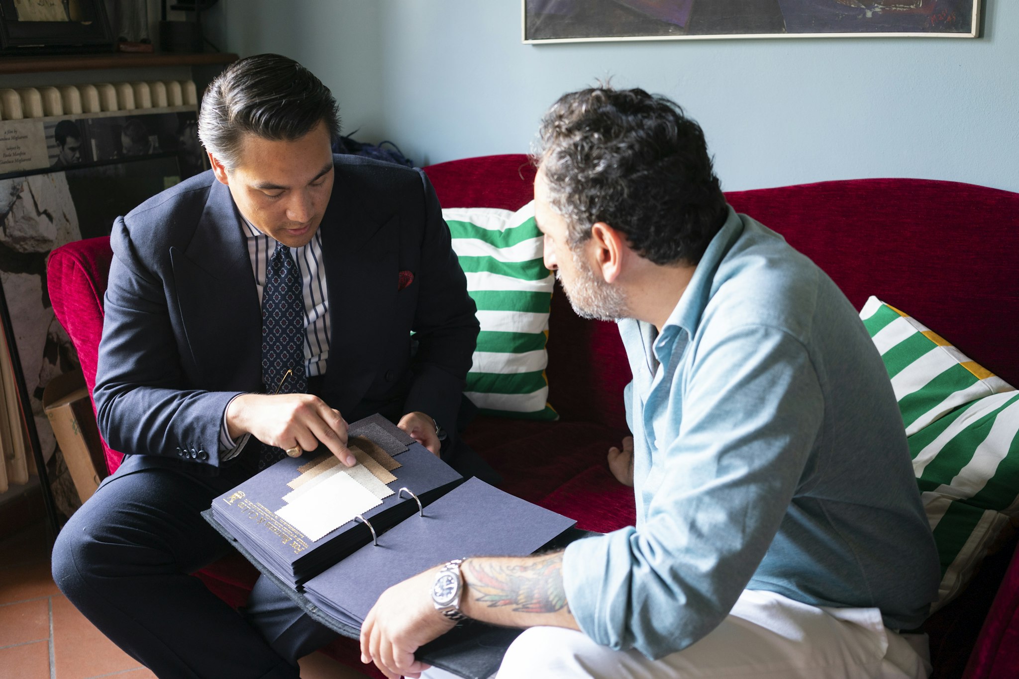 "One of the things I enjoy about this business is that many projects begin with friendships," Migliarotti adds. "I wouldn't be able to do this solely as a business. I've enjoyed seeing projects come to fruition over the years thanks to the friendships I've formed in the industry—Mark at The Armoury, Douglas at Fox and Alessandro at The Duke's Bar. Whenever I hear the name Palazzi flannel, I’ll always think of that day, when Douglas and I went to The Duke’s Bar and saw Alessandro’s face when I delivered his trousers. It’s a beautiful memory.”