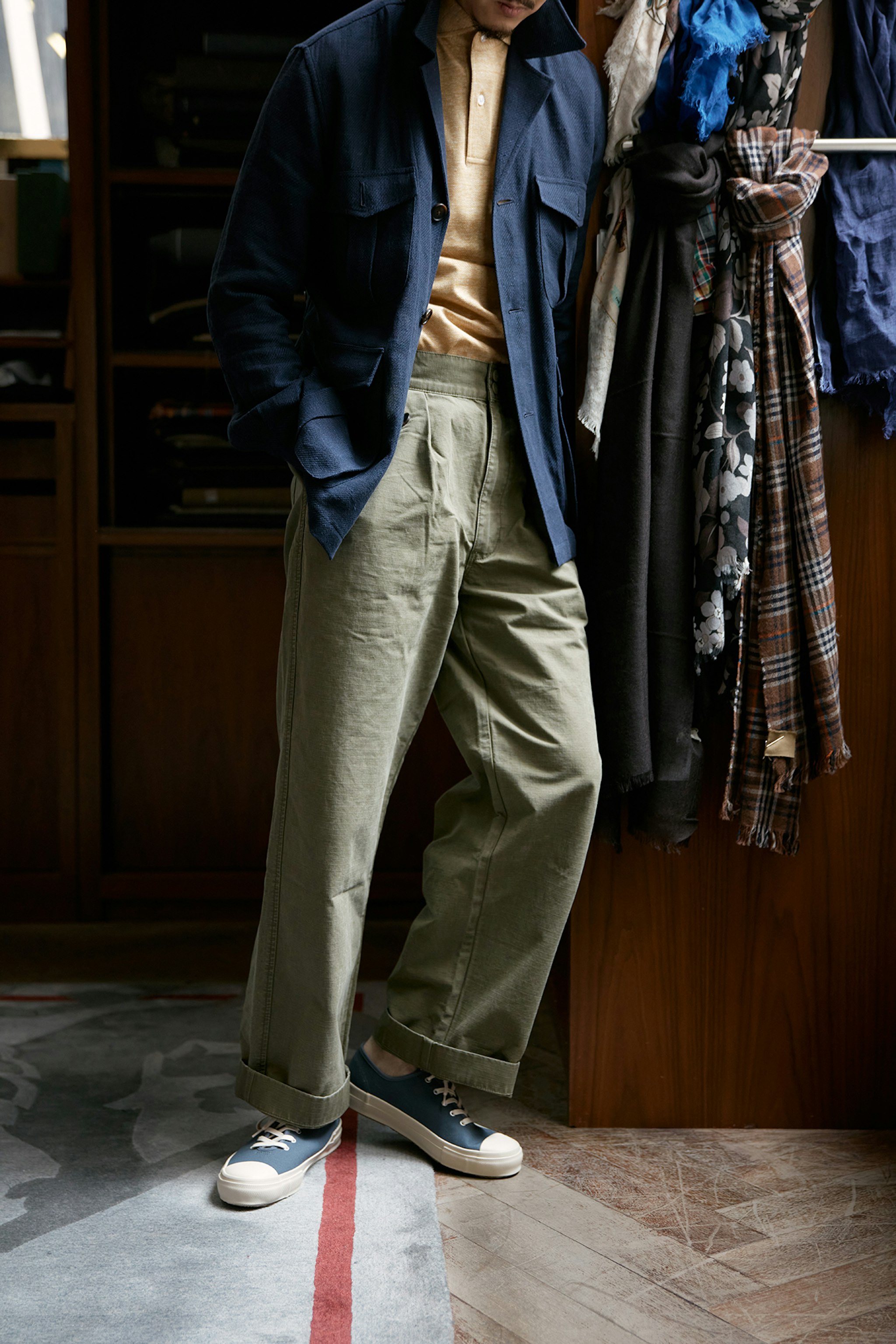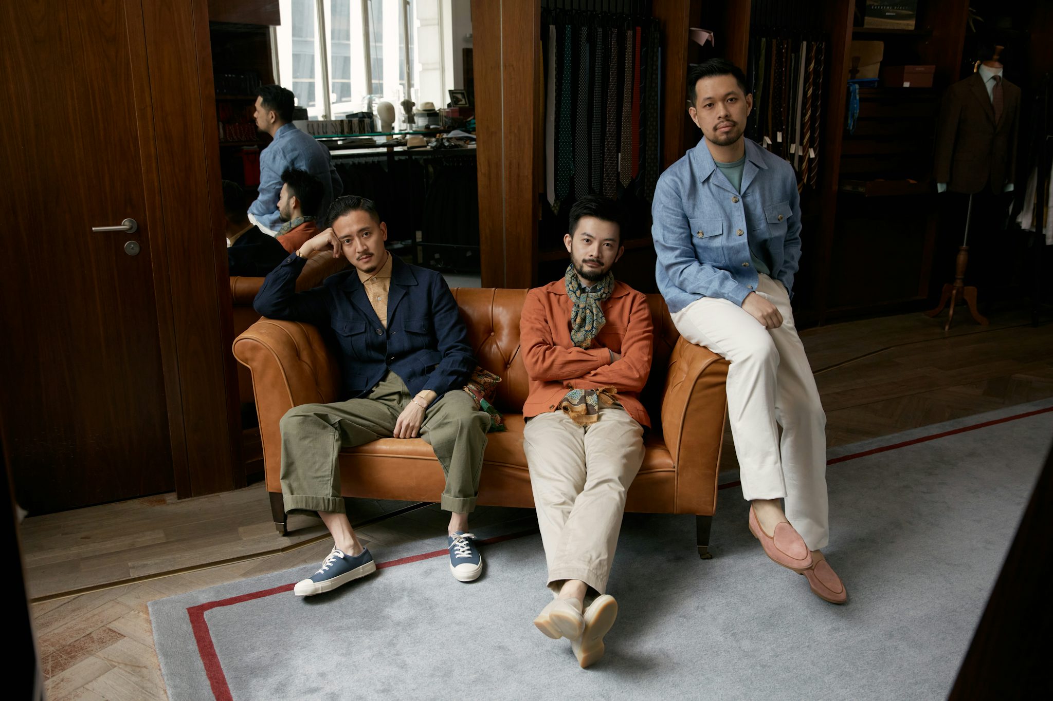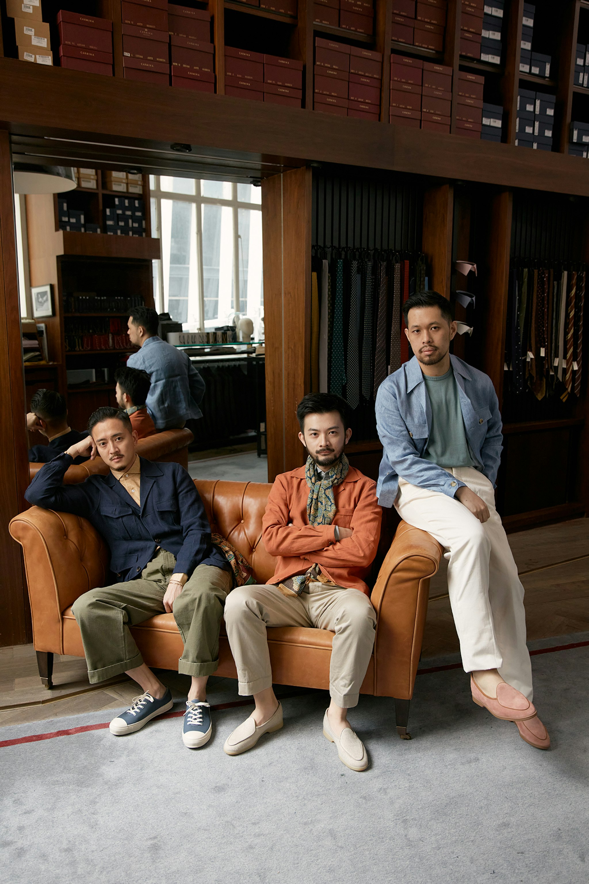 Some of the featured products are exclusive to our Hong Kong shops. Please email info@thearmoury.com for inquiries on the Baudoin & Lange White Deerskin Stride Loafer, Moonstar Navy Canvas Sneakers and Drake's Scarf.