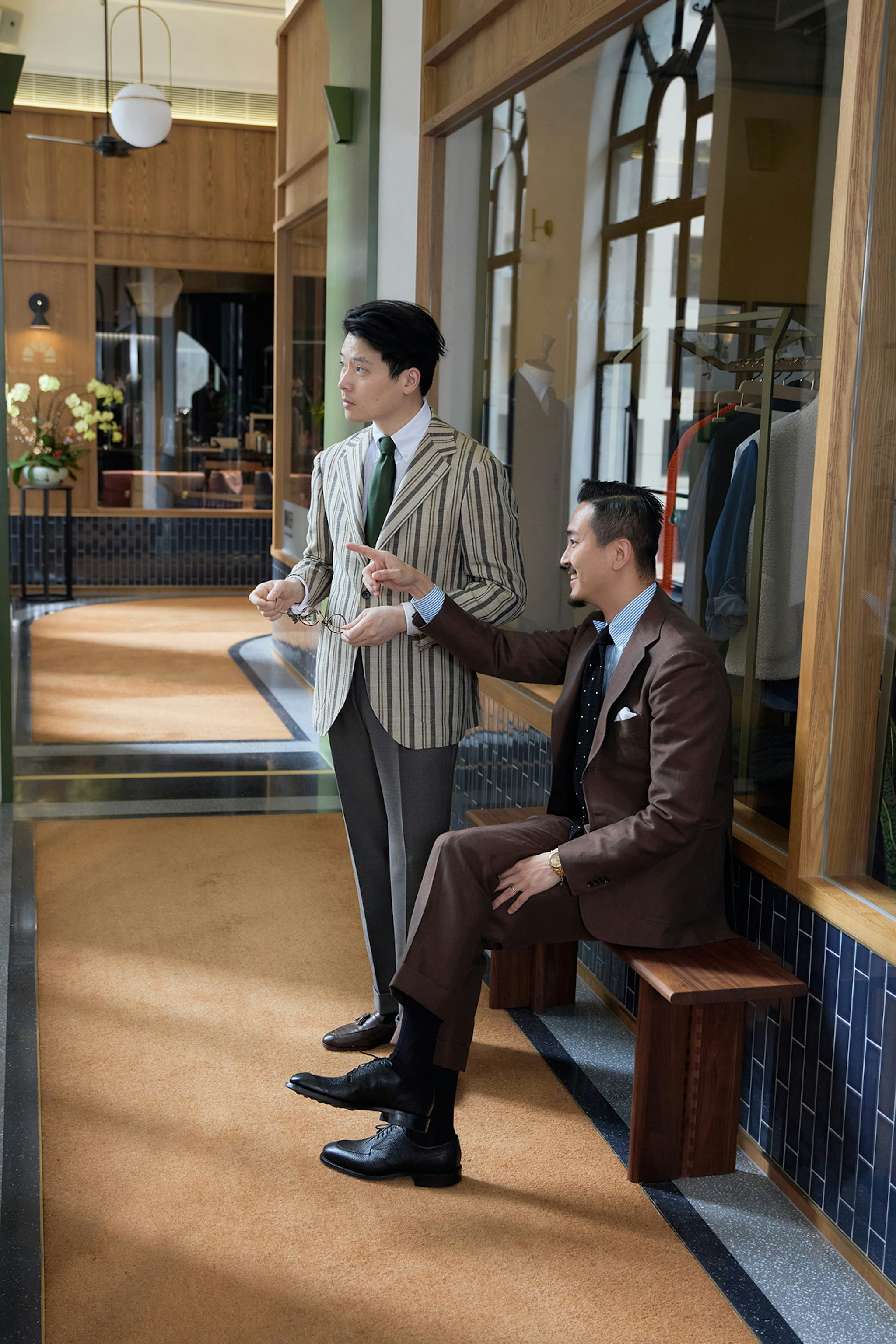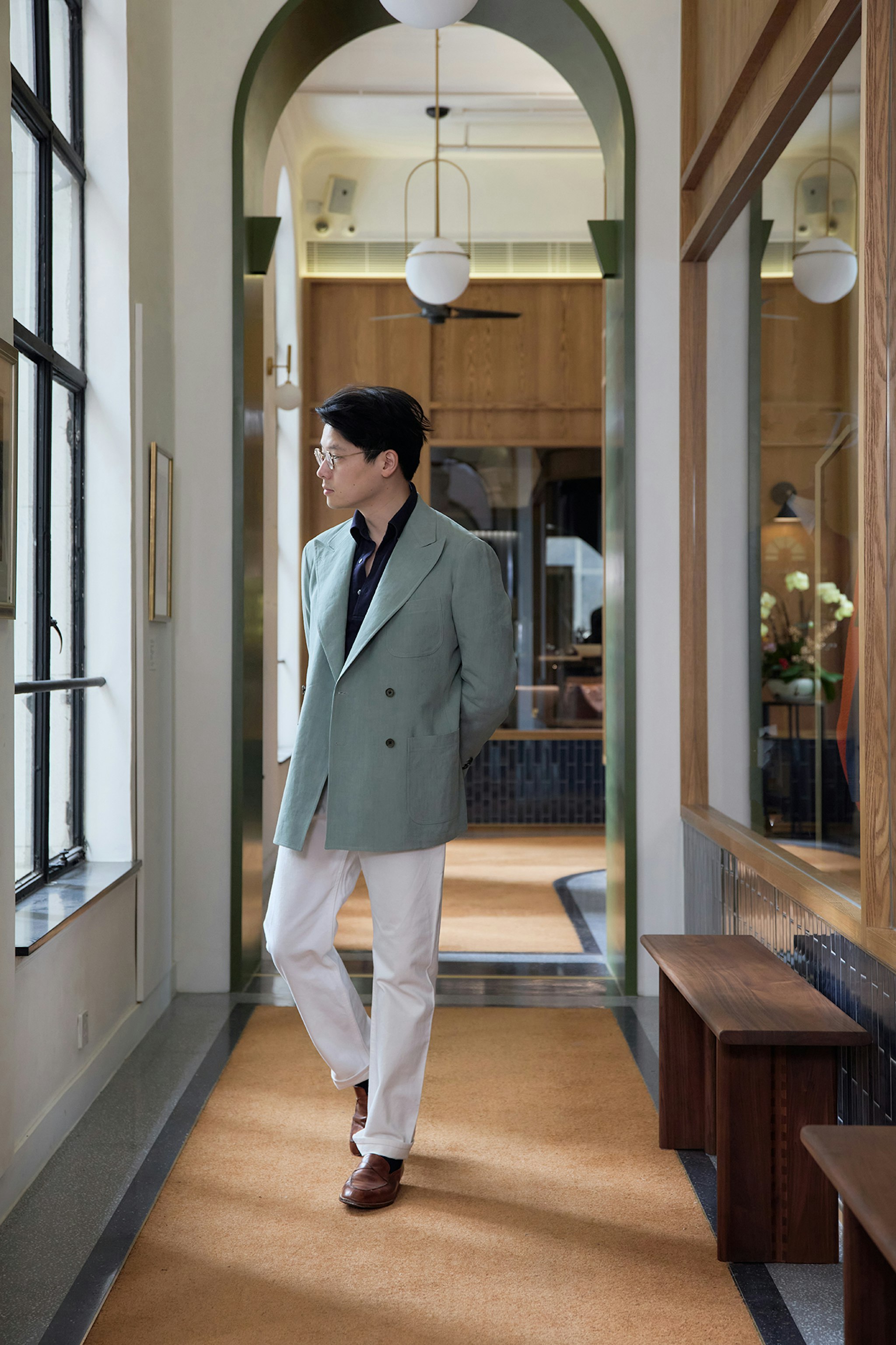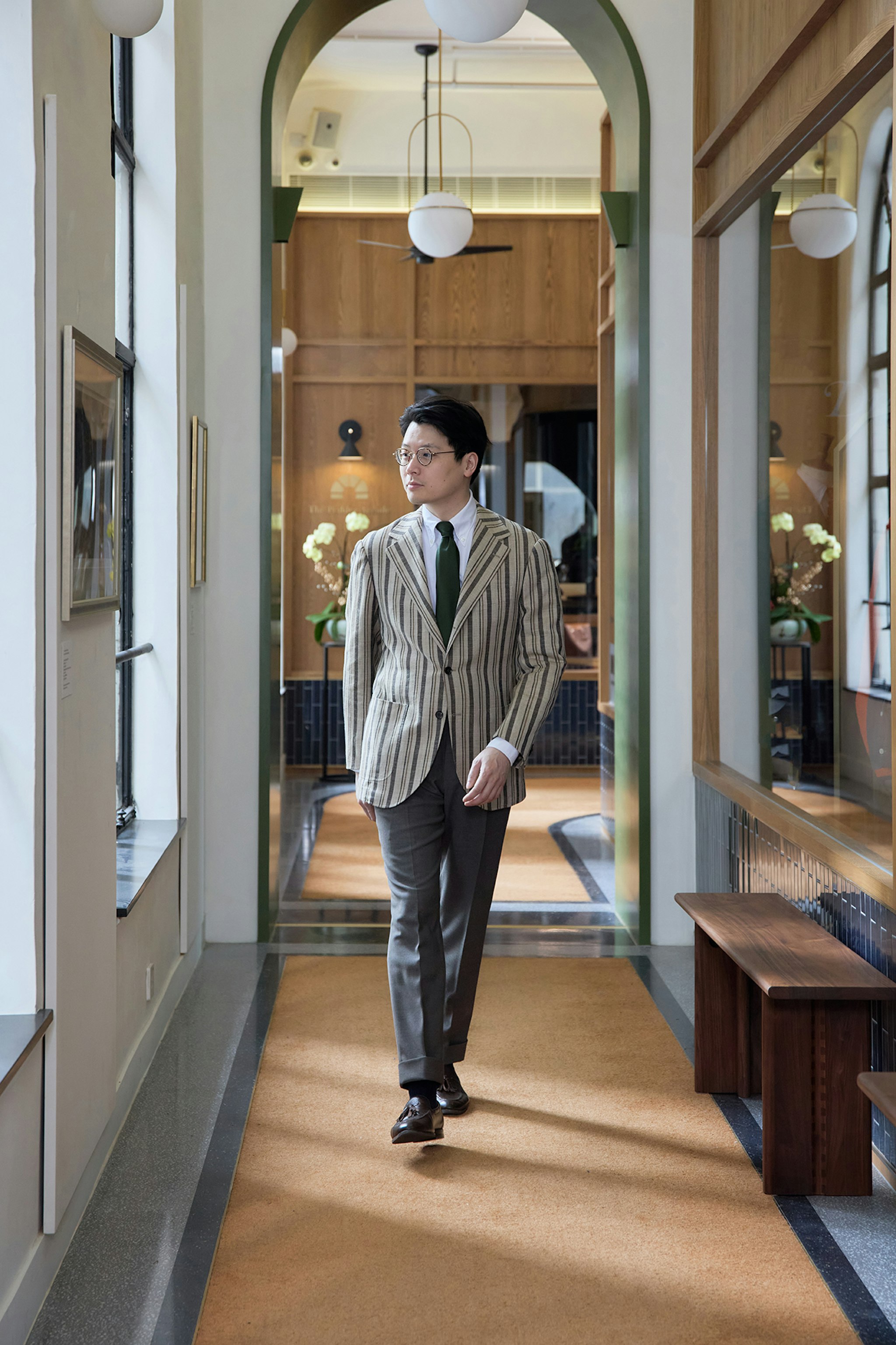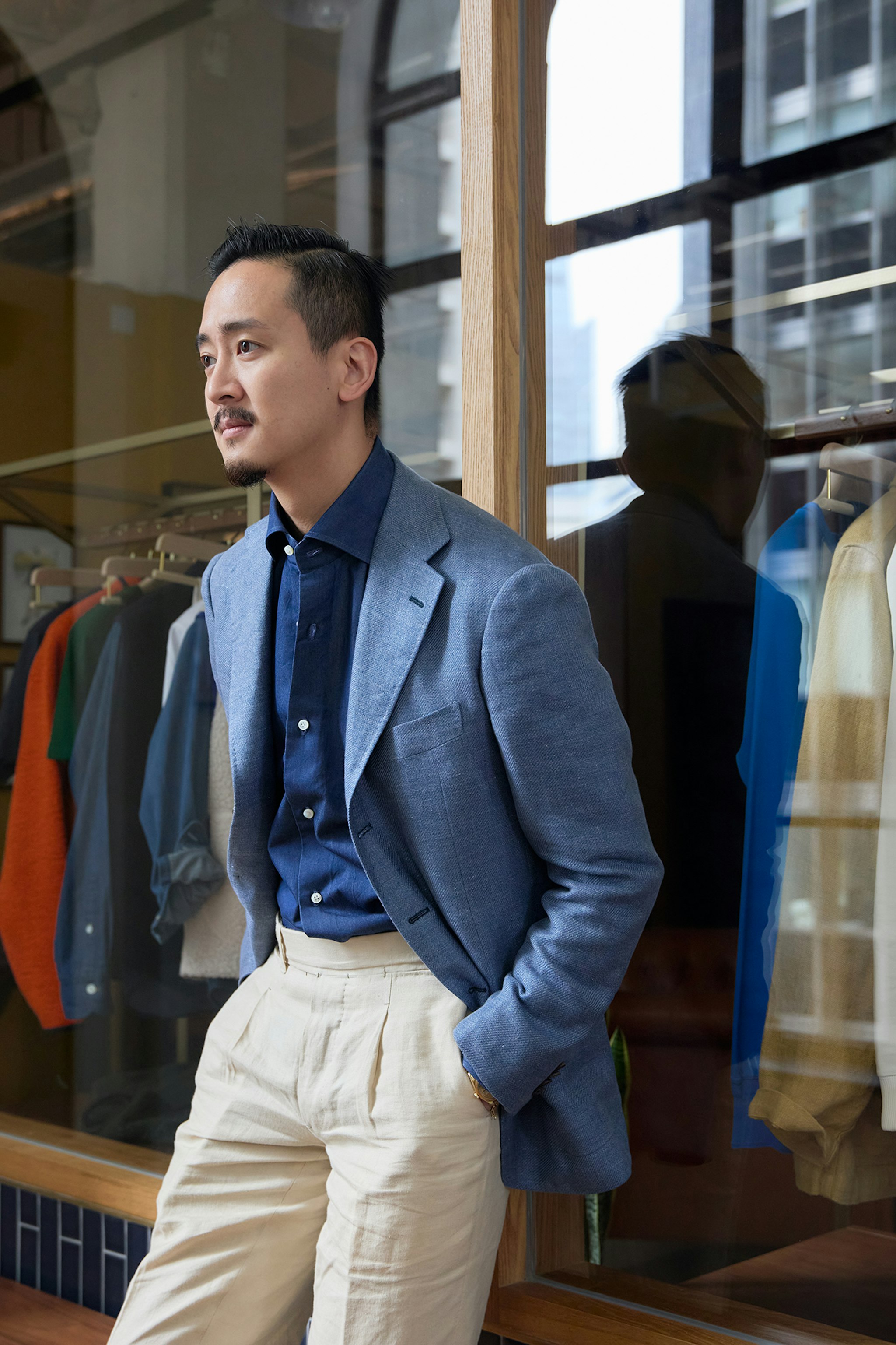 Last year's spring summer lookbook was our farewell to 307 Pedder Building, the shop where The Armoury was founded. Since then, we launched the Pedder Arcade, our new retail concept which reimagines the 5th floor of the Pedder Building as a European style shopping arcade filled with all the things we like. It is also the new home of The Armoury in Hong Kong. The Concourse, which is the walkway that connects all the shops together, fills with a dramatic, angular light in the mornings and is one of my favorite spots in the world for a photograph. The atrium and bar are where I spend many of my evenings enjoying a martini before dinner. The Armoury Study, our lounge, acts as both an office and a clubroom for many of our regulars. This season's lookbook is a slice of life at the Pedder Arcade. I hope you will come visit us soon! – Co-founder Mark Cho