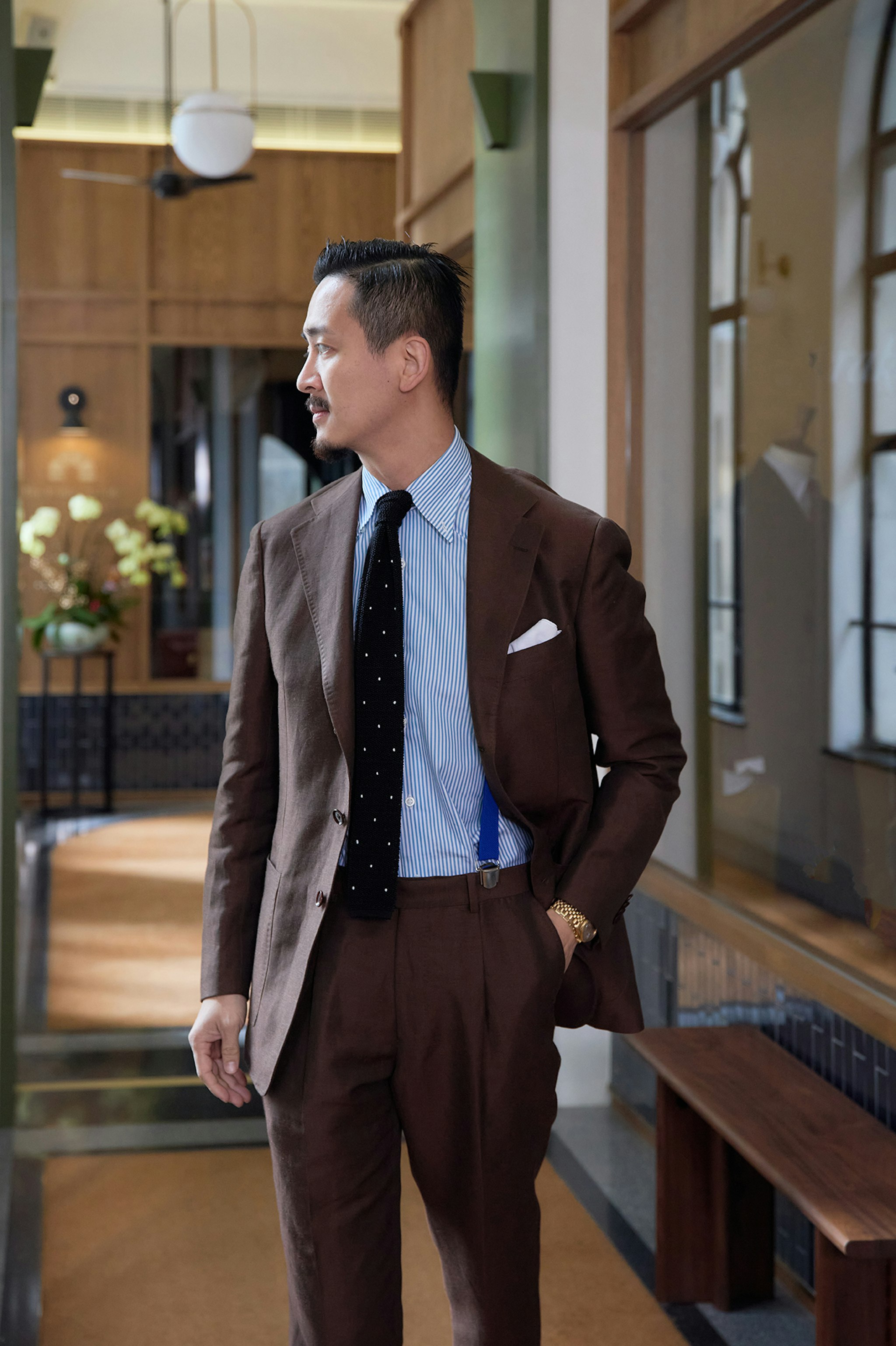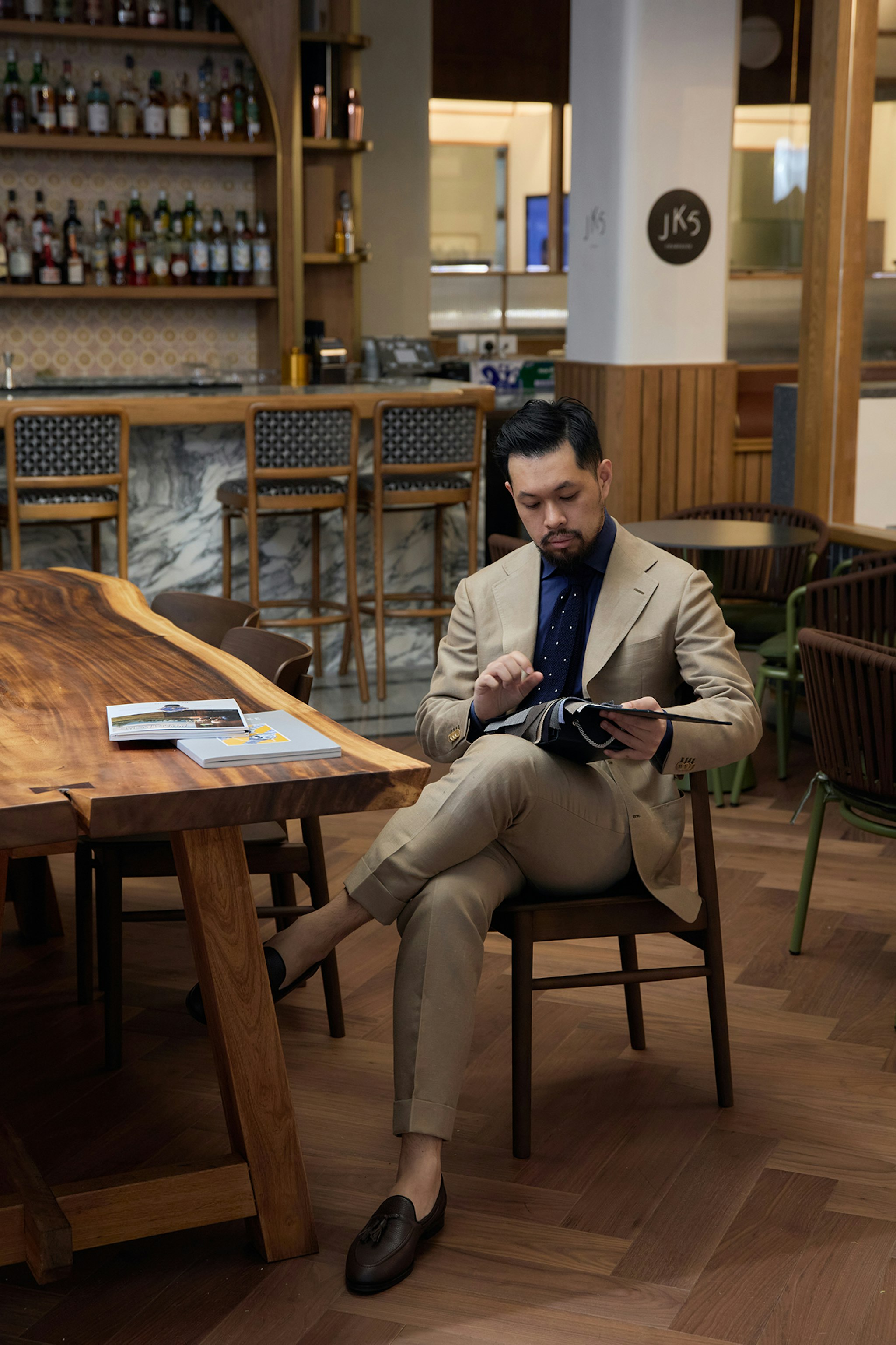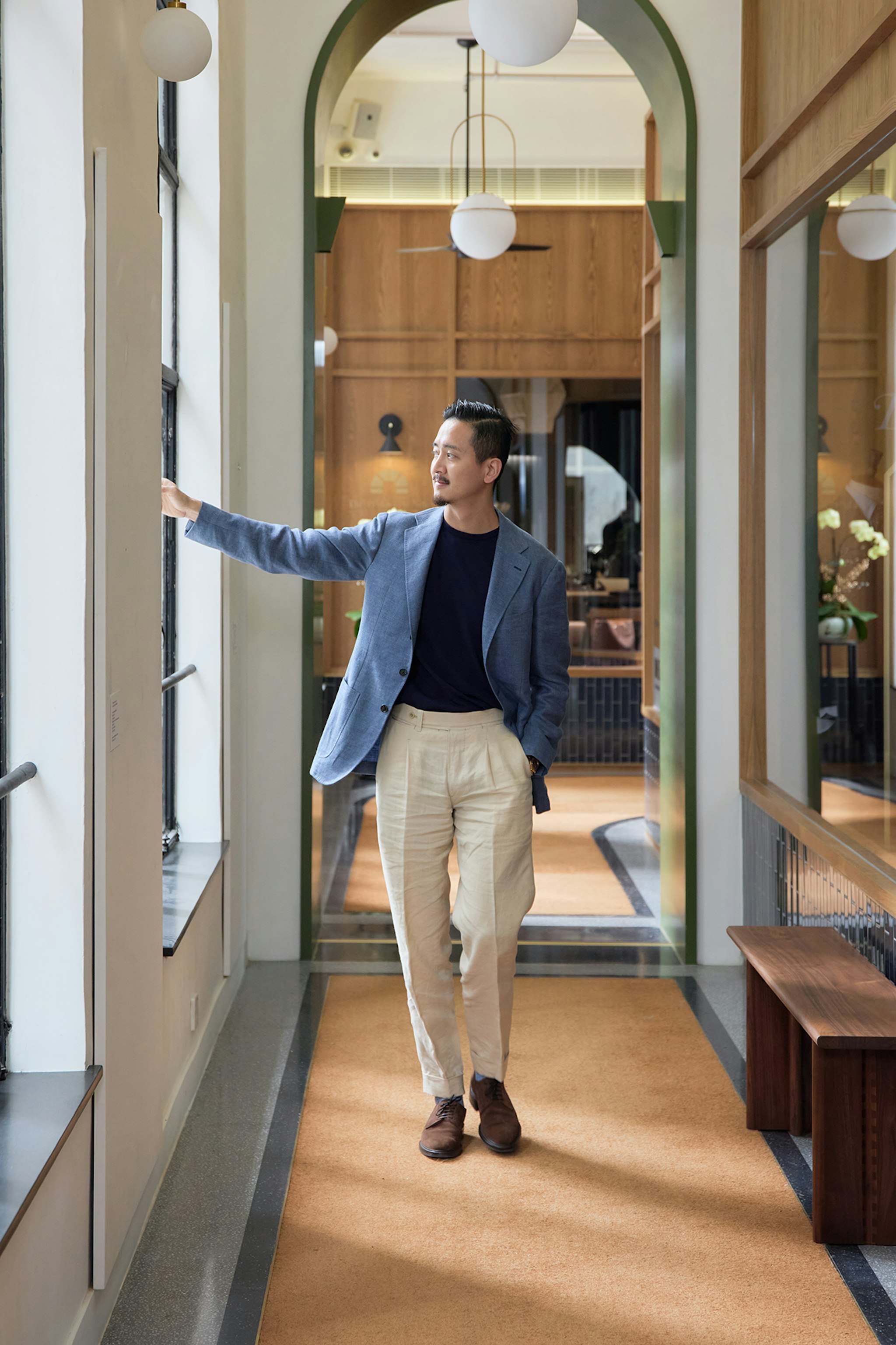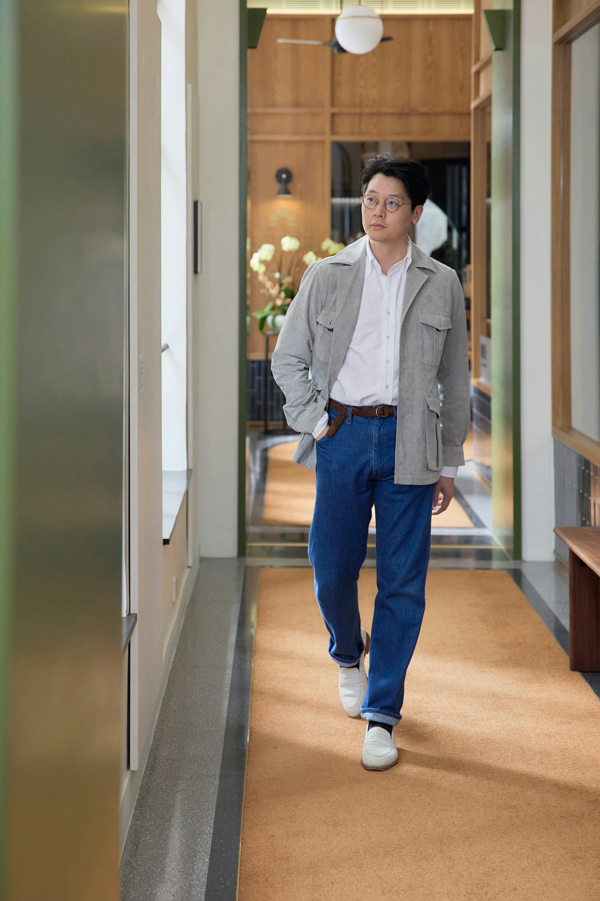Last year's spring summer lookbook was our farewell to 307 Pedder Building, the shop where The Armoury was founded. Since then, we launched the Pedder Arcade, our new retail concept which reimagines the 5th floor of the Pedder Building as a European style shopping arcade filled with all the things we like. It is also the new home of The Armoury in Hong Kong. The Concourse, which is the walkway that connects all the shops together, fills with a dramatic, angular light in the mornings and is one of my favorite spots in the world for a photograph. The atrium and bar are where I spend many of my evenings enjoying a martini before dinner. The Armoury Study, our lounge, acts as both an office and a clubroom for many of our regulars. This season's lookbook is a slice of life at the Pedder Arcade. I hope you will come visit us soon! – Co-founder Mark Cho