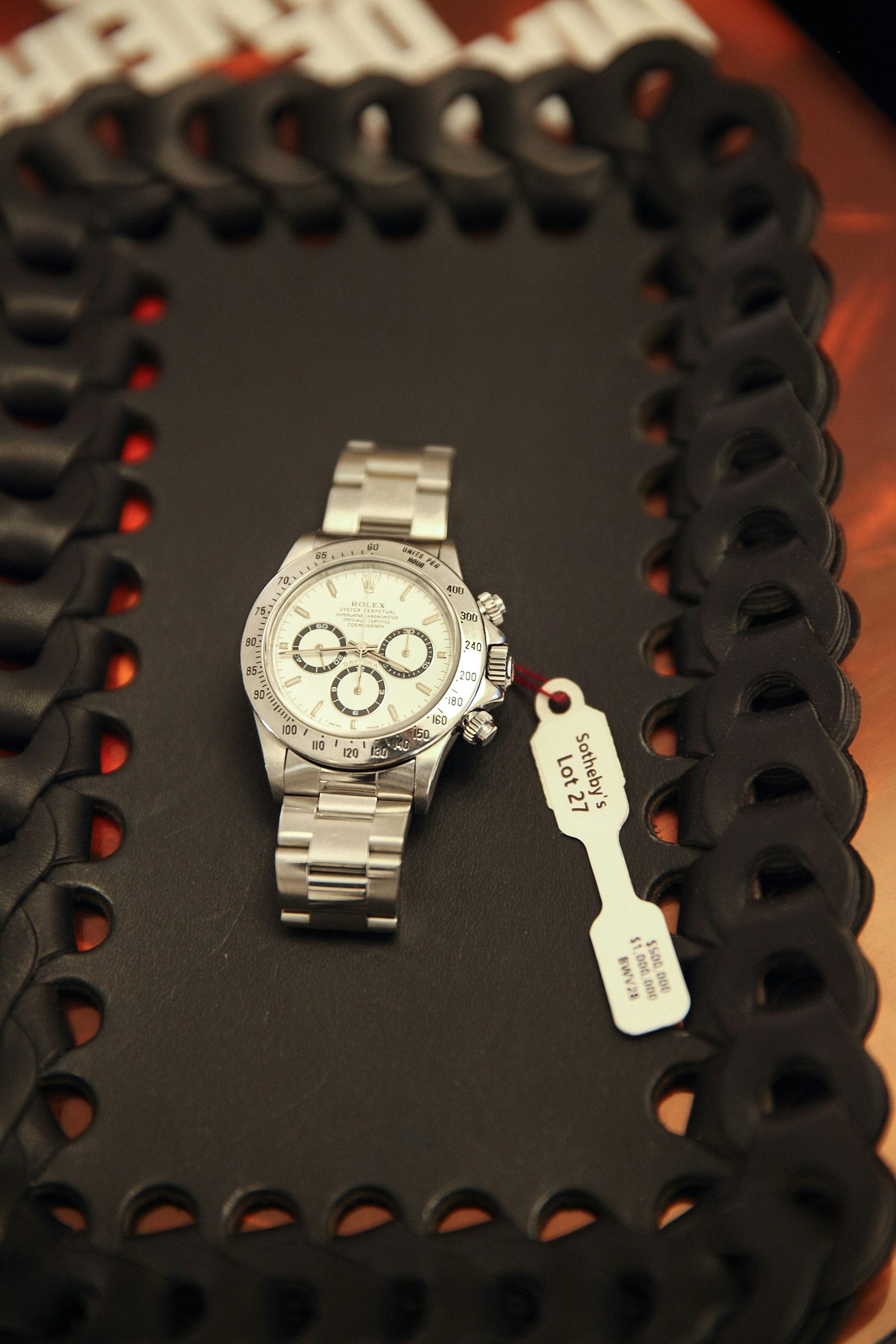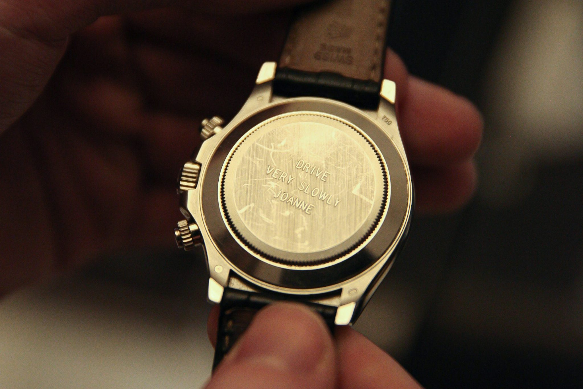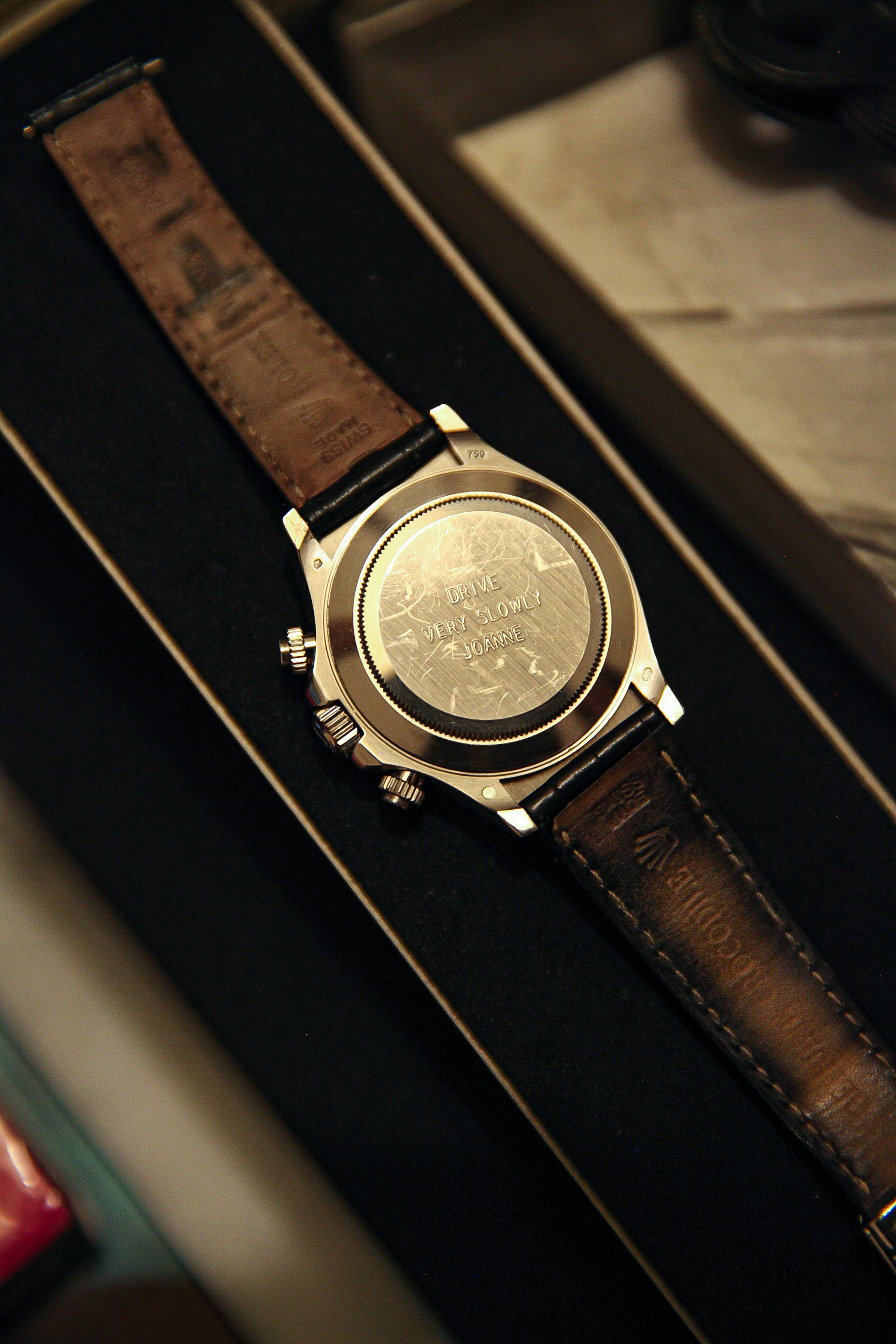 The star of the show was a couple of Paul Newman’s personal Daytona's. The first example was gifted to Paul Newman by Joanne Woodward who had the case back engraved 'DRIVE VERY SLOWLY JOANNE'. While the other was presented to Paul Newman by Rolex, a sponsor of the 24 Hours of Daytona race, to commemorate when he won the Man of the Year award. The case back is engraved ‘Rolex at Daytona 24 Paul Newman Rolex Motorsports Man of the Year 1995'.