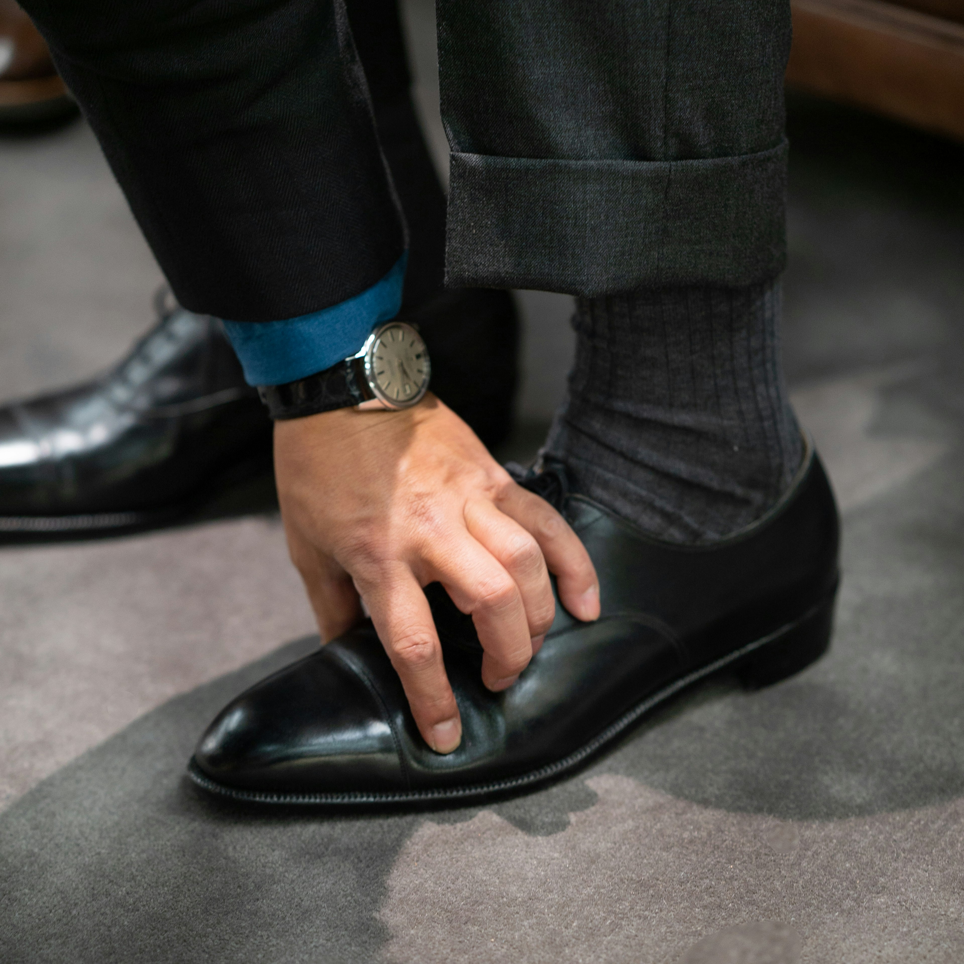 When it comes to shoes, bespoke can make quite a difference. Compared to tailoring where a centimeter or two won't drastically change the look or feel of a garment, the slightest adjustment can be felt if a shoe is either too tight or too loose. During a bespoke appointment, design inspirations are shared and detailed measurements are taken. Clients can choose from dozens of leather swatches and sole options.