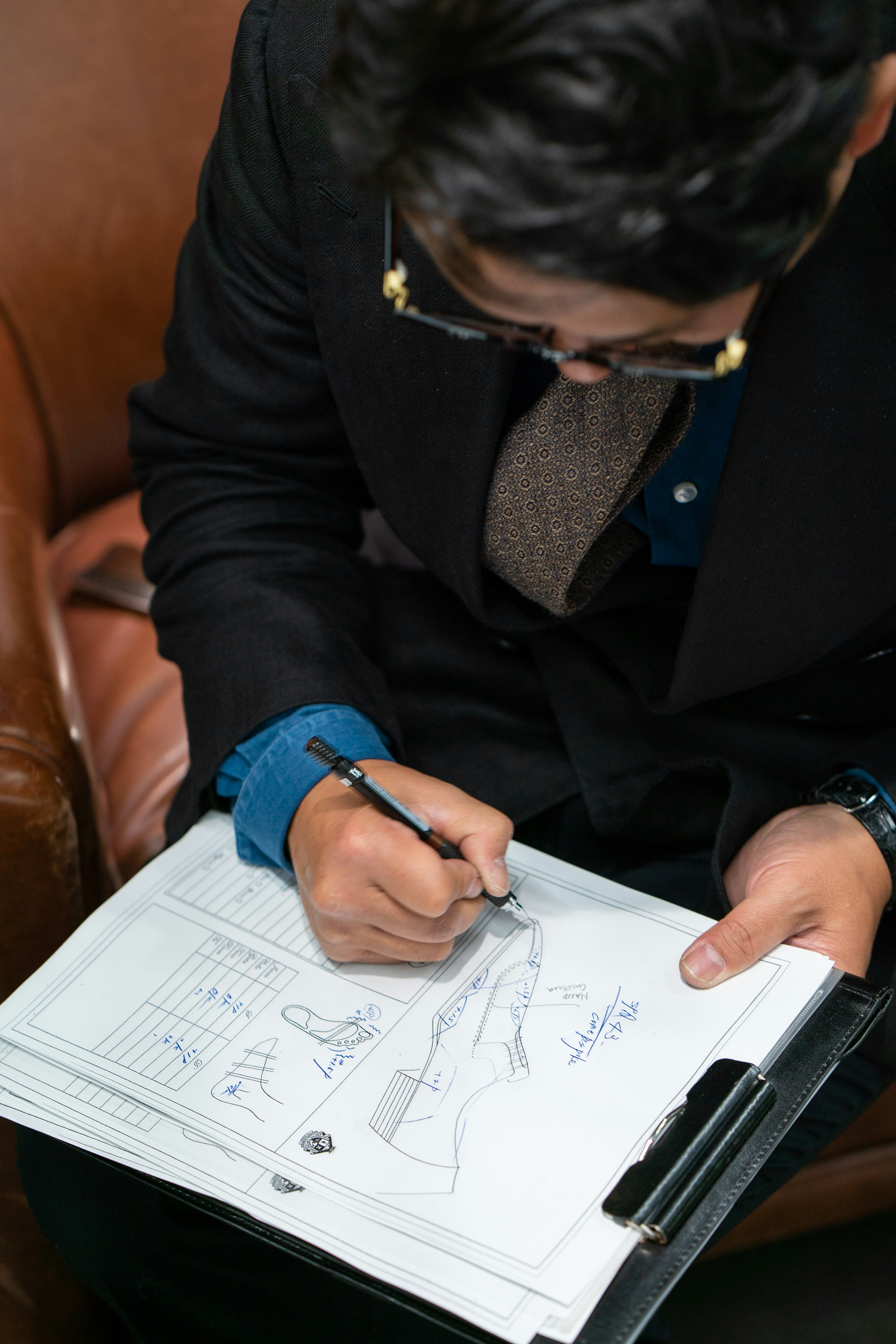 For those keen to purchase a pair of Koji Suzuki shoes at The Armoury, there are two options available: made-to-order and bespoke. The difference lies in the level of customization and measurements. While Suzuki will take measurements for both choices, the bespoke option uses sketches of the foot on paper, and also takes into account other factors such as injuries and fallen arches.