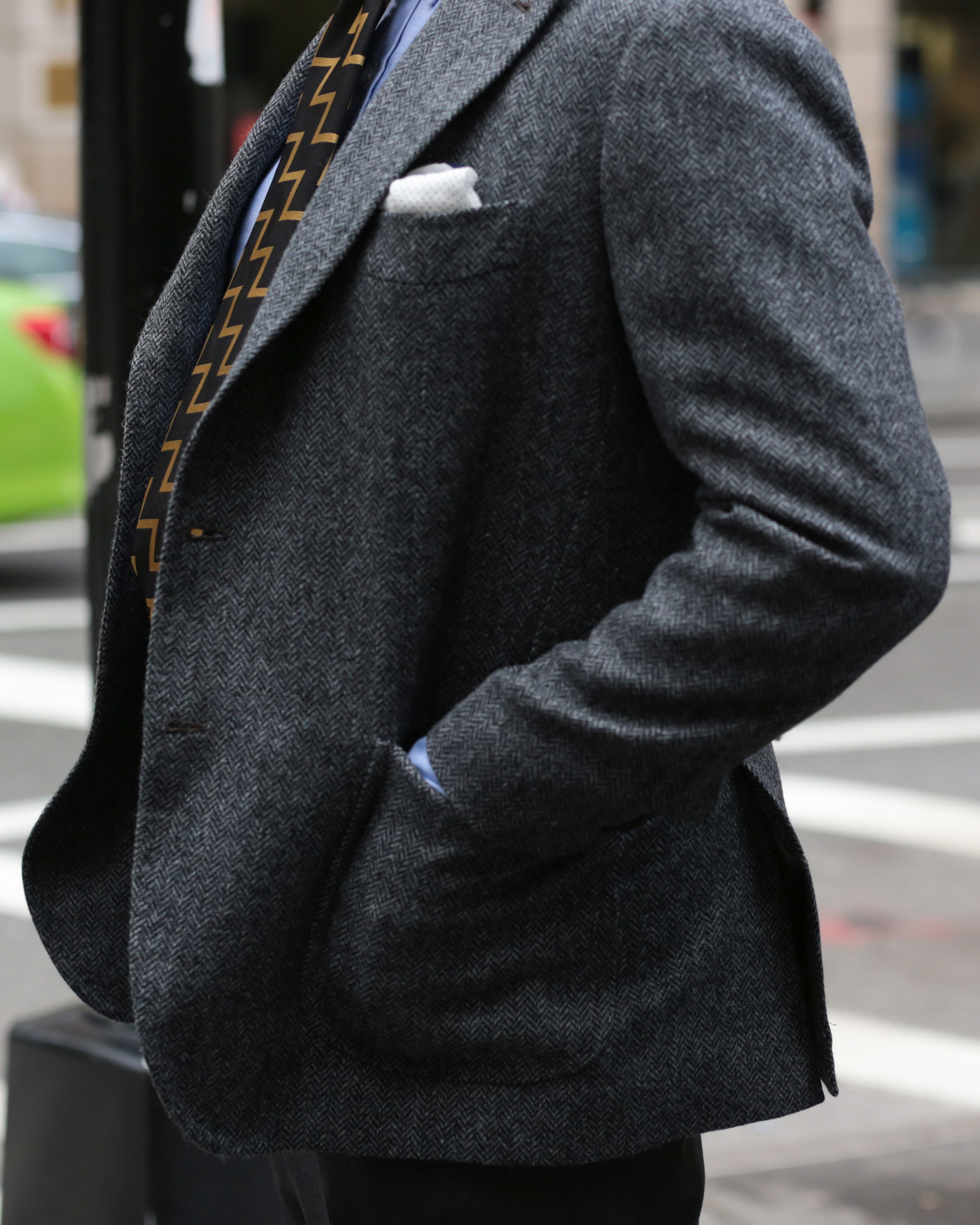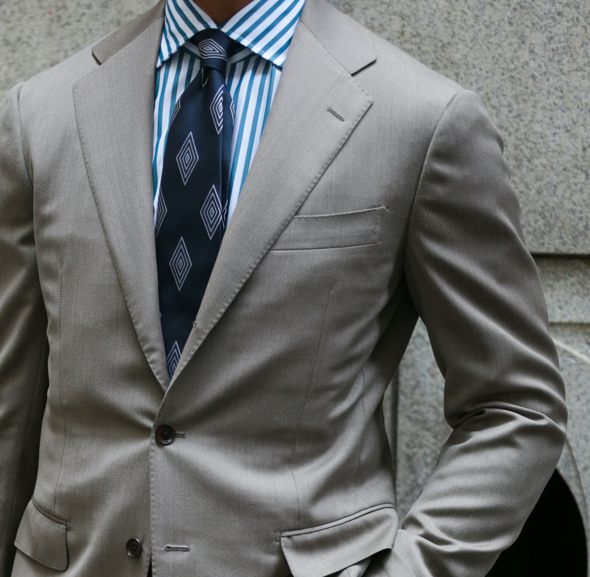 Although traditionally used as coating, covert cloth has become one of our go-to suggestions for Autumn/Winter suiting. Hard-wearing and textured with a beautiful drape, covert will get you through almost any situation that requires a suit as the temperature dips.