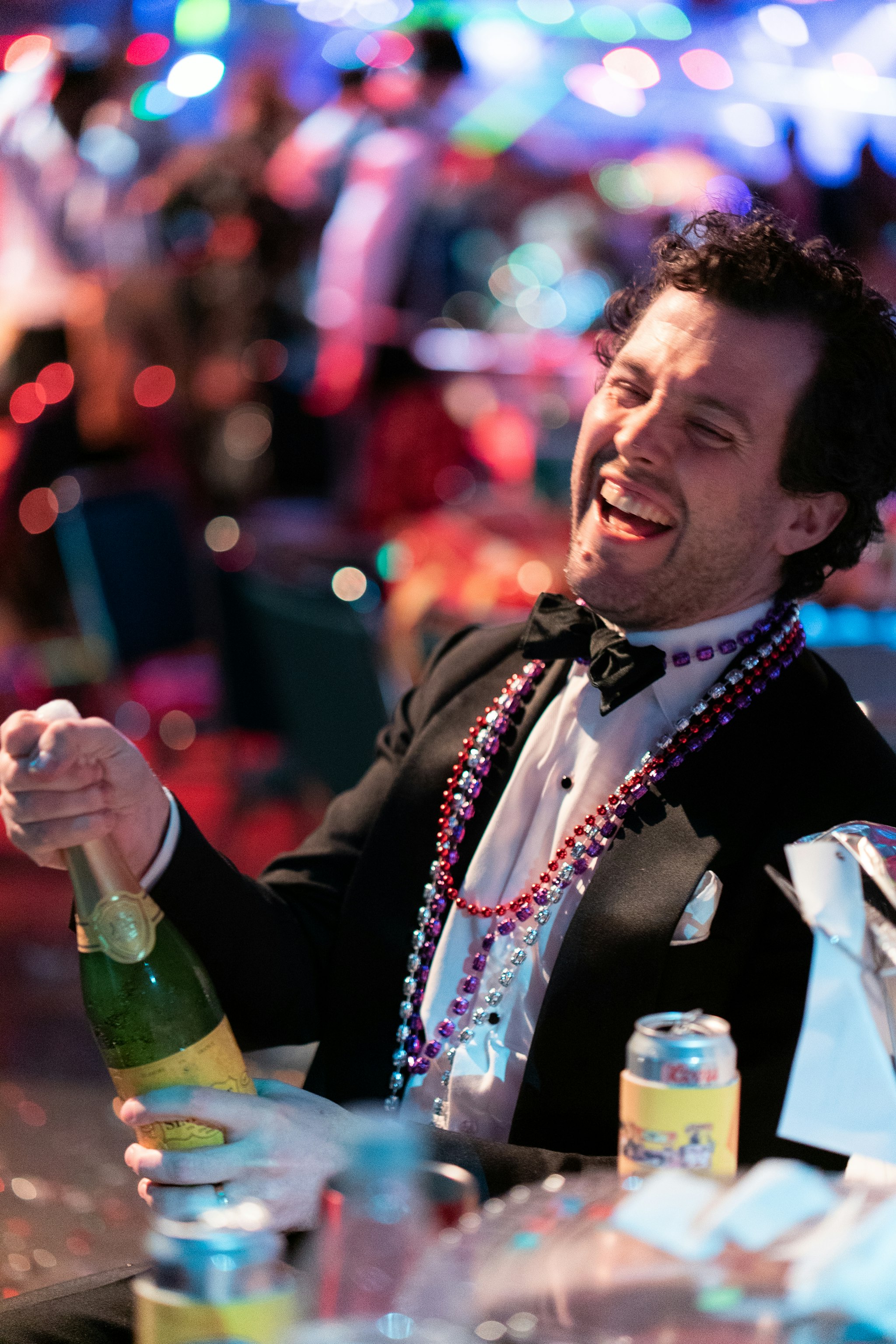 Every Krewe throws an evening formal ball after their respective parade rolls. We were lucky enough to attend the Bacchus Ball, a BYOB black tie extravaganza where thousands of guests cheer on the floats and marching bands as they roll into the convention center.