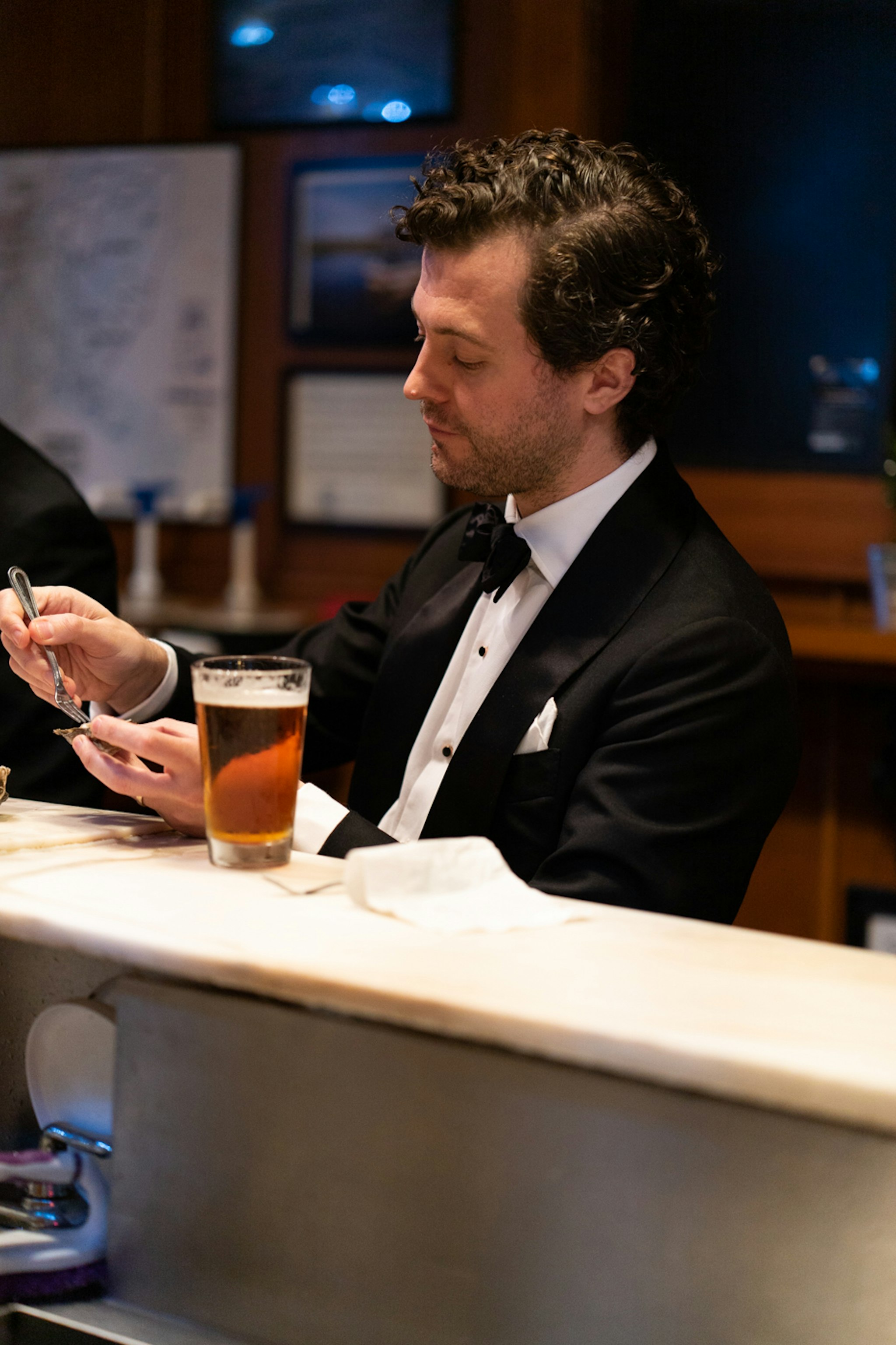 We had a long night ahead of us, and I wanted to make sure we were well fed in advance. So, our friends agreed to meet us at Pascale Manale, a century-old Uptown institution know for seafood. Rick and I got there a bit early to slurp oysters at the old marble bar.