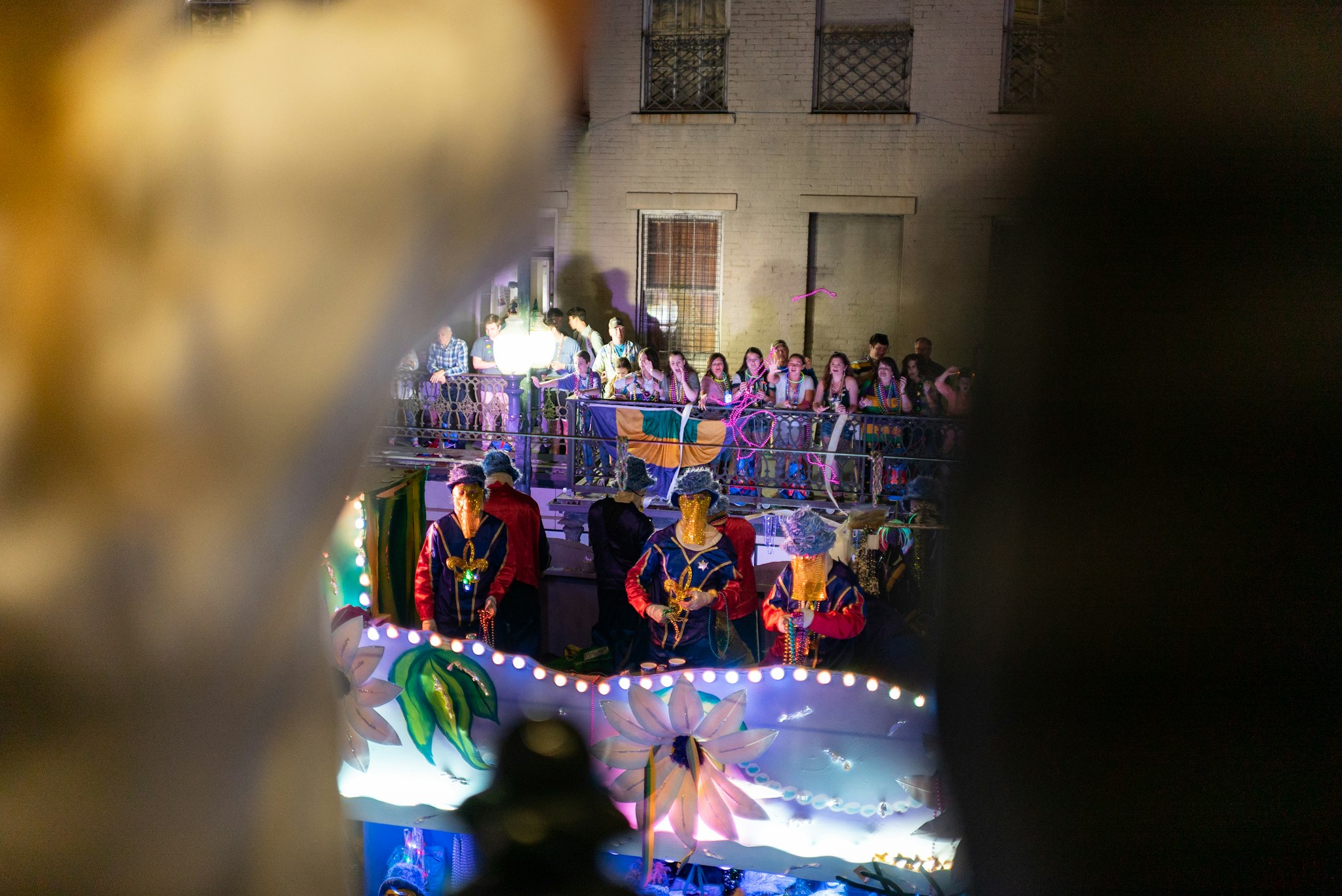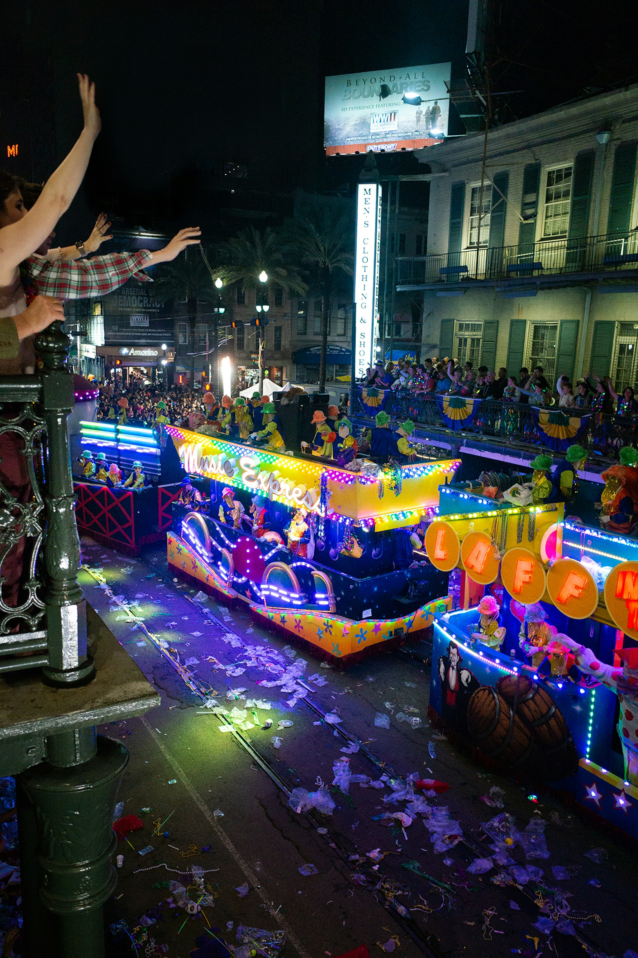 I wanted Rick to experience the French Quarter during Mardi Gras without feeling too overwhelmed. Luckily, we were able to view it all from a private deck overlooking the floats as they turned onto Canal St.