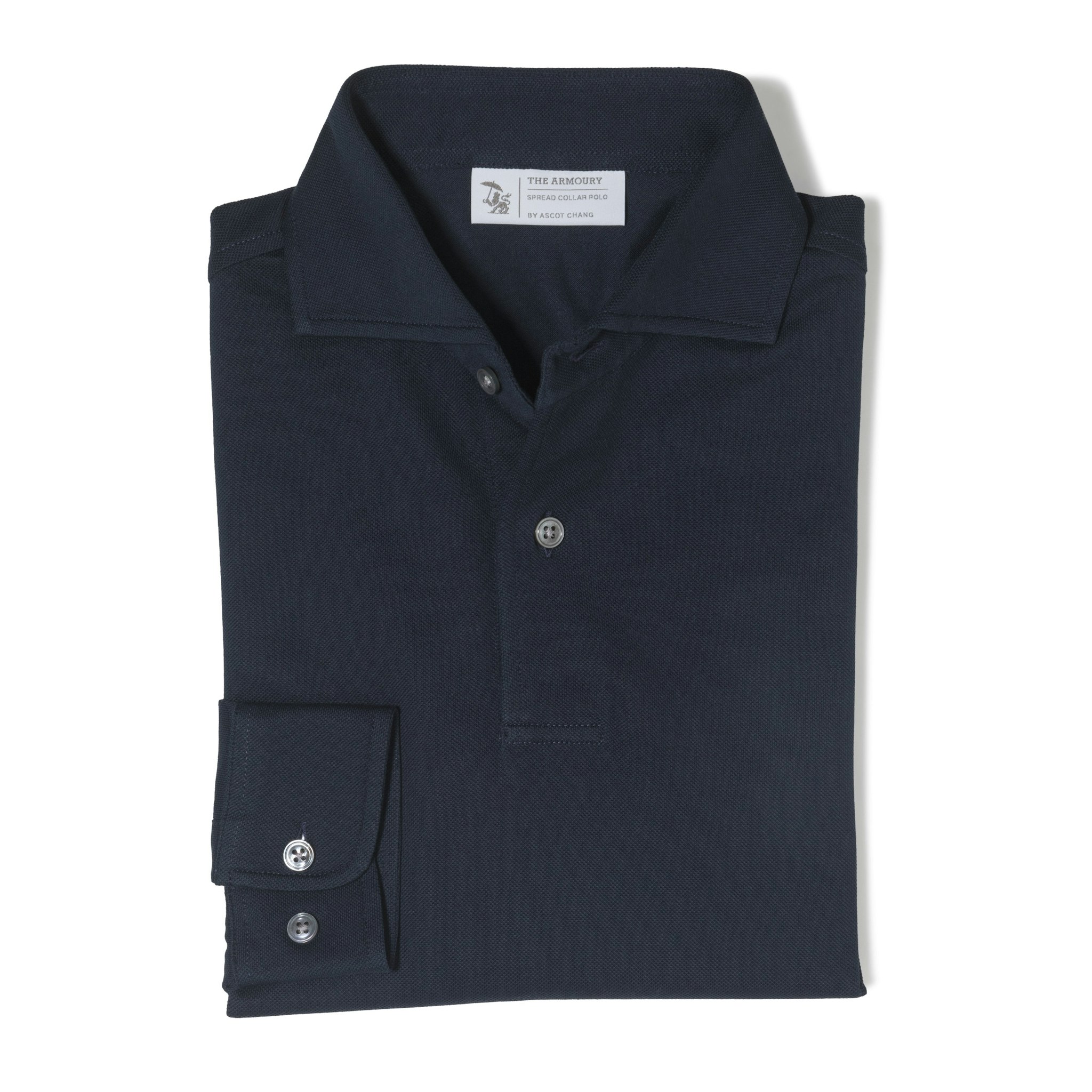 Meant to be worn on its own or under a jacket, the collar is constructed the same way a woven shirt is, with a full collar band and light interlining. In a medium weight 100% cotton pique, it's the perfect weight for a polo shirt and has become a new favorite among both our employees and clients.
