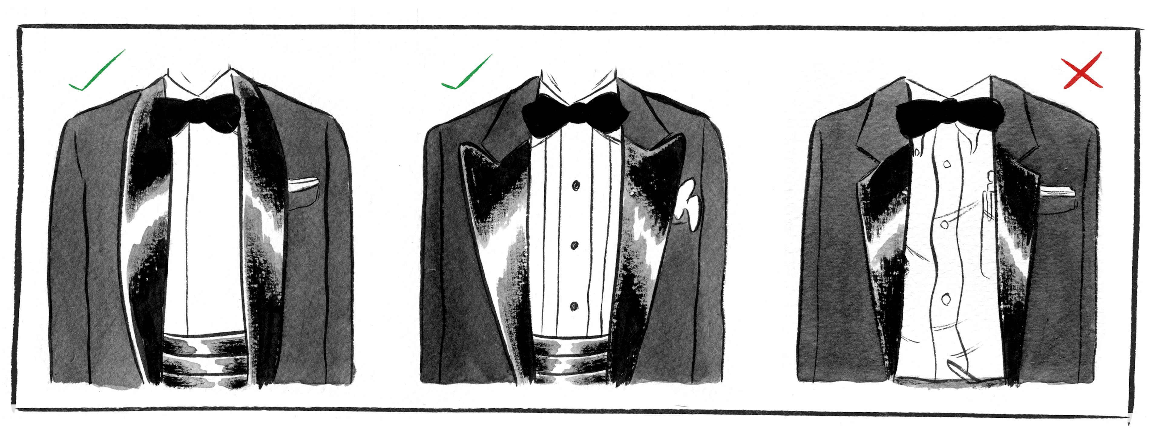 Black tie sits near the top of the formality scale, eclipsed only by white tie. And in tailoring, formalwear is generally defined by its simplicity (this is what makes flapped pockets more formal the patched pockets, smoother fabrics more formal than rustic tweeds).