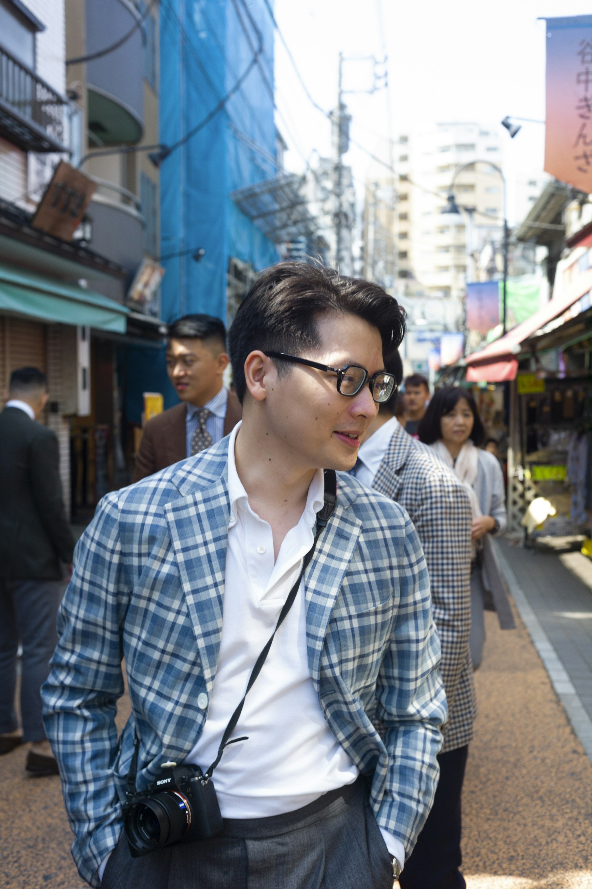 Sam is wearing a Made-to-measure Sport Coat by Orazio Luciano, which can be commissioned year-round in both New York and Hong Kong.
