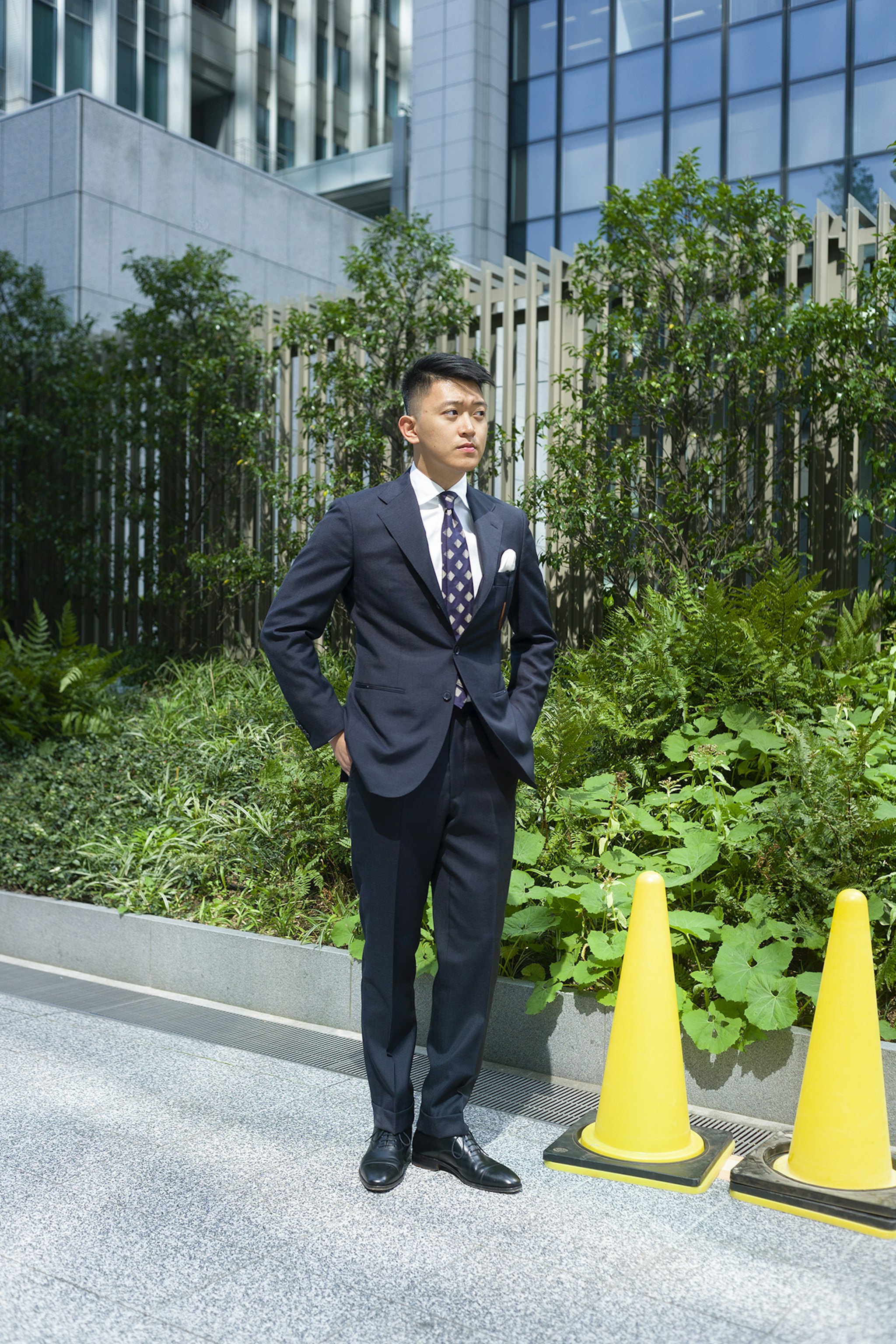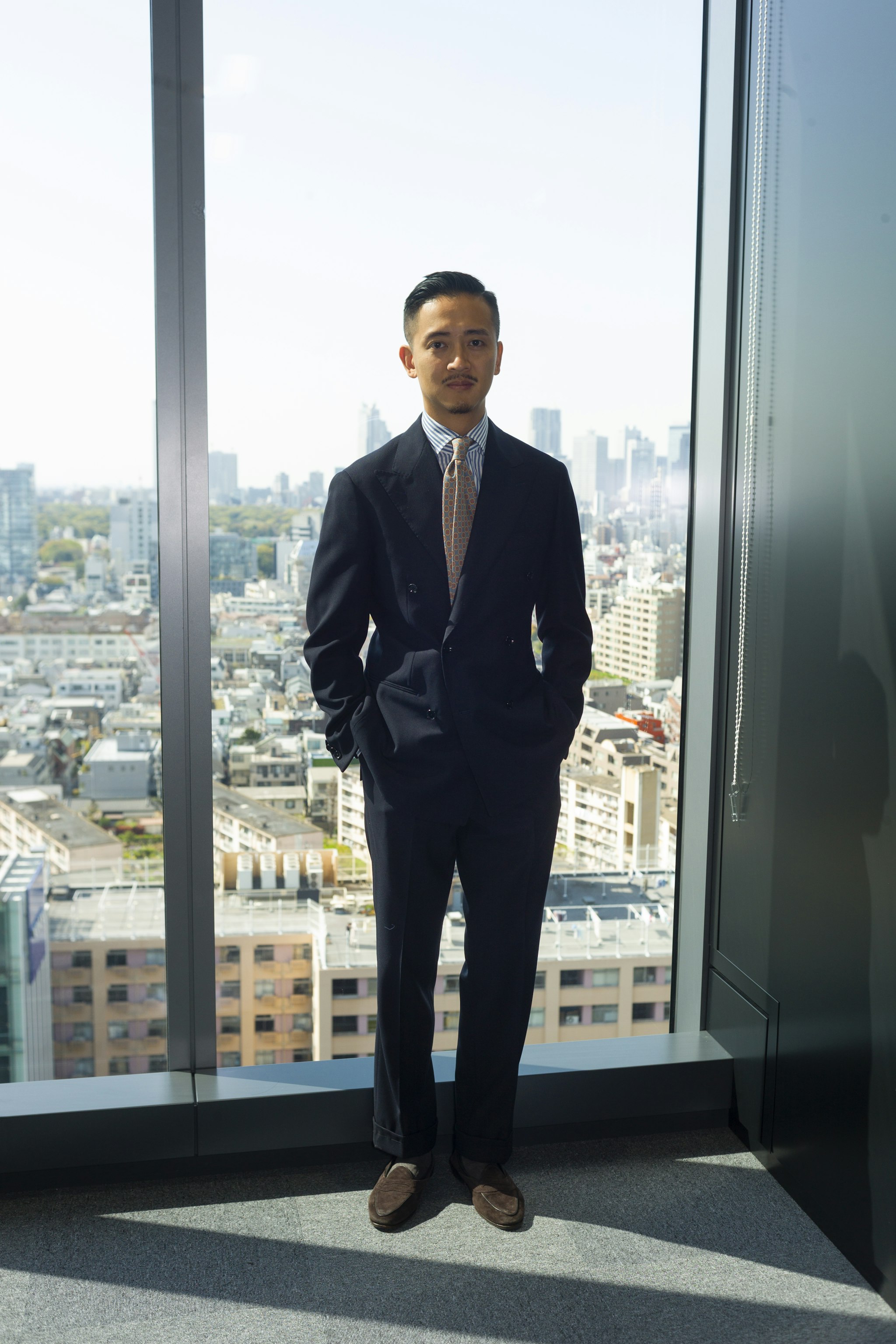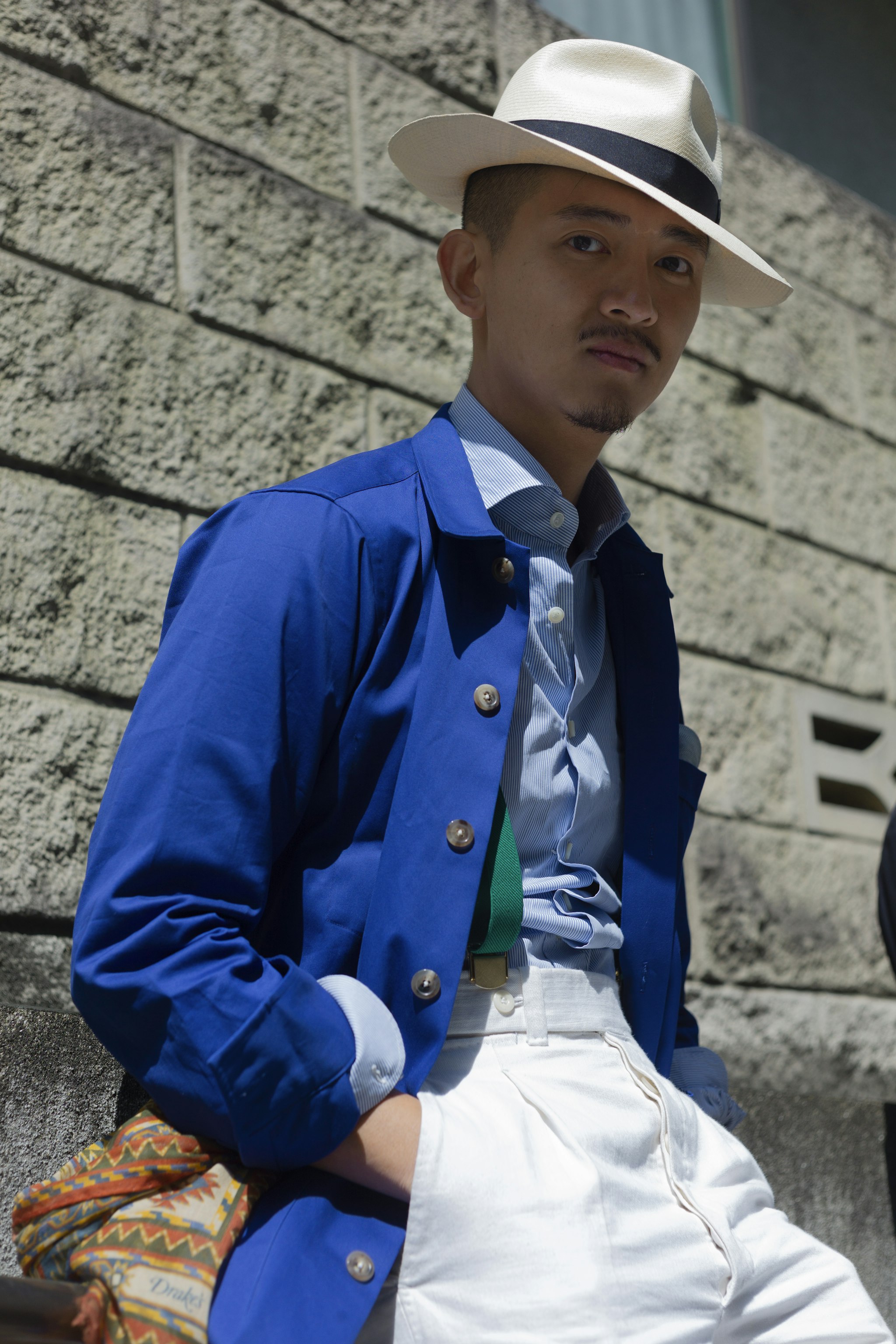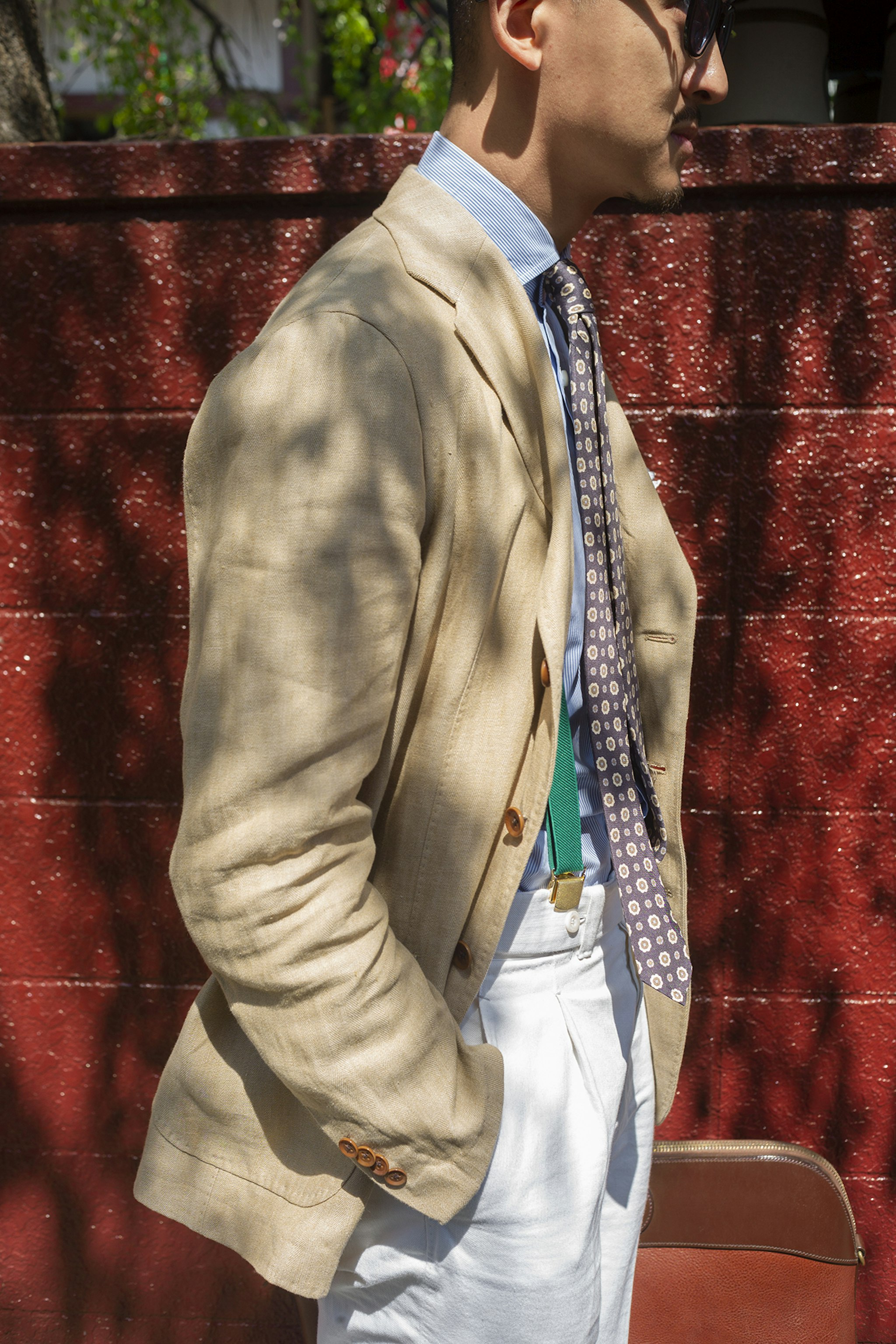 Jan is wearing a Made-to-measure Sport Coat by Orazio Luciano, available for commission year-round in both New York and Hong Kong. The Bespoke trousers by Ambrosi Napoli, are available for commission in Hong Kong. Tie and Pocket Square by Drake's.