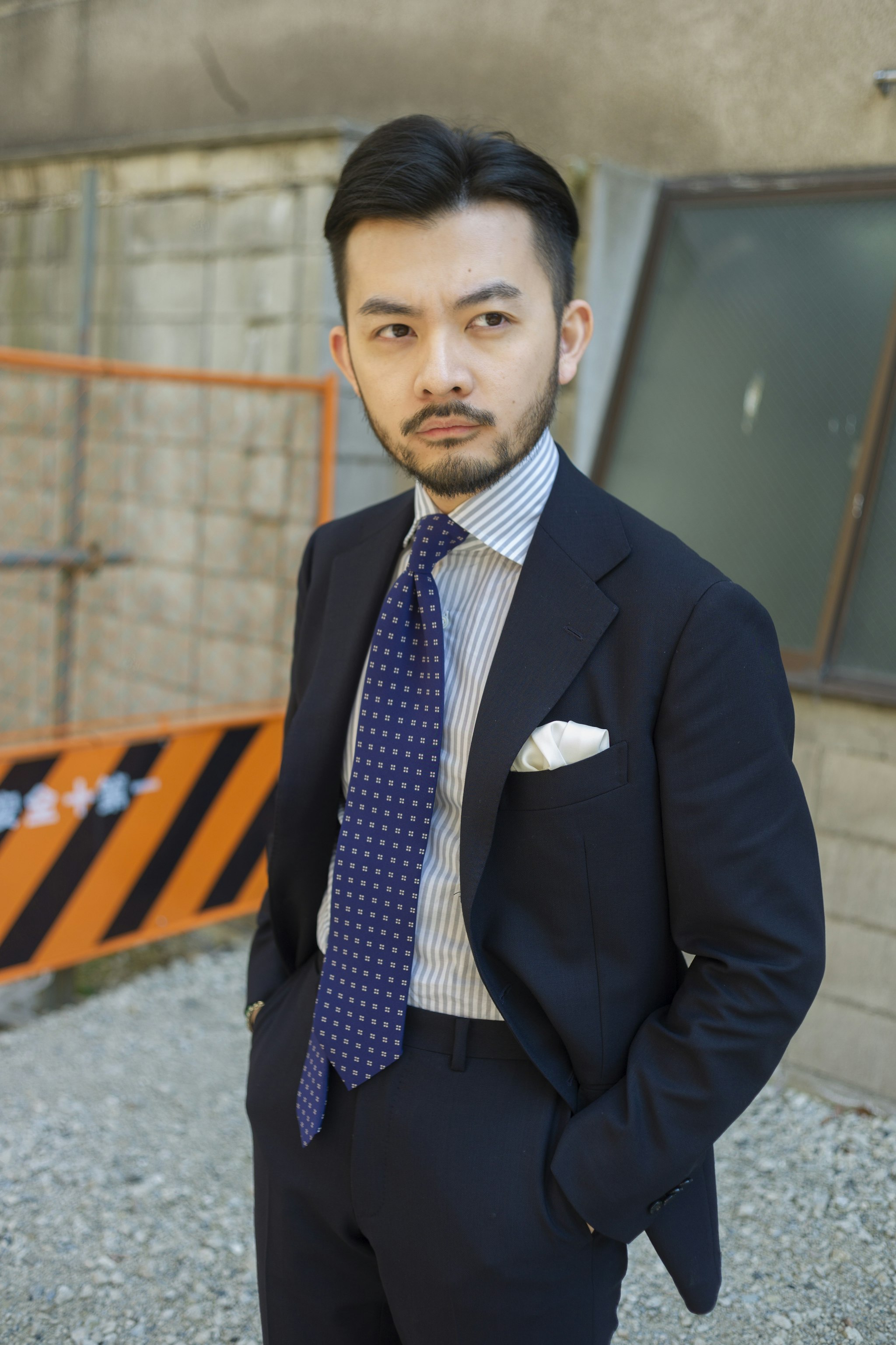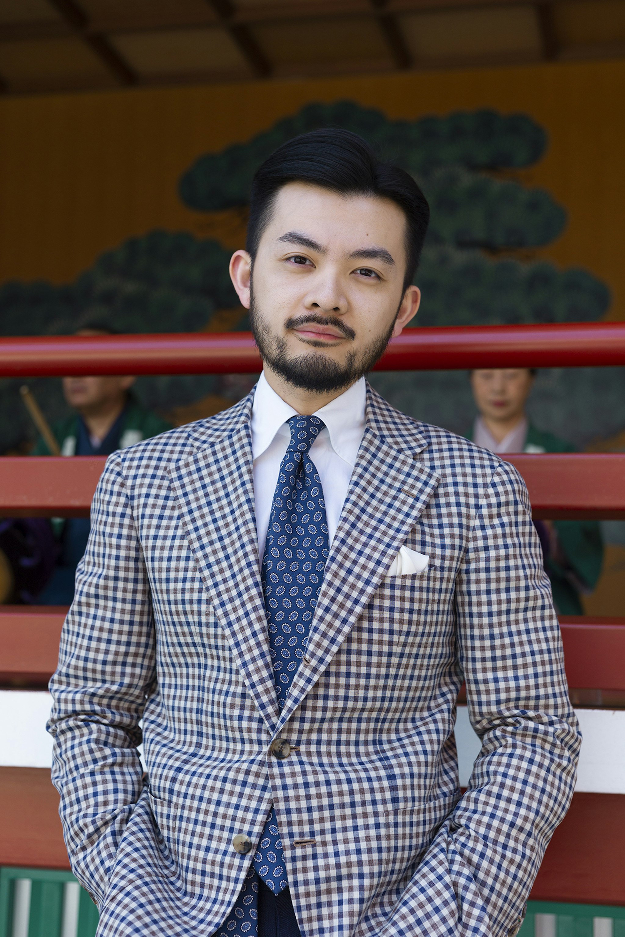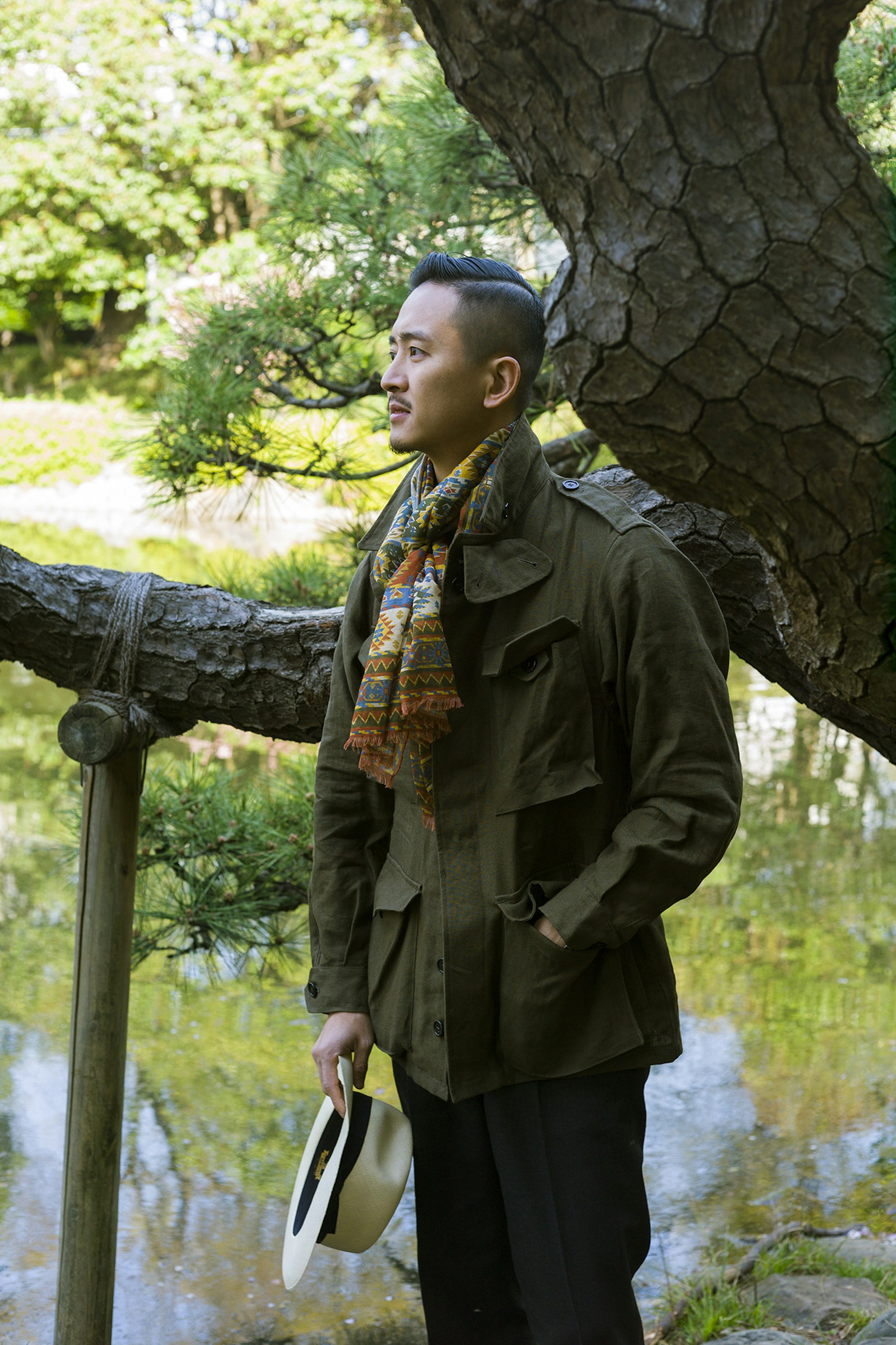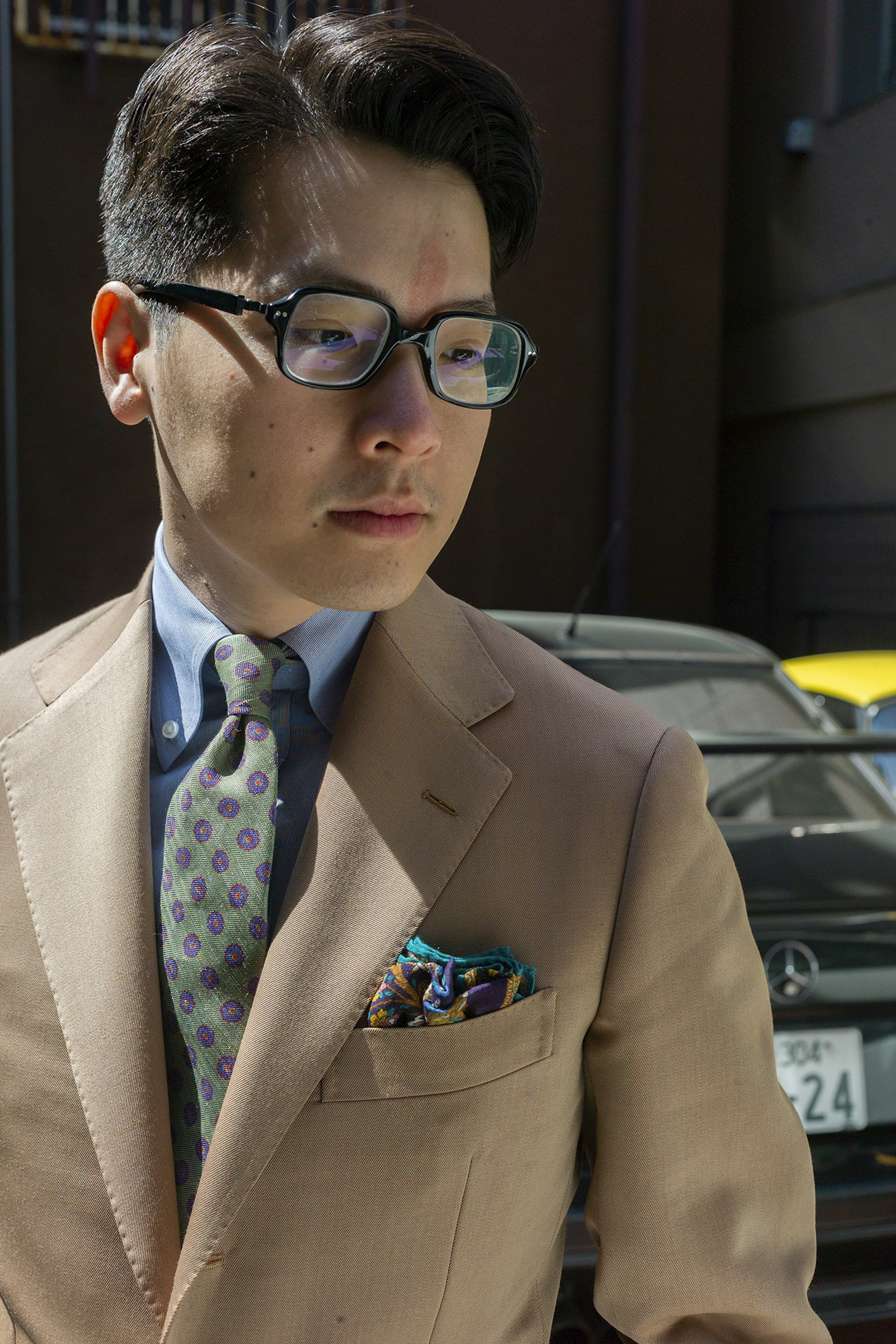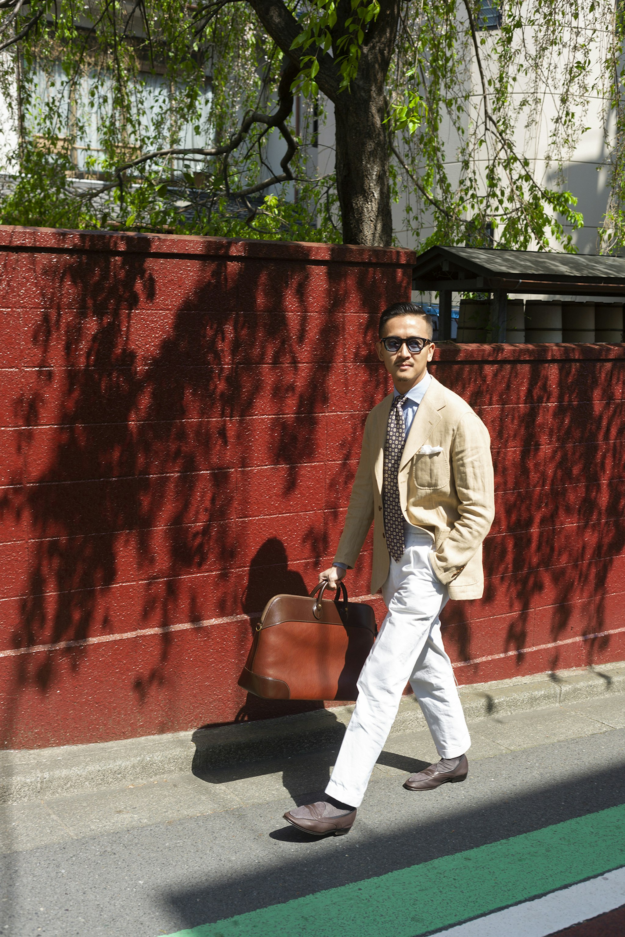 Jan is wearing a Made-to-measure Sport Coat by Orazio Luciano, available for commission year-round in both New York and Hong Kong. The Bespoke trousers by Ambrosi Napoli, are available for commission in Hong Kong. Tie and Pocket Square by Drake's.