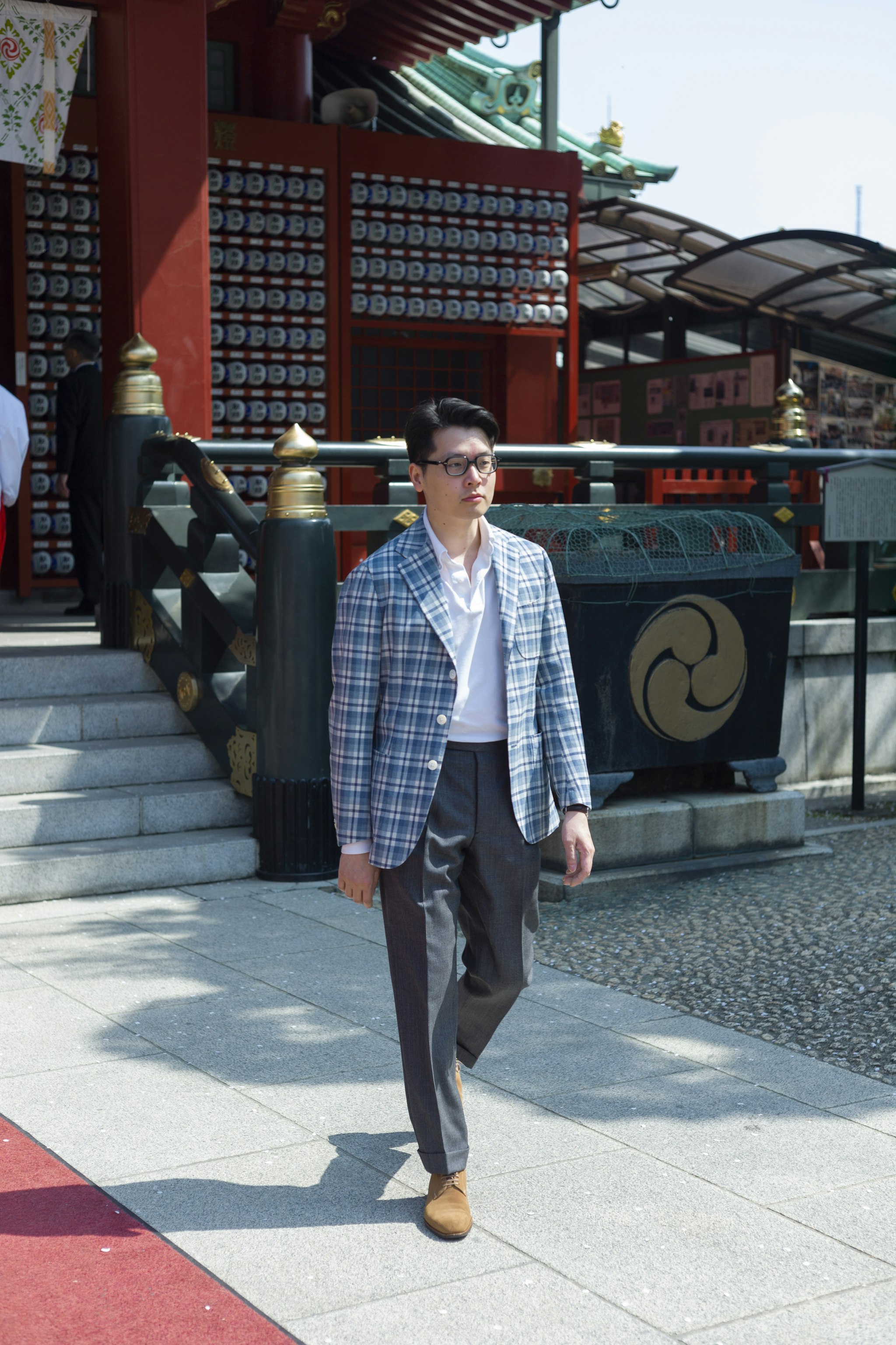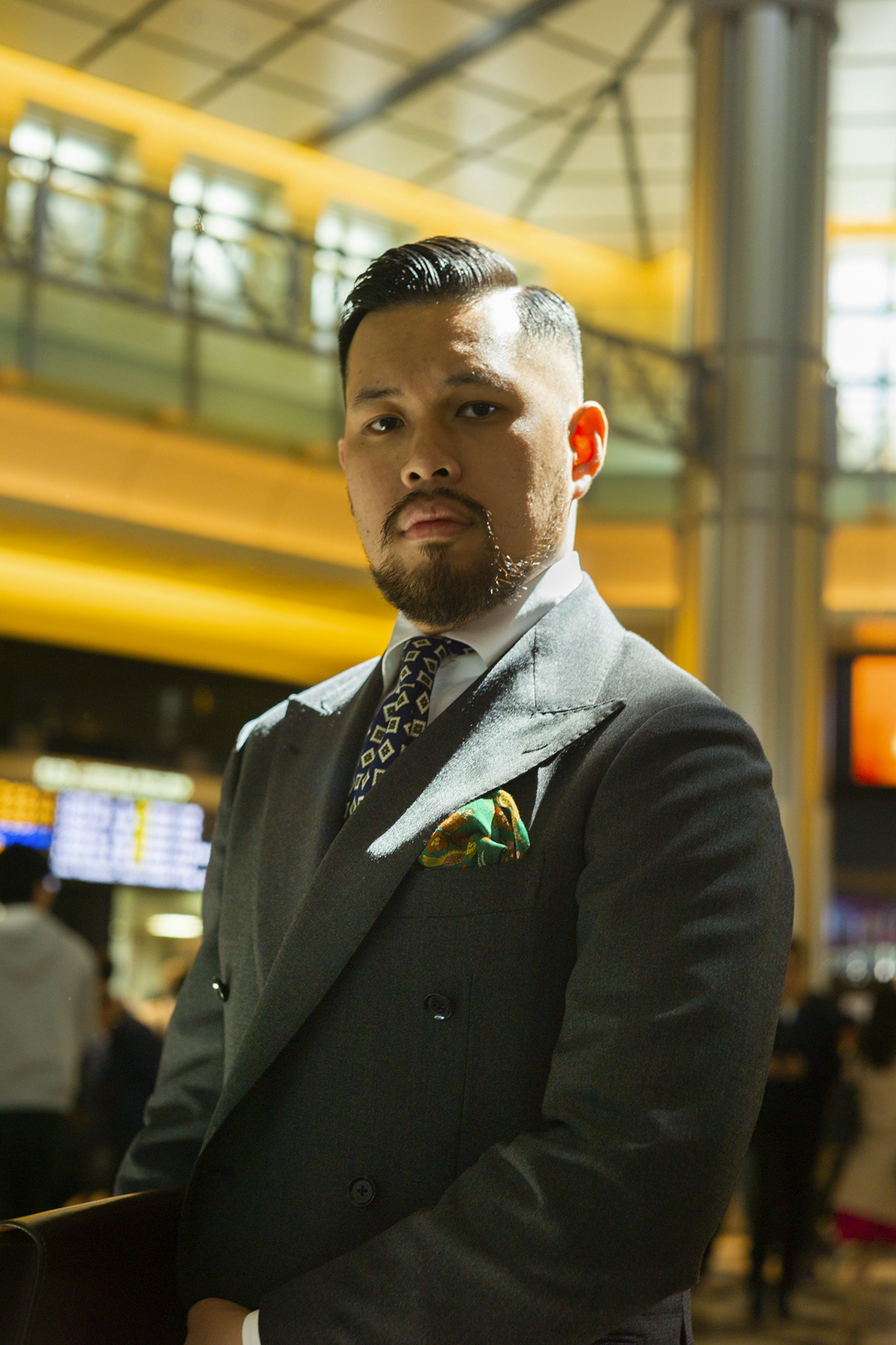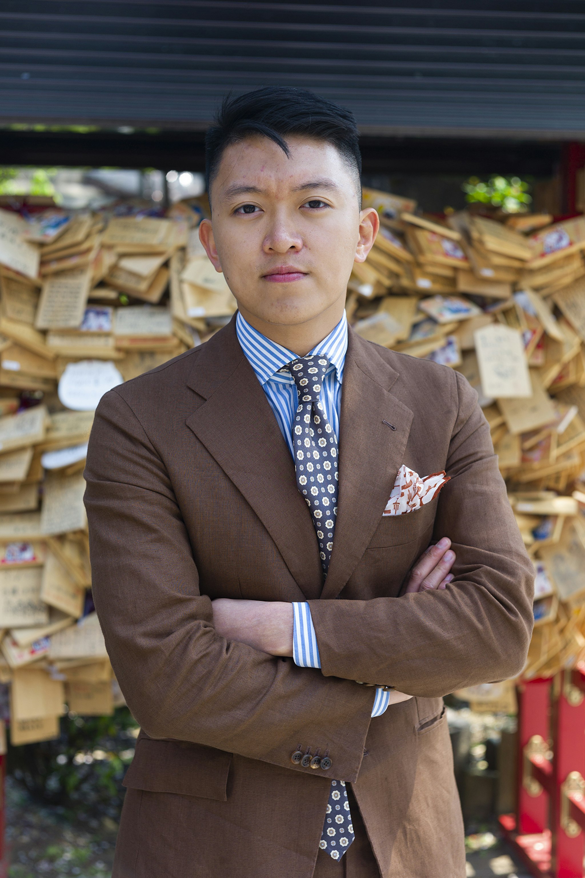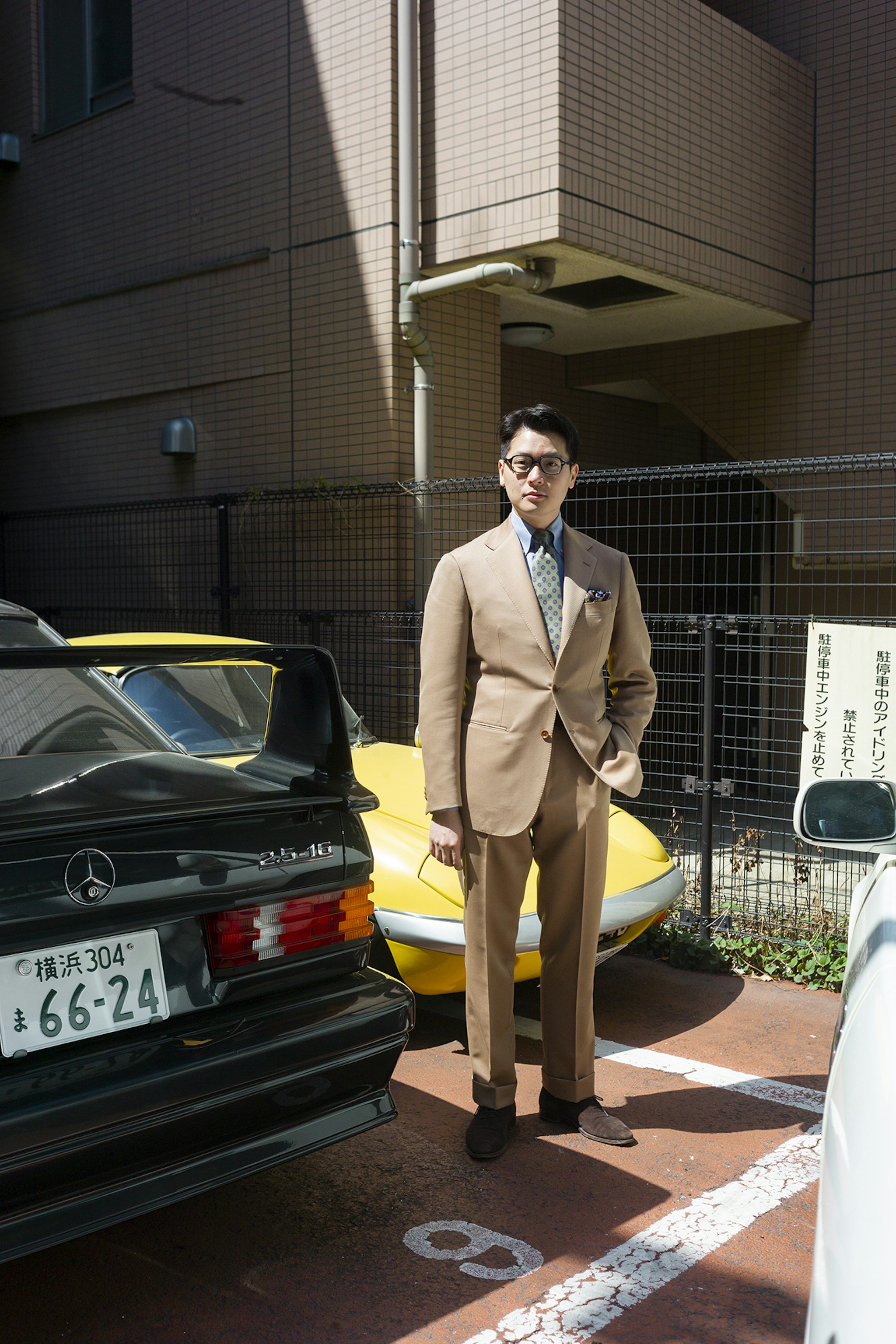 Jan is wearing a Made-to-measure Sport Coat by Orazio Luciano, available for commission year-round in both New York and Hong Kong. The Bespoke trousers by Ambrosi Napoli, are available for commission in Hong Kong. Tie and Pocket Square by Drake's.