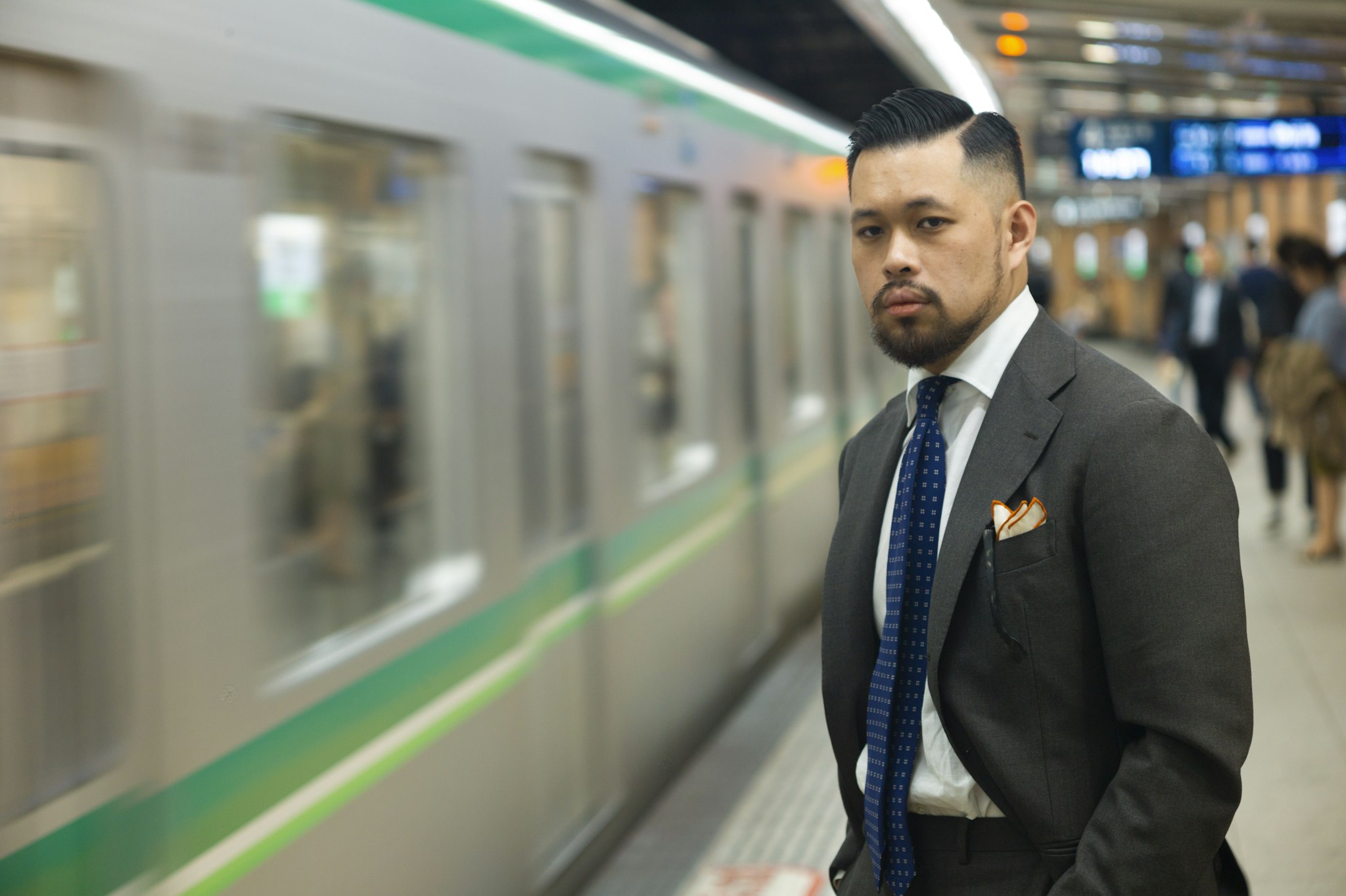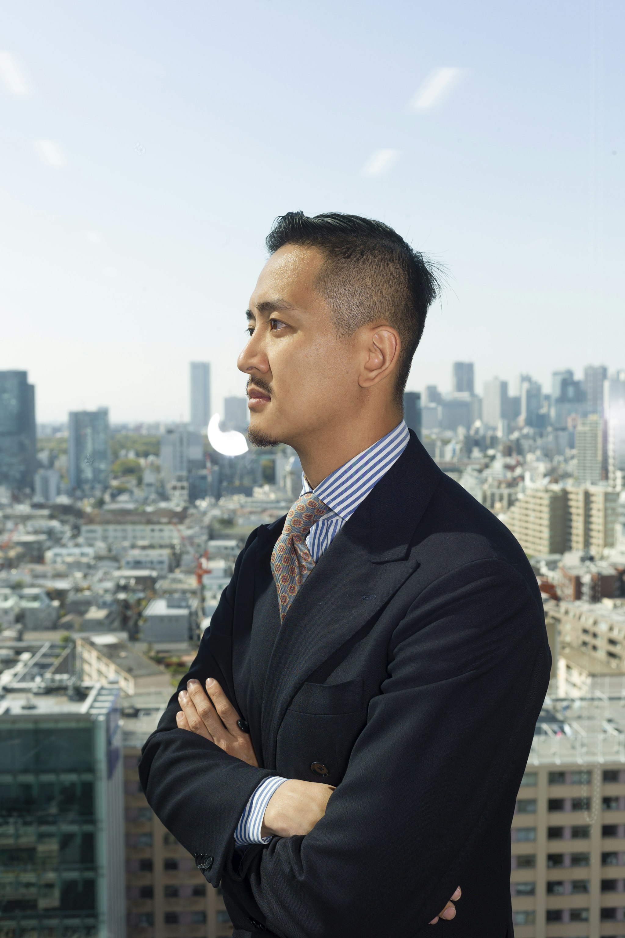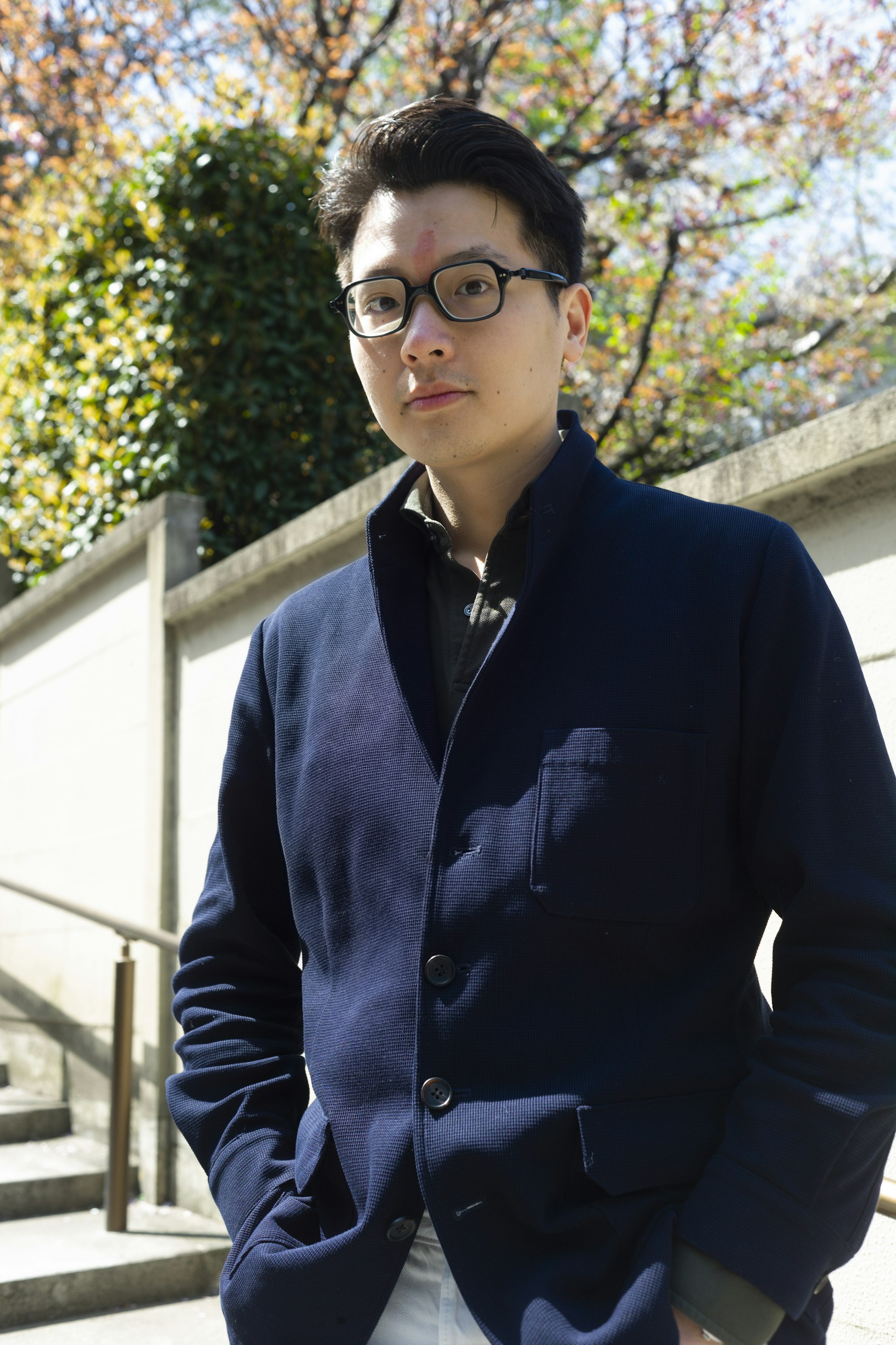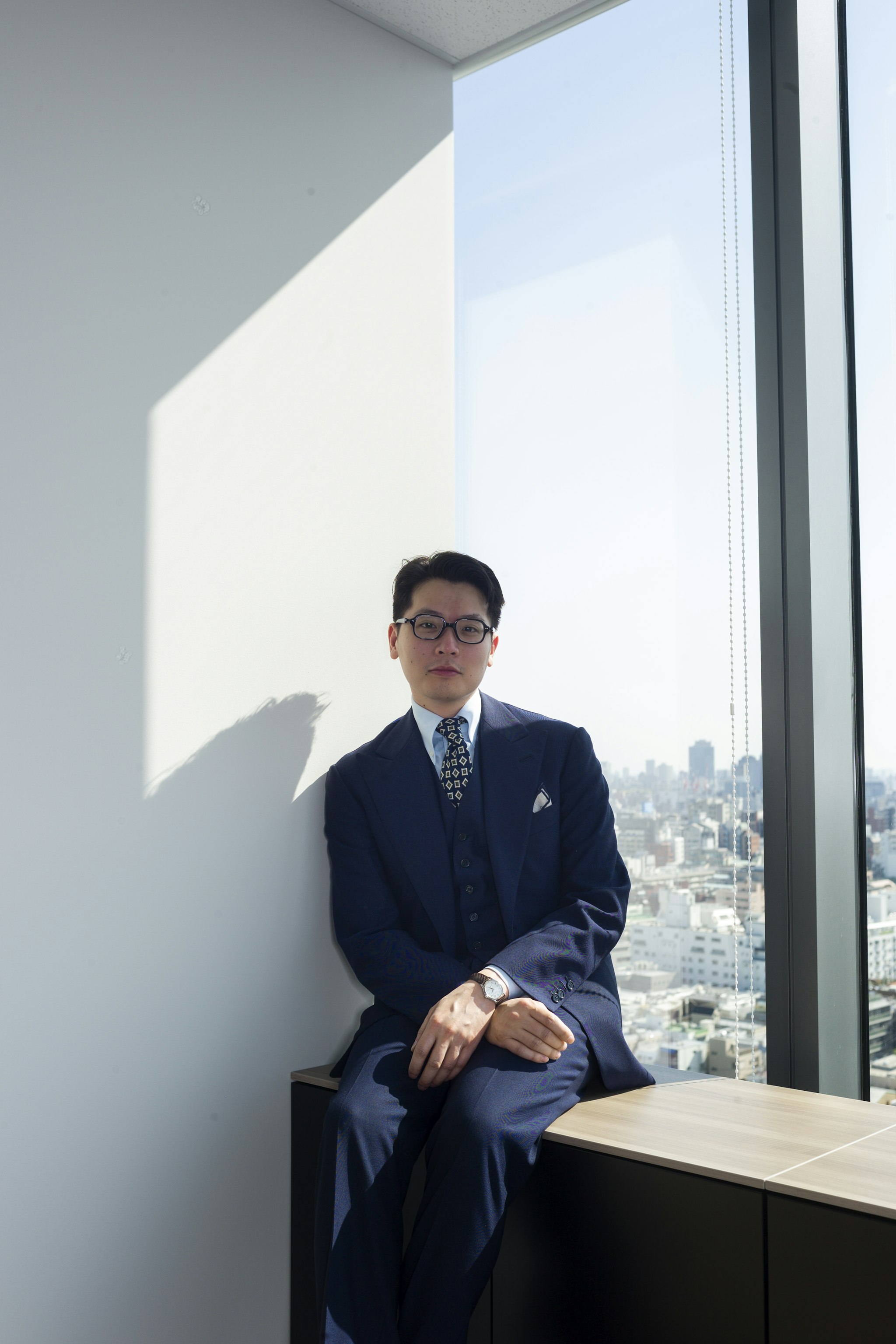 Jan is wearing a Made-to-measure Sport Coat by Orazio Luciano, available for commission year-round in both New York and Hong Kong. The Bespoke trousers by Ambrosi Napoli, are available for commission in Hong Kong. Tie and Pocket Square by Drake's.