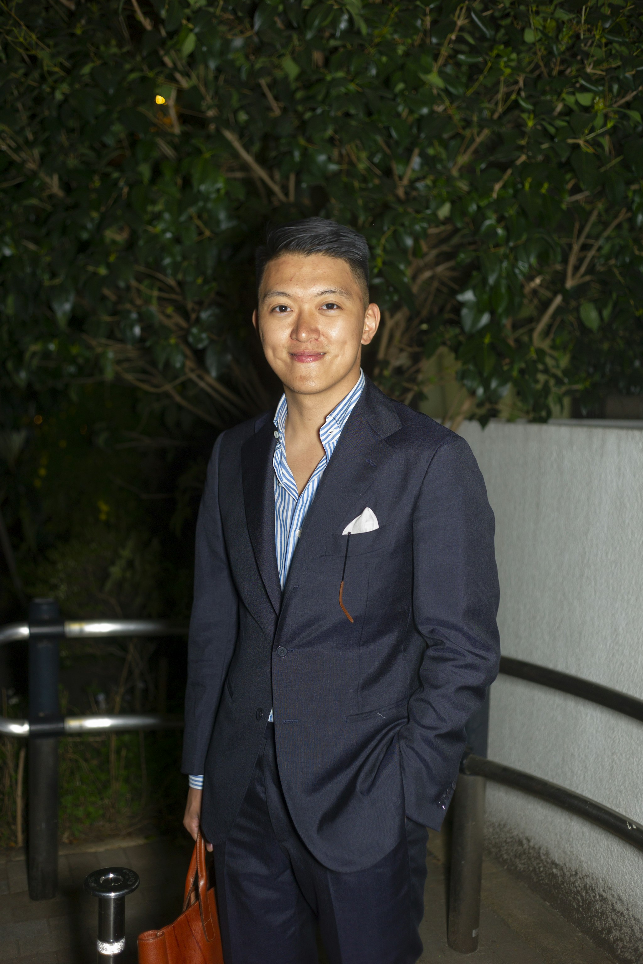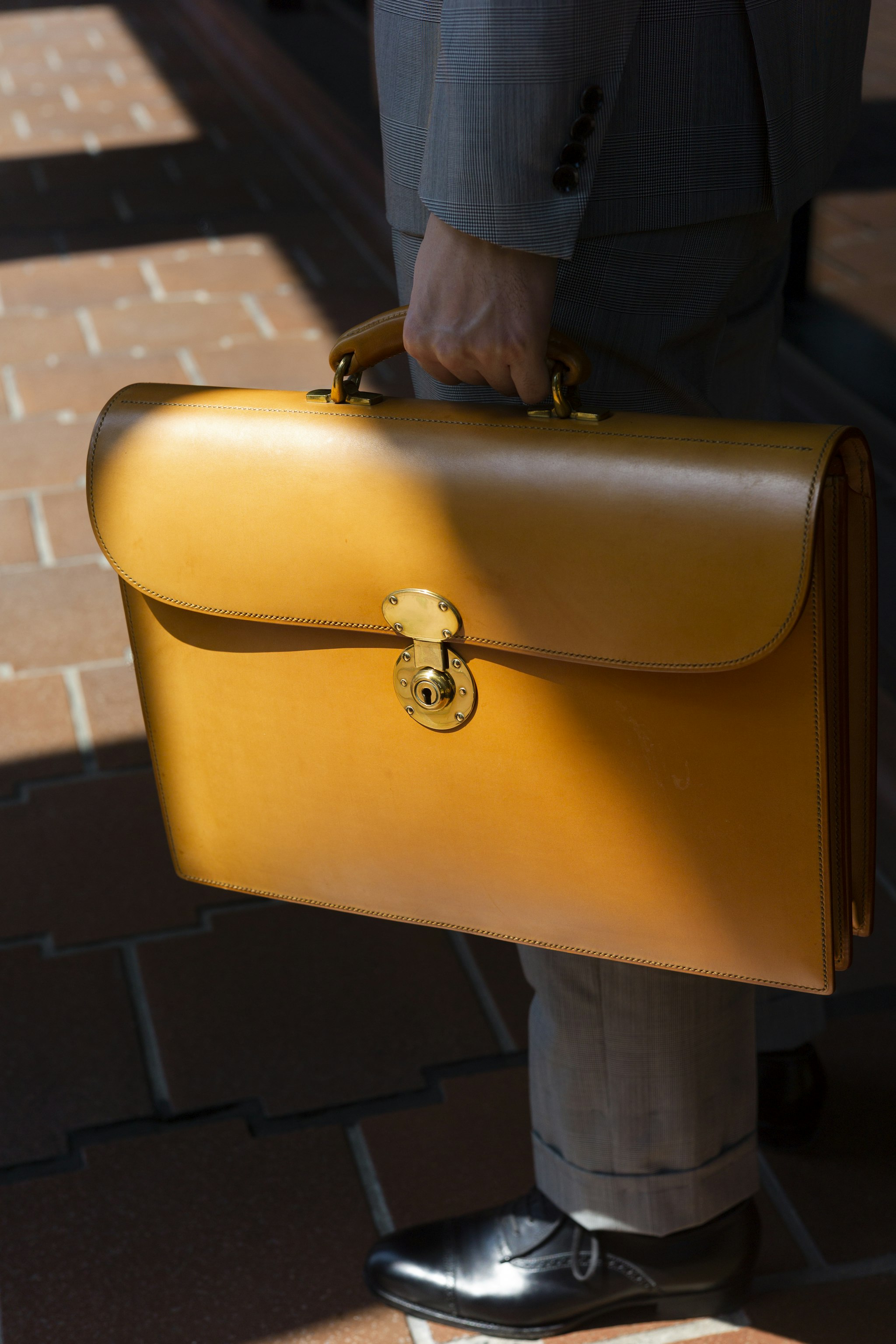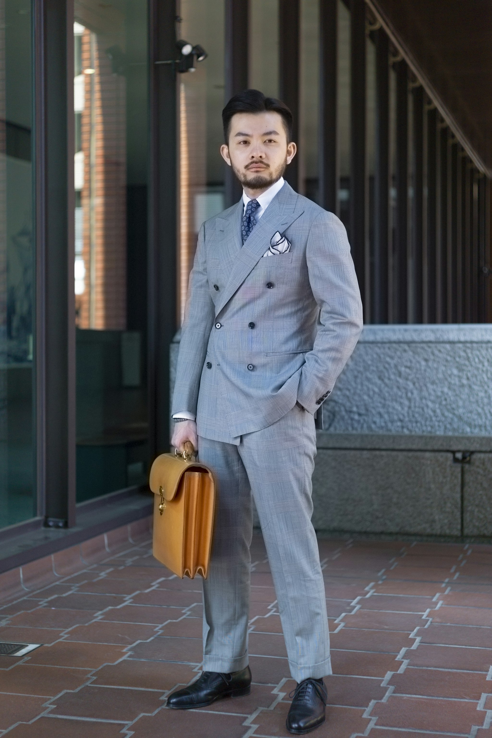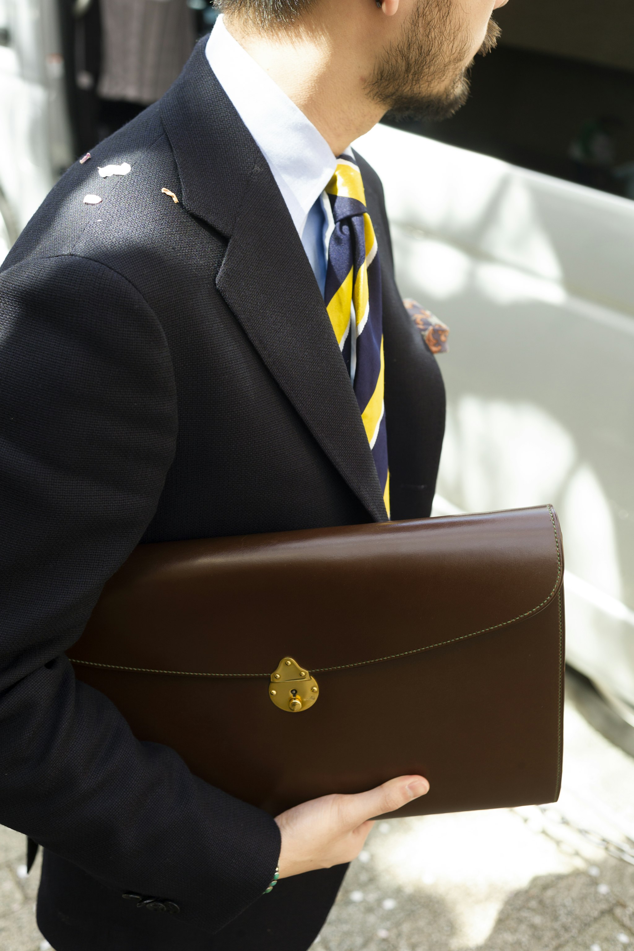 Jan is sporting a Bespoke Ortus Briefcase which can be commissioned during trunk shows in both New York and Hong Kong. Both locations stock and extremely limited selection of curated ready-to-wear bags.