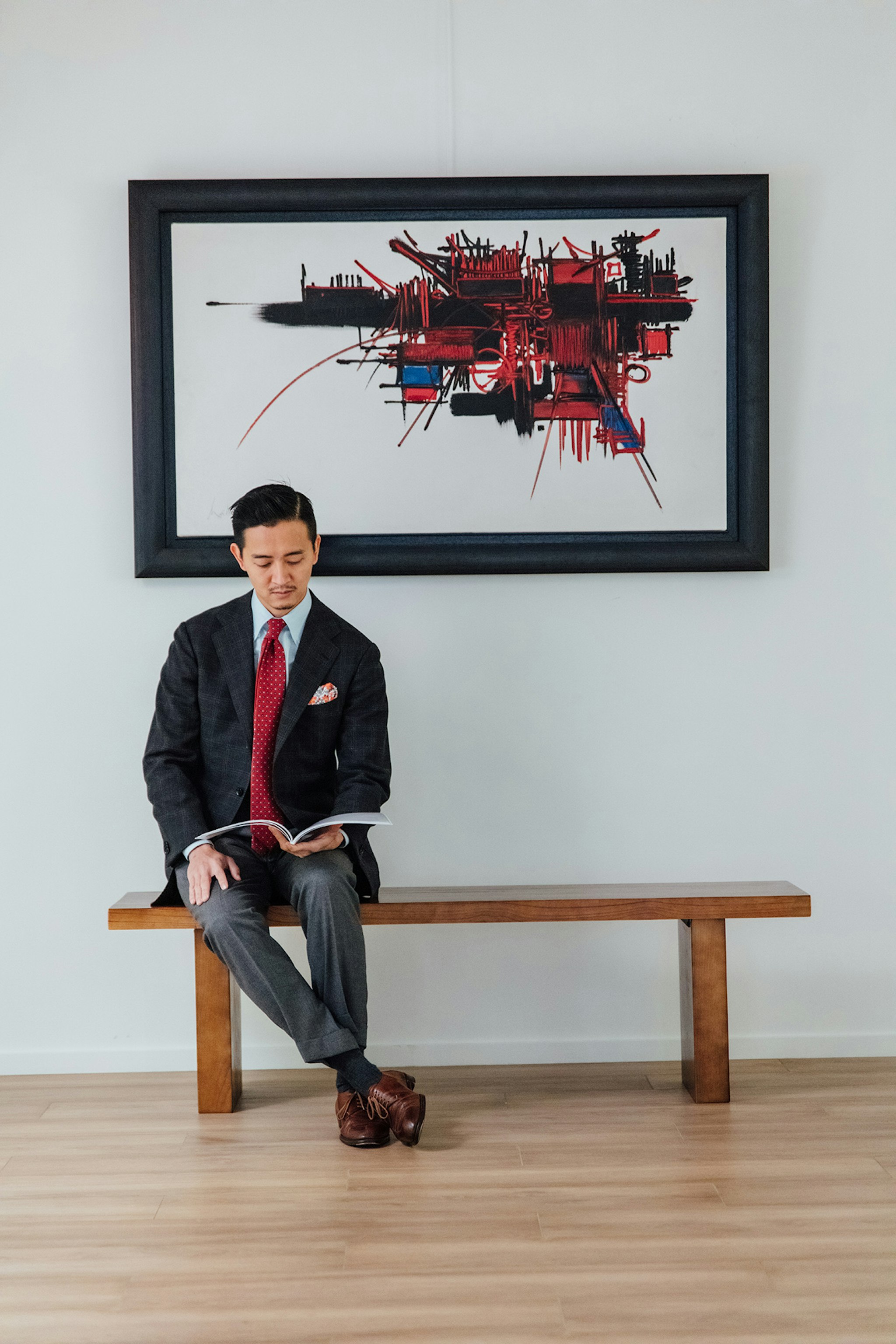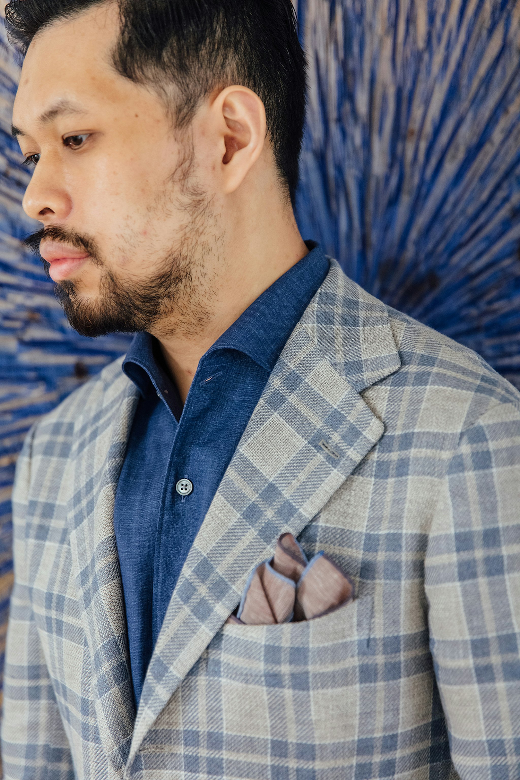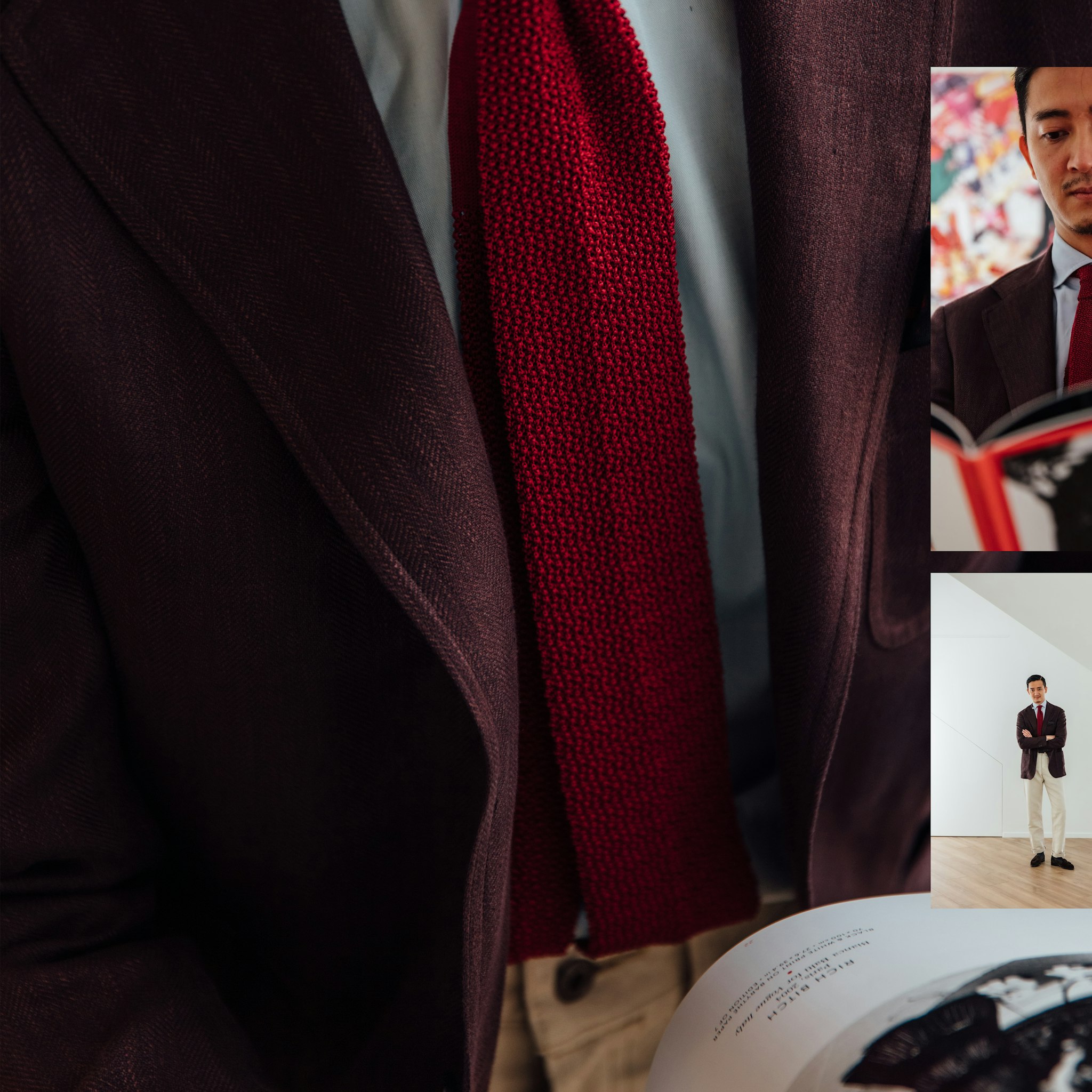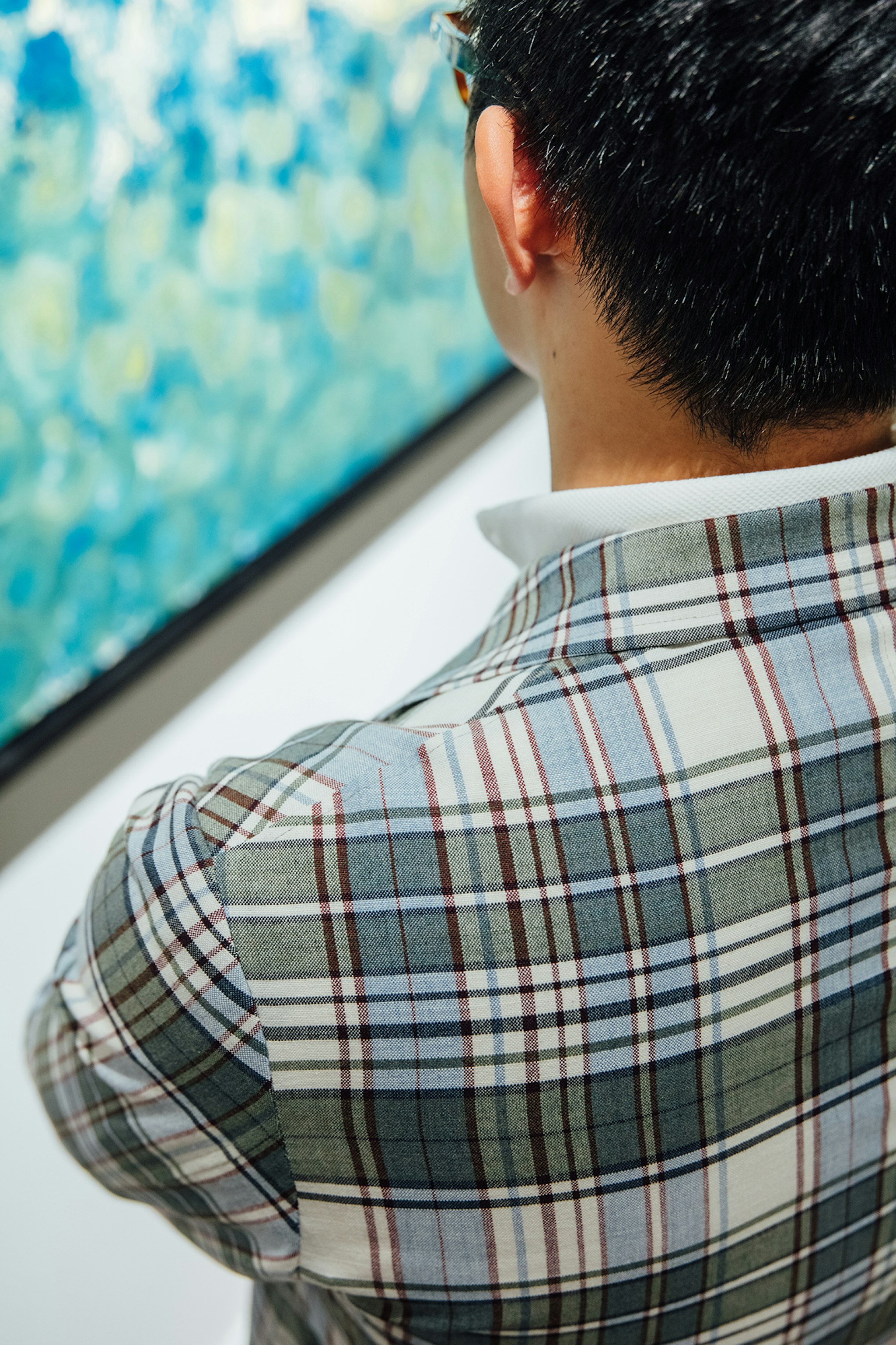 "It's a pleasure getting to know your neighbours. Recently, Opera Gallery, one of the leading international art dealers of the world, opened down the street from us in Central, Hong Kong and we found their space and their pieces on display both moving and inspirational. So much so, we decided to create a lookbook introducing our Spring Summer tailoring amongst these brilliant colours. We are particularly excited this season to be introducing two new jacket models, the single-breasted Florentine-style Model 15 and the double-breasted dartless Model 16." – Co-founder Mark Cho