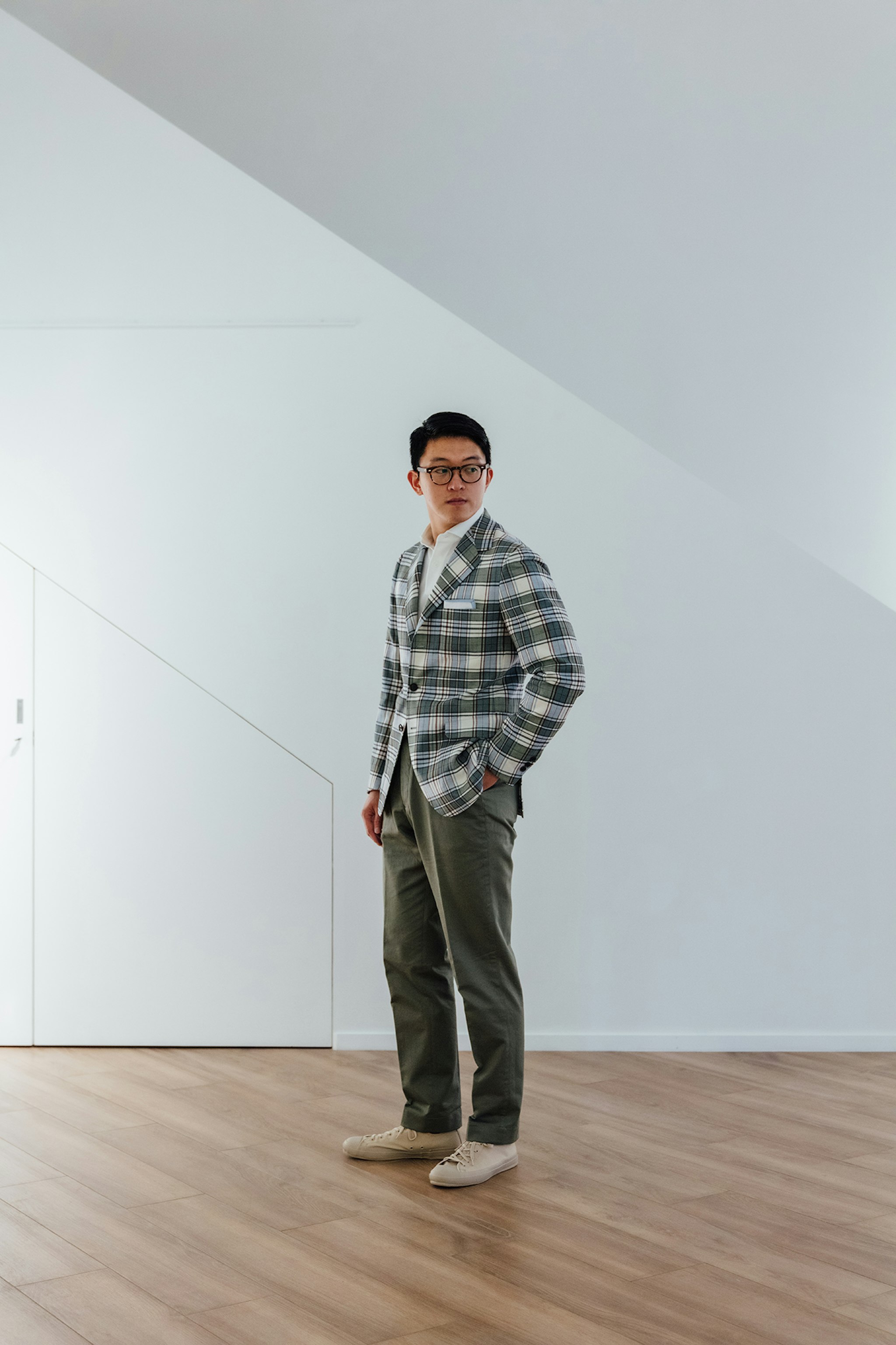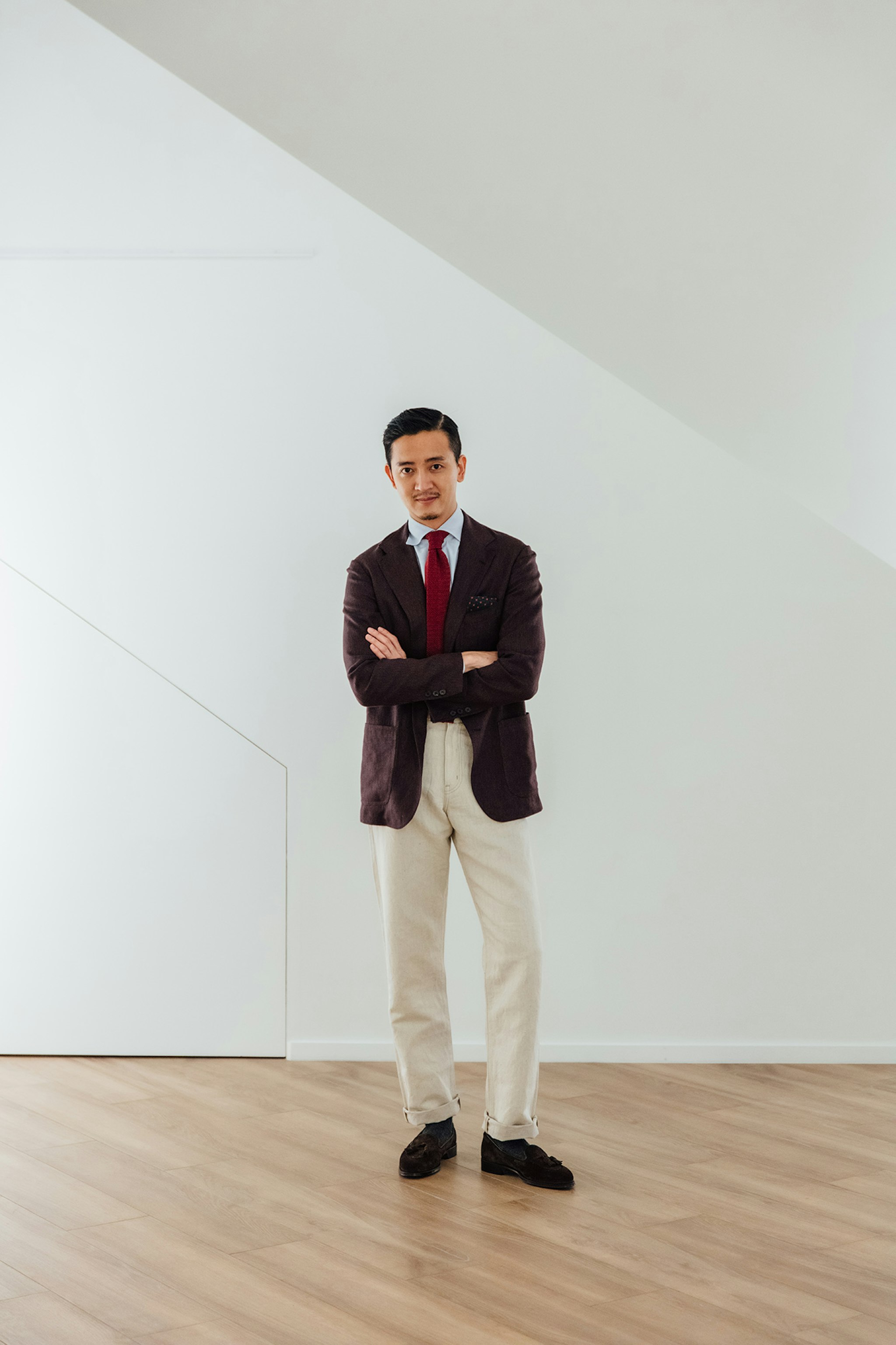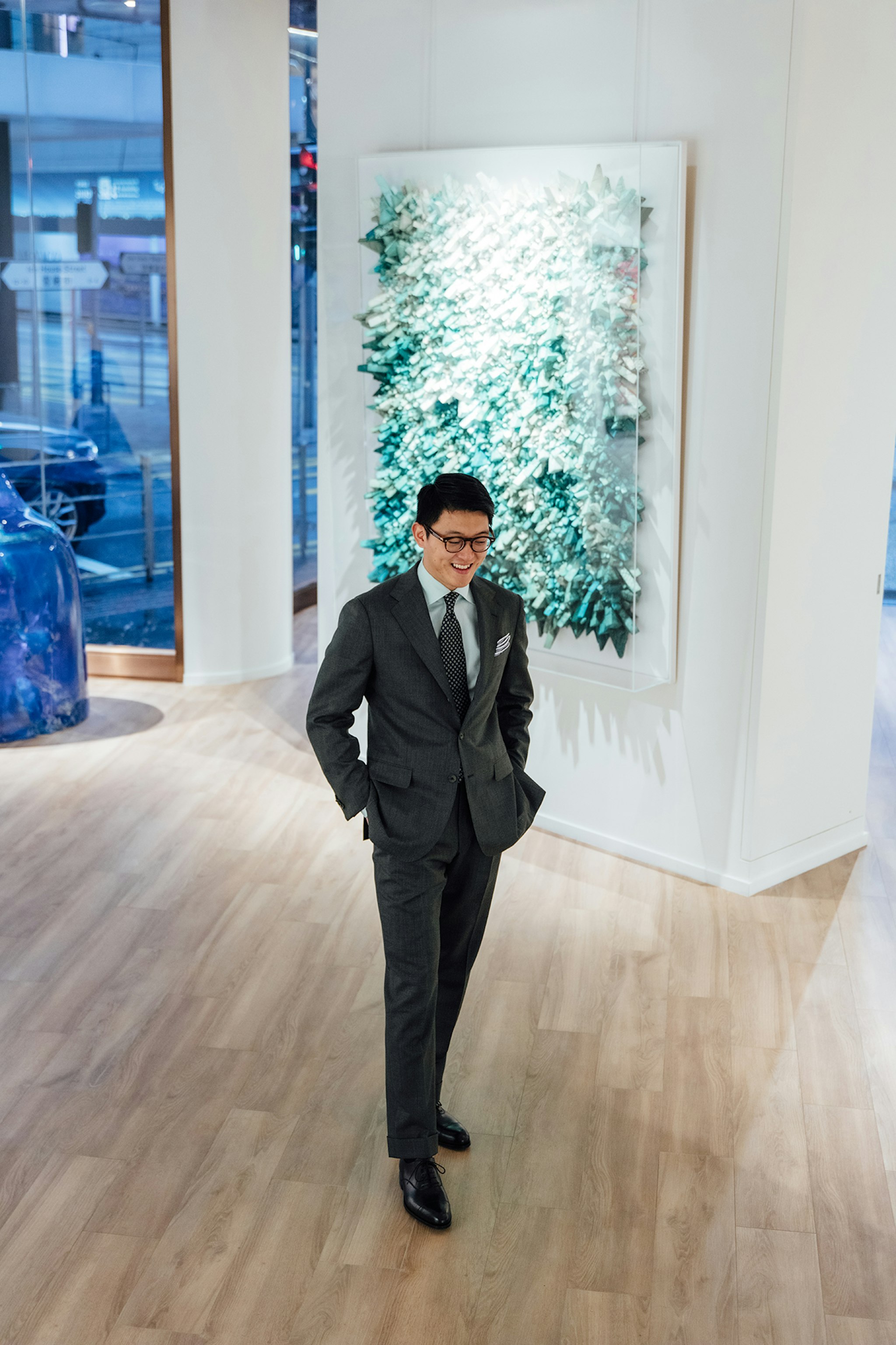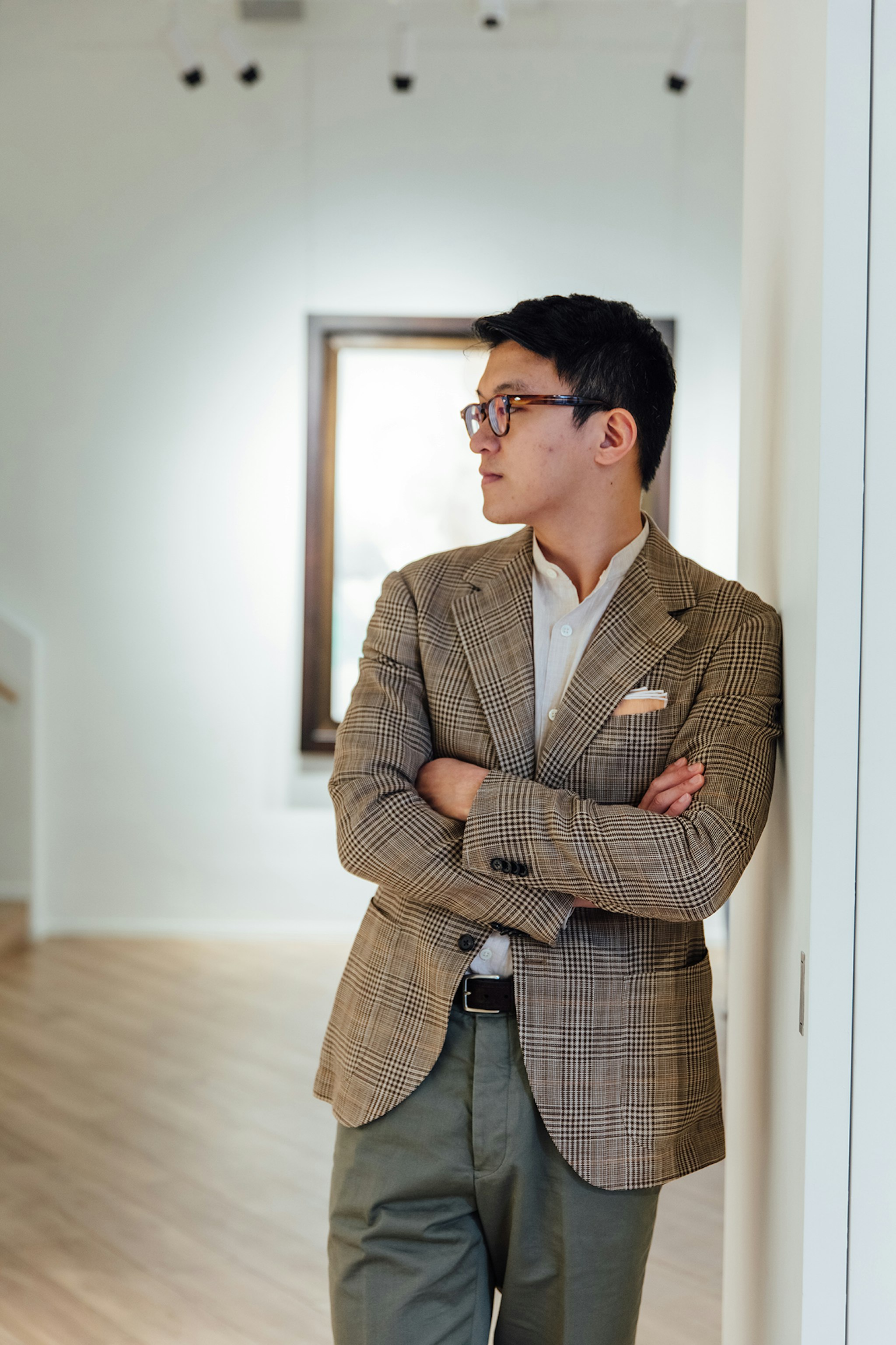 "It's a pleasure getting to know your neighbours. Recently, Opera Gallery, one of the leading international art dealers of the world, opened down the street from us in Central, Hong Kong and we found their space and their pieces on display both moving and inspirational. So much so, we decided to create a lookbook introducing our Spring Summer tailoring amongst these brilliant colours. We are particularly excited this season to be introducing two new jacket models, the single-breasted Florentine-style Model 15 and the double-breasted dartless Model 16." – Co-founder Mark Cho