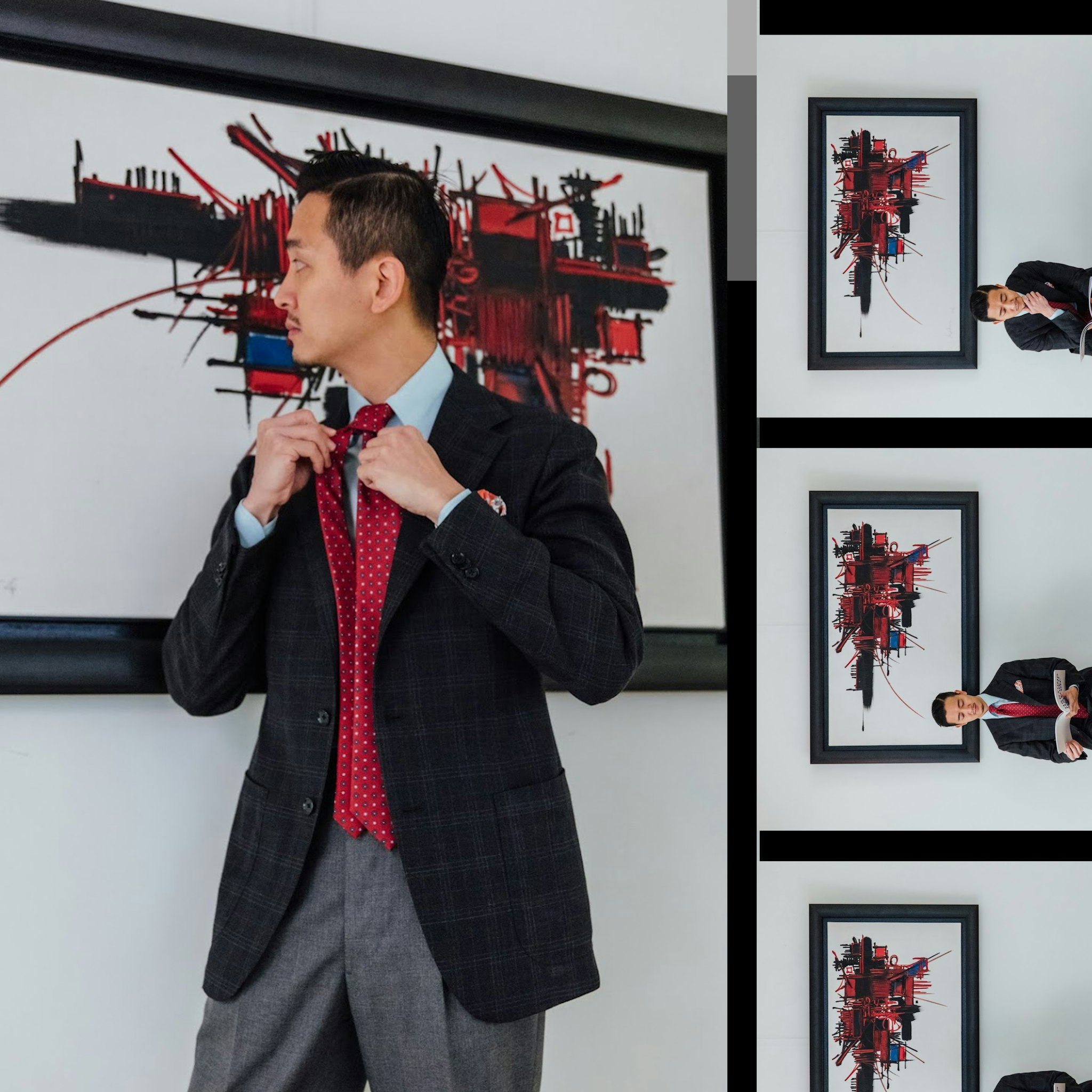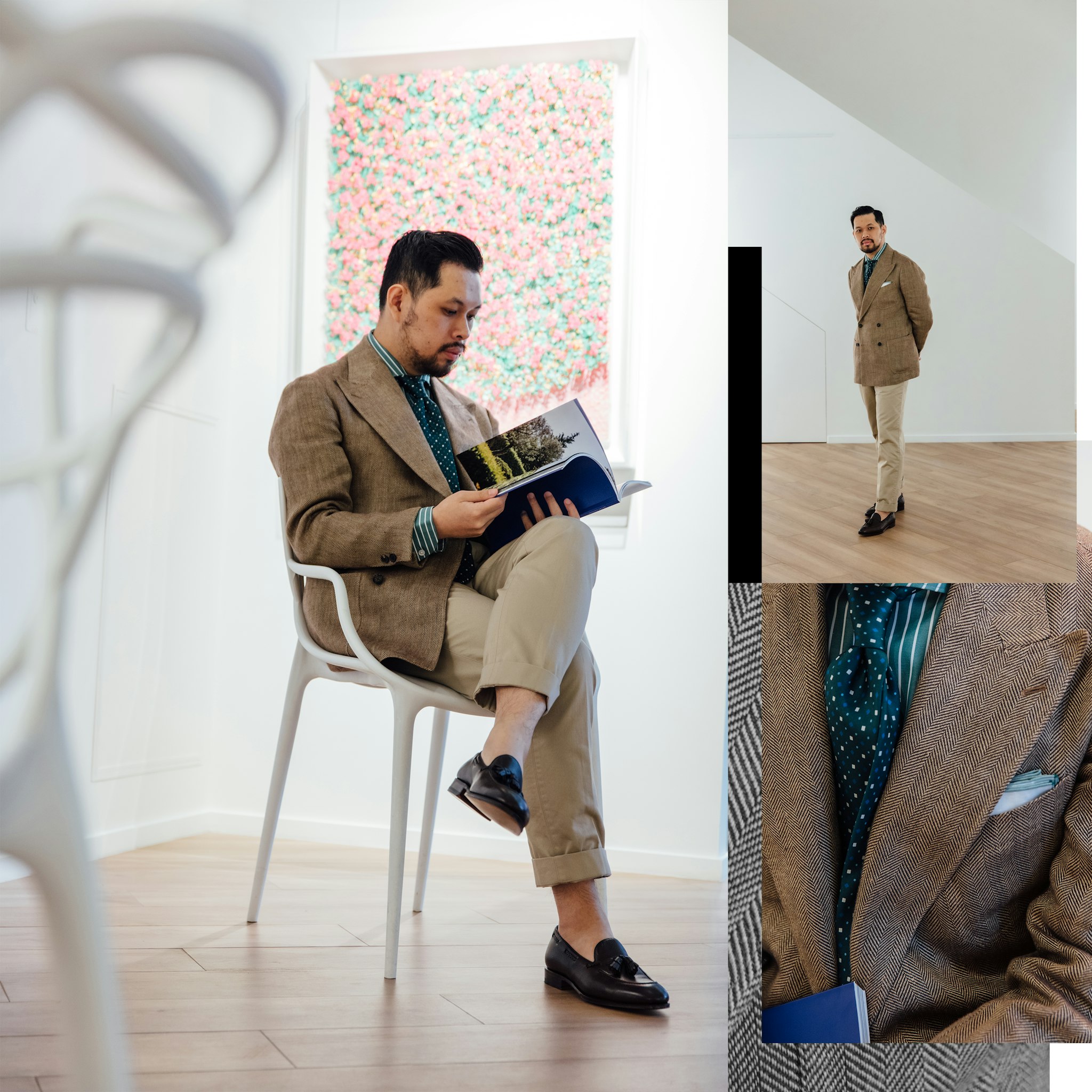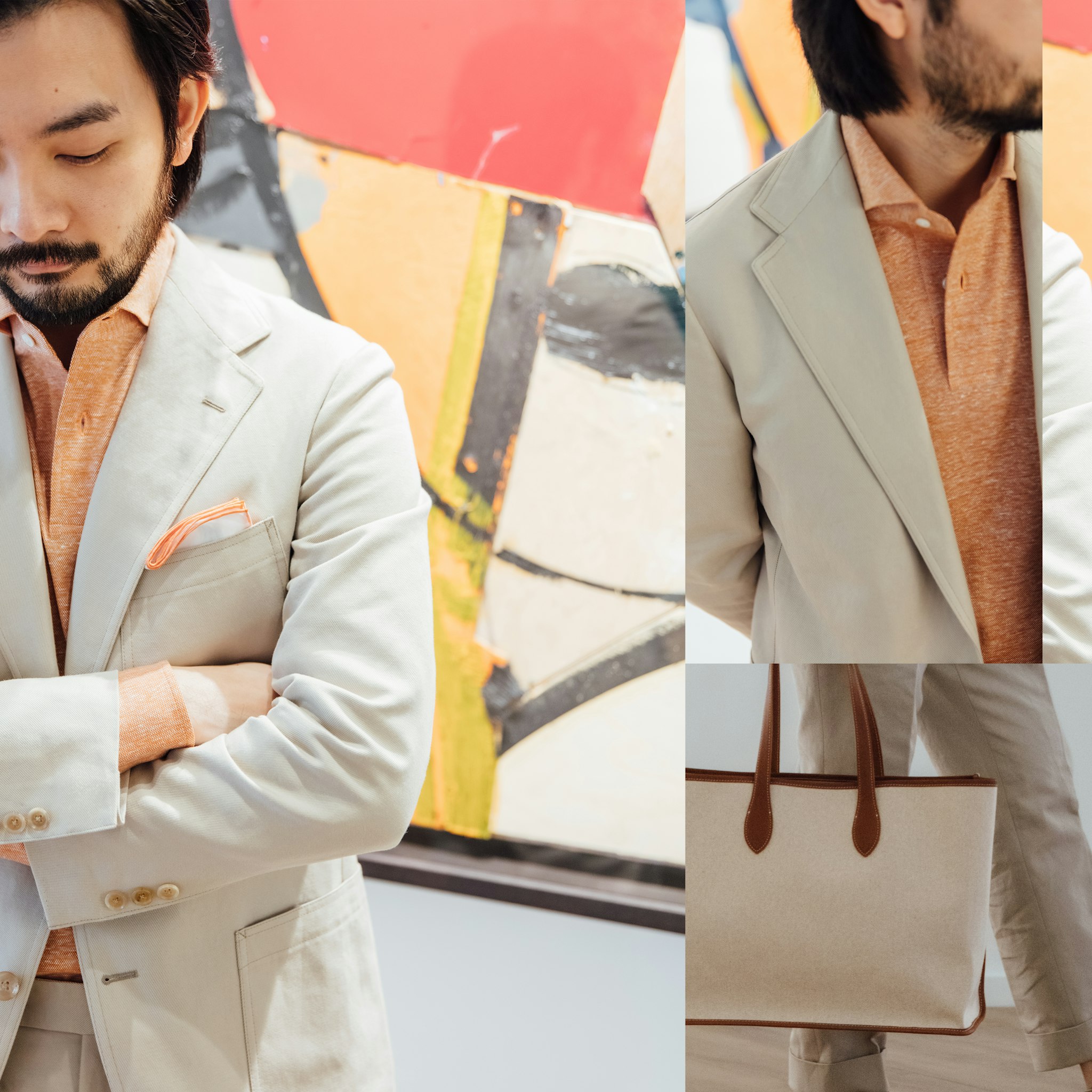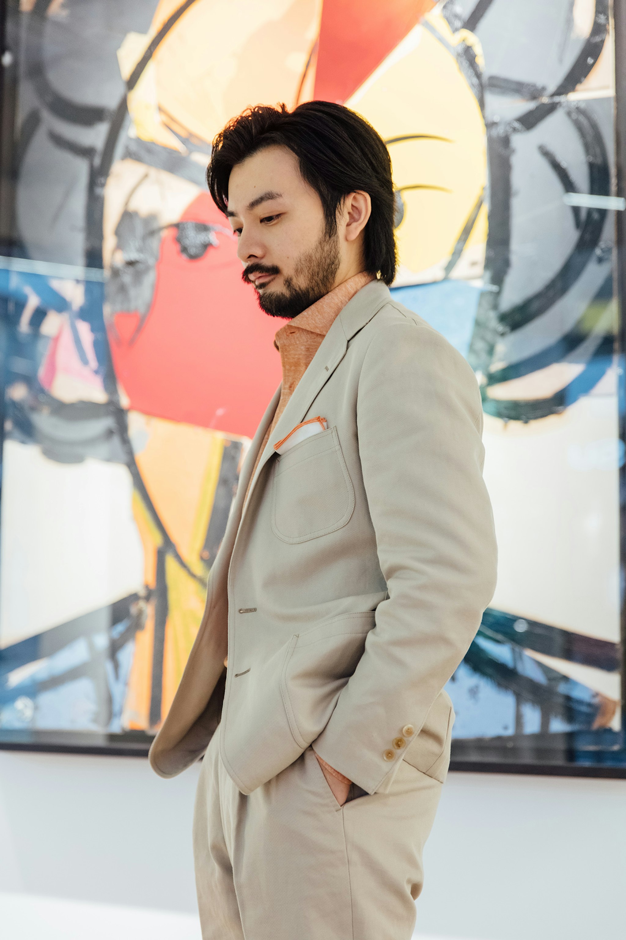 "It's a pleasure getting to know your neighbours. Recently, Opera Gallery, one of the leading international art dealers of the world, opened down the street from us in Central, Hong Kong and we found their space and their pieces on display both moving and inspirational. So much so, we decided to create a lookbook introducing our Spring Summer tailoring amongst these brilliant colours. We are particularly excited this season to be introducing two new jacket models, the single-breasted Florentine-style Model 15 and the double-breasted dartless Model 16." – Co-founder Mark Cho