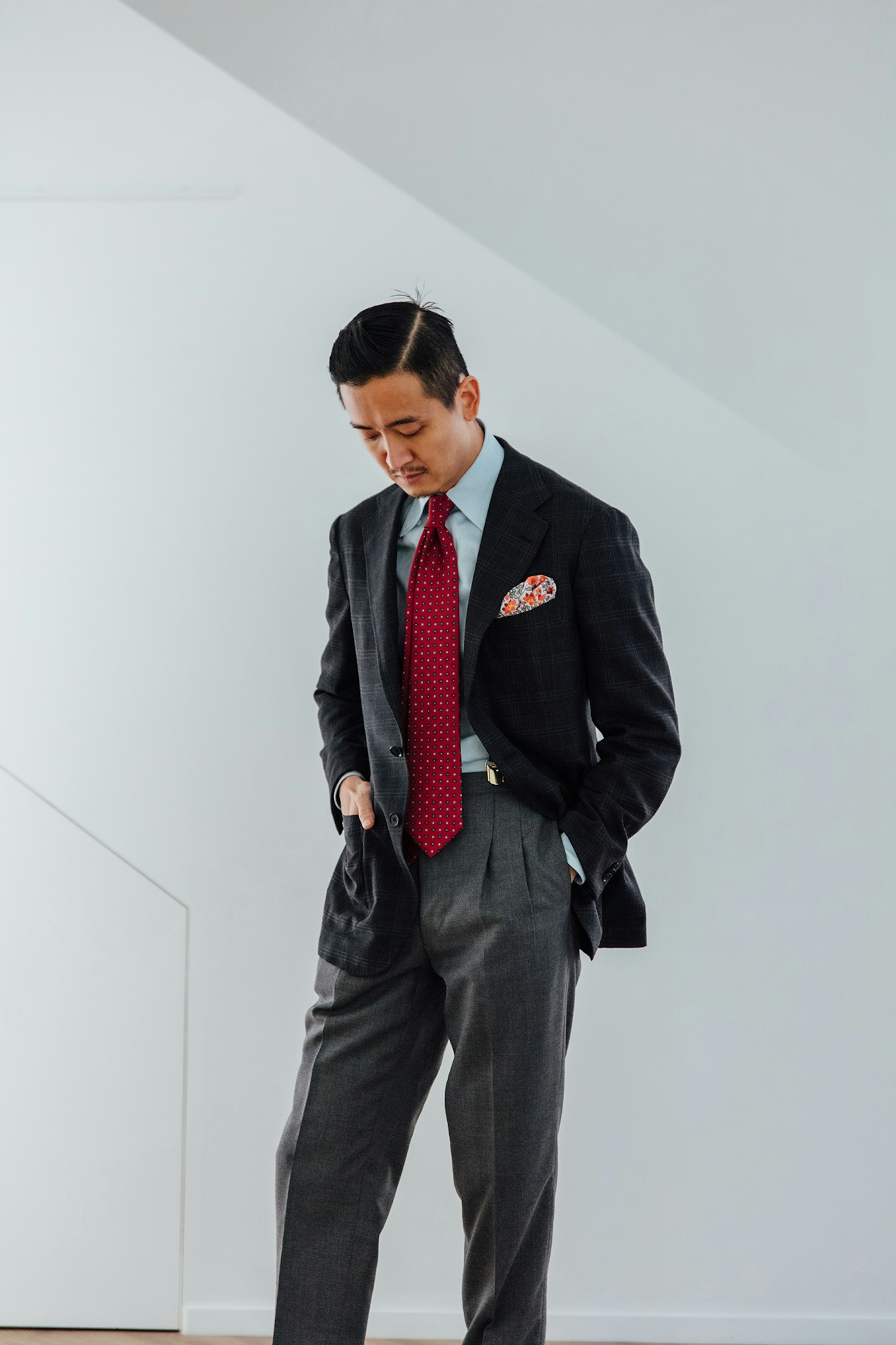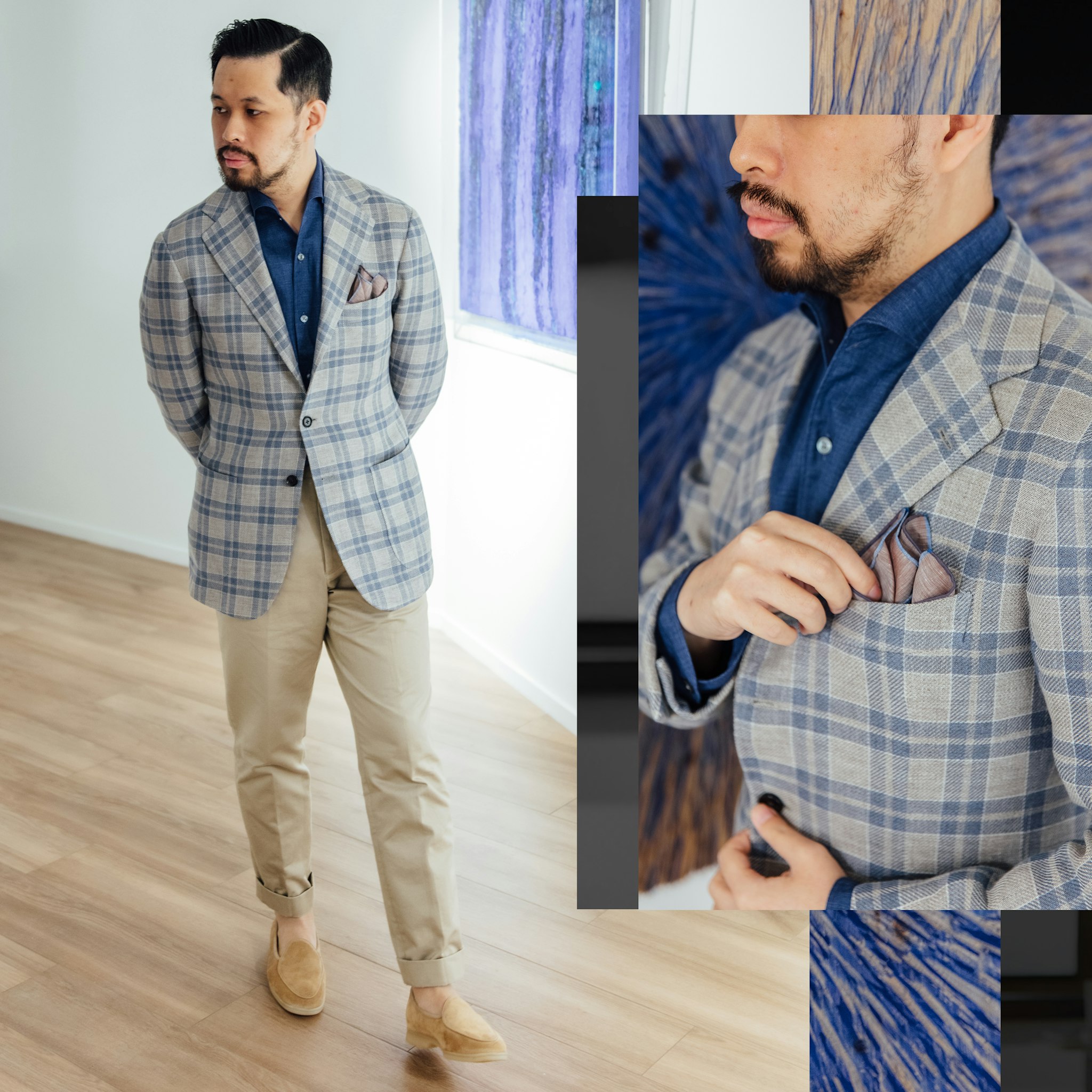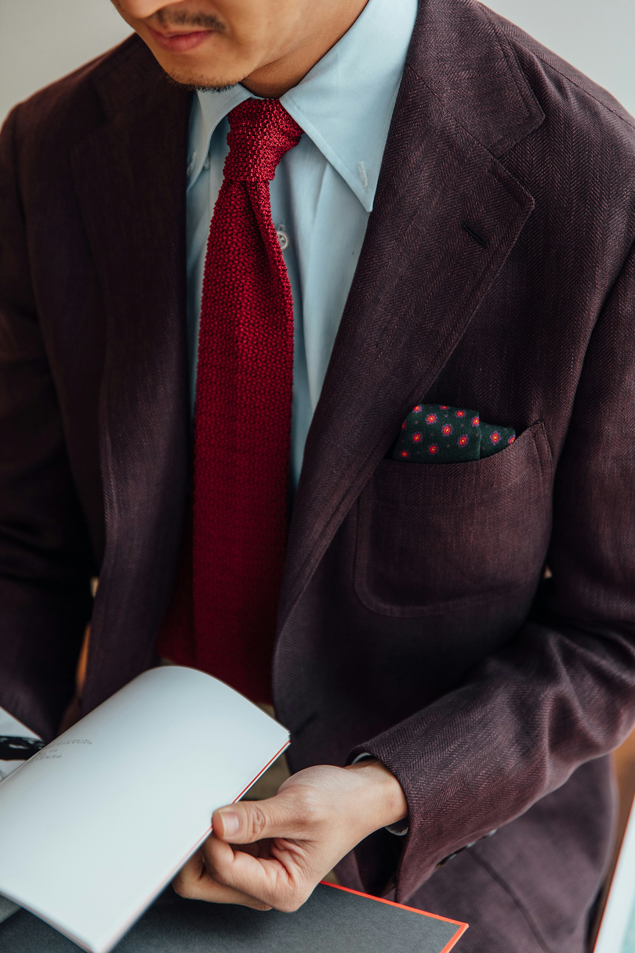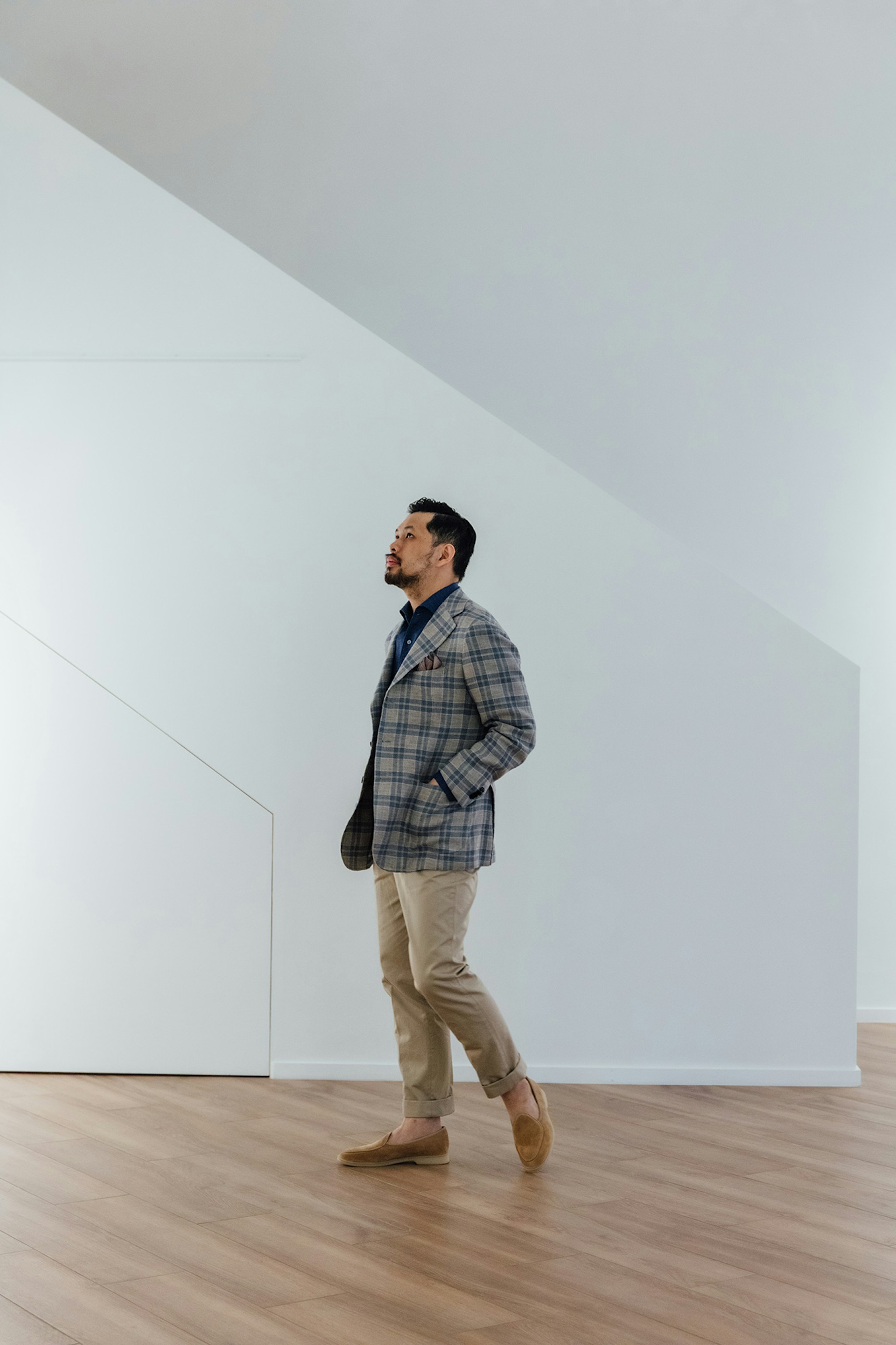 "It's a pleasure getting to know your neighbours. Recently, Opera Gallery, one of the leading international art dealers of the world, opened down the street from us in Central, Hong Kong and we found their space and their pieces on display both moving and inspirational. So much so, we decided to create a lookbook introducing our Spring Summer tailoring amongst these brilliant colours. We are particularly excited this season to be introducing two new jacket models, the single-breasted Florentine-style Model 15 and the double-breasted dartless Model 16." – Co-founder Mark Cho