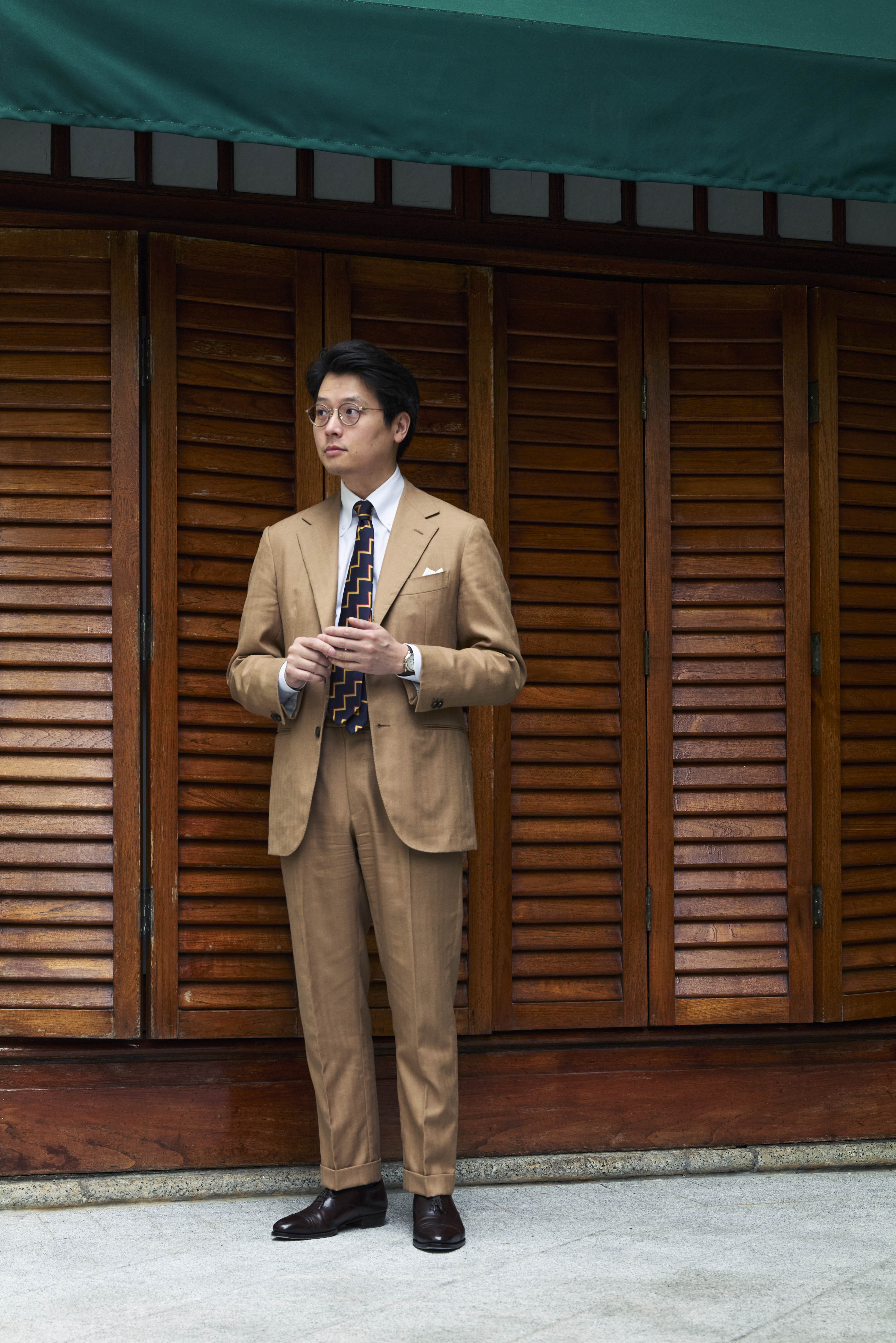 Nagayama-San wearing our Broken Twill Model 12 Sport Coat, Rota Sway Trousers and Duane-S Loafers.