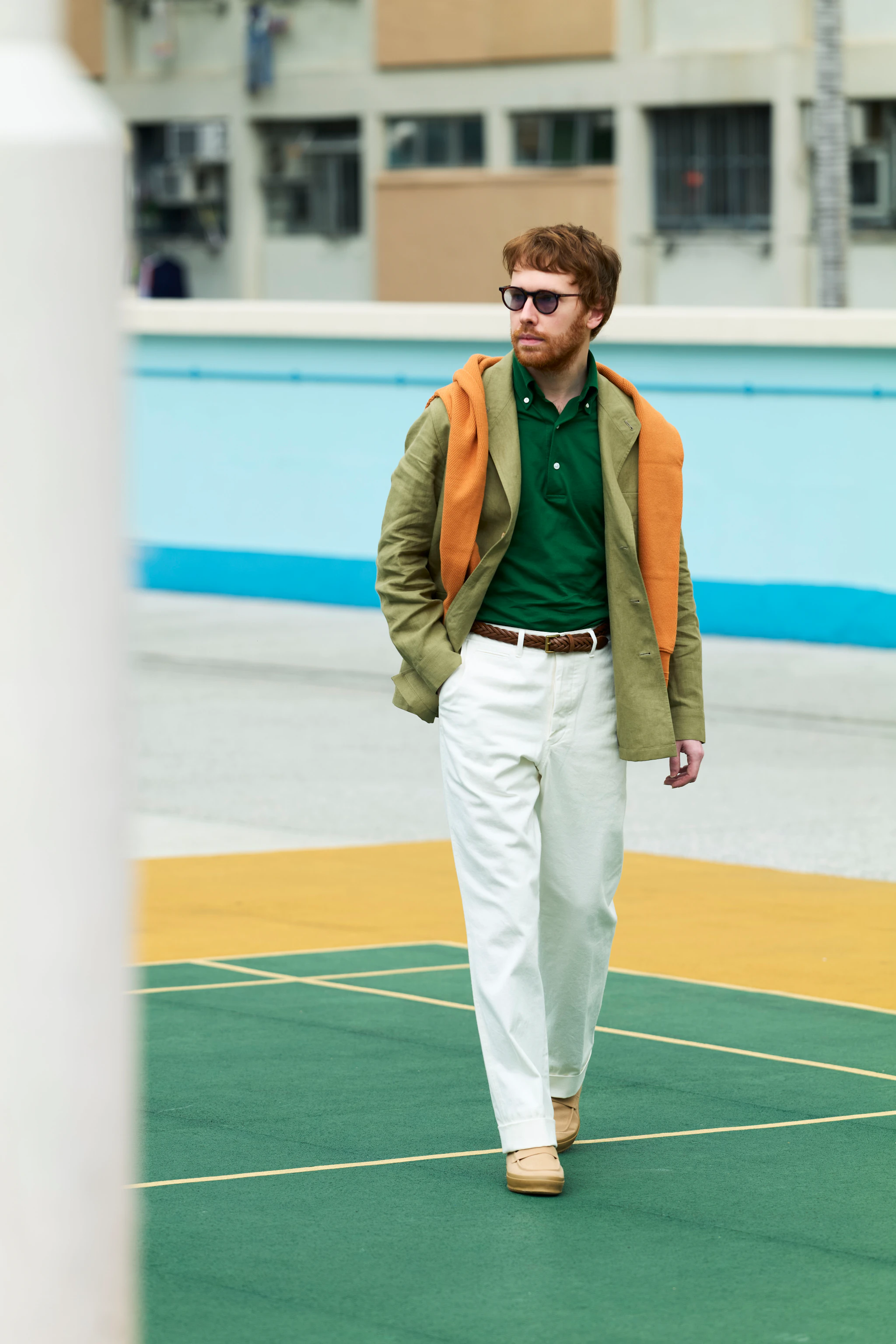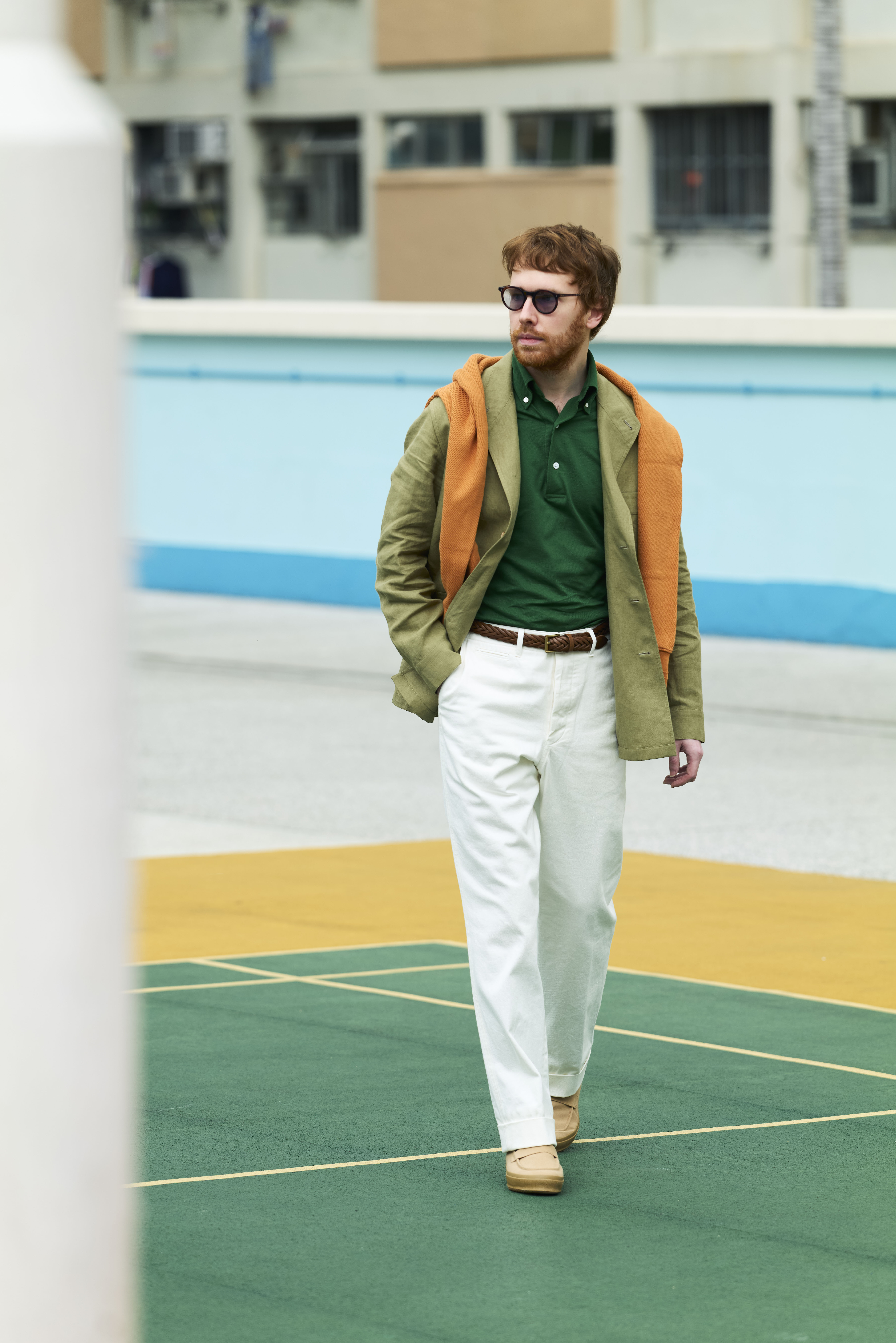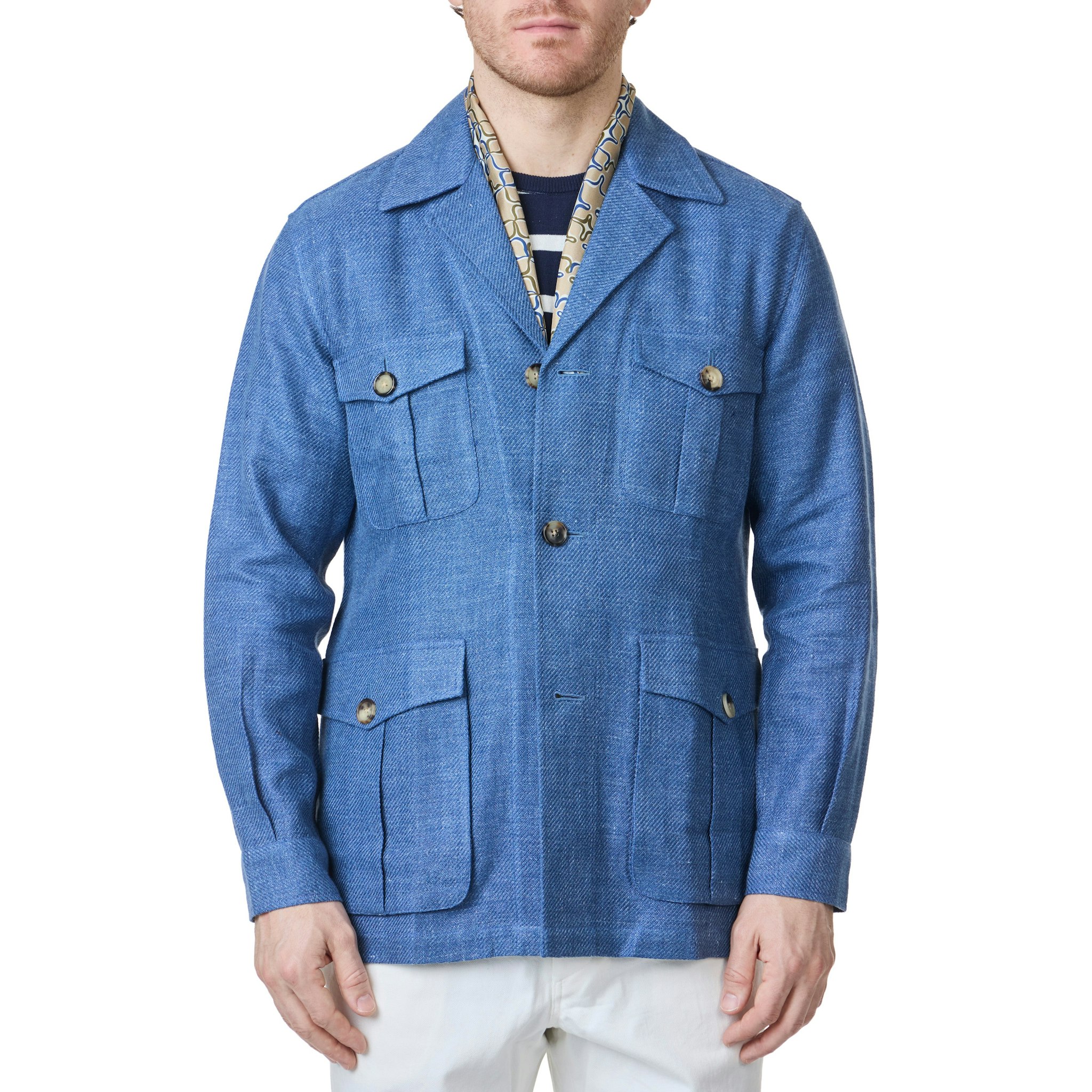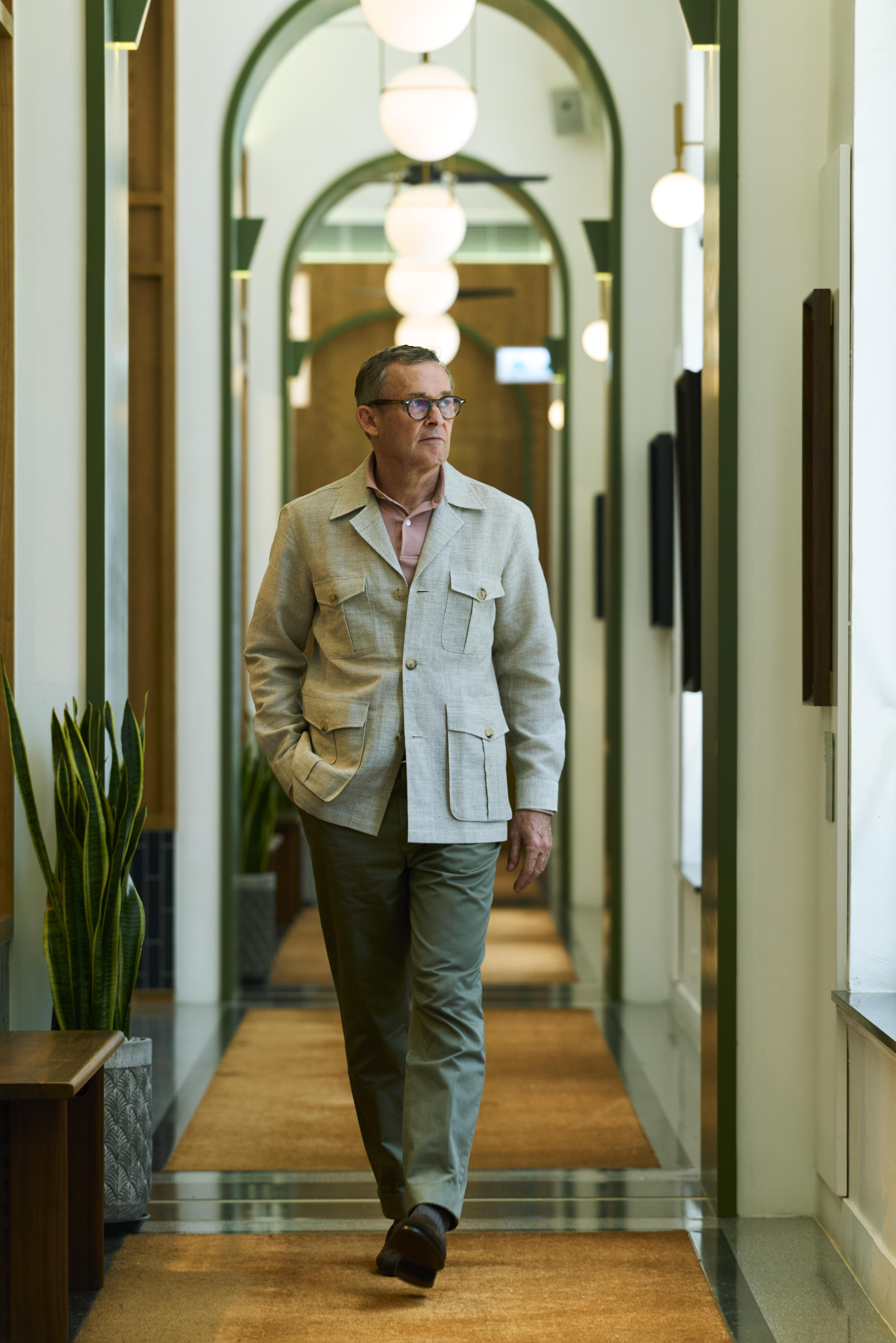 Lorence in a Linen Safari Jacket, Polo, Sport Chinos and Duane-S Loafers.
