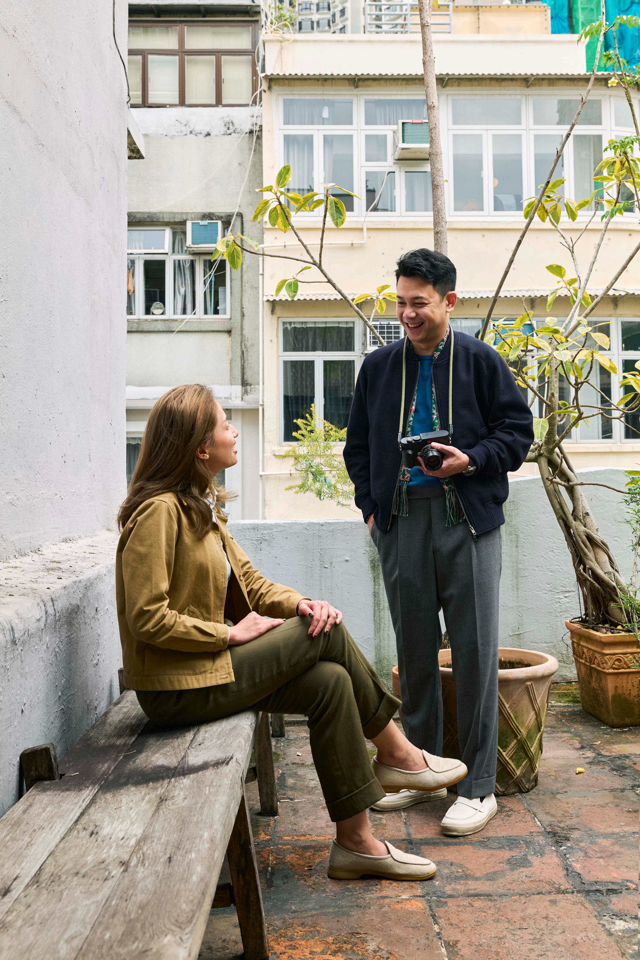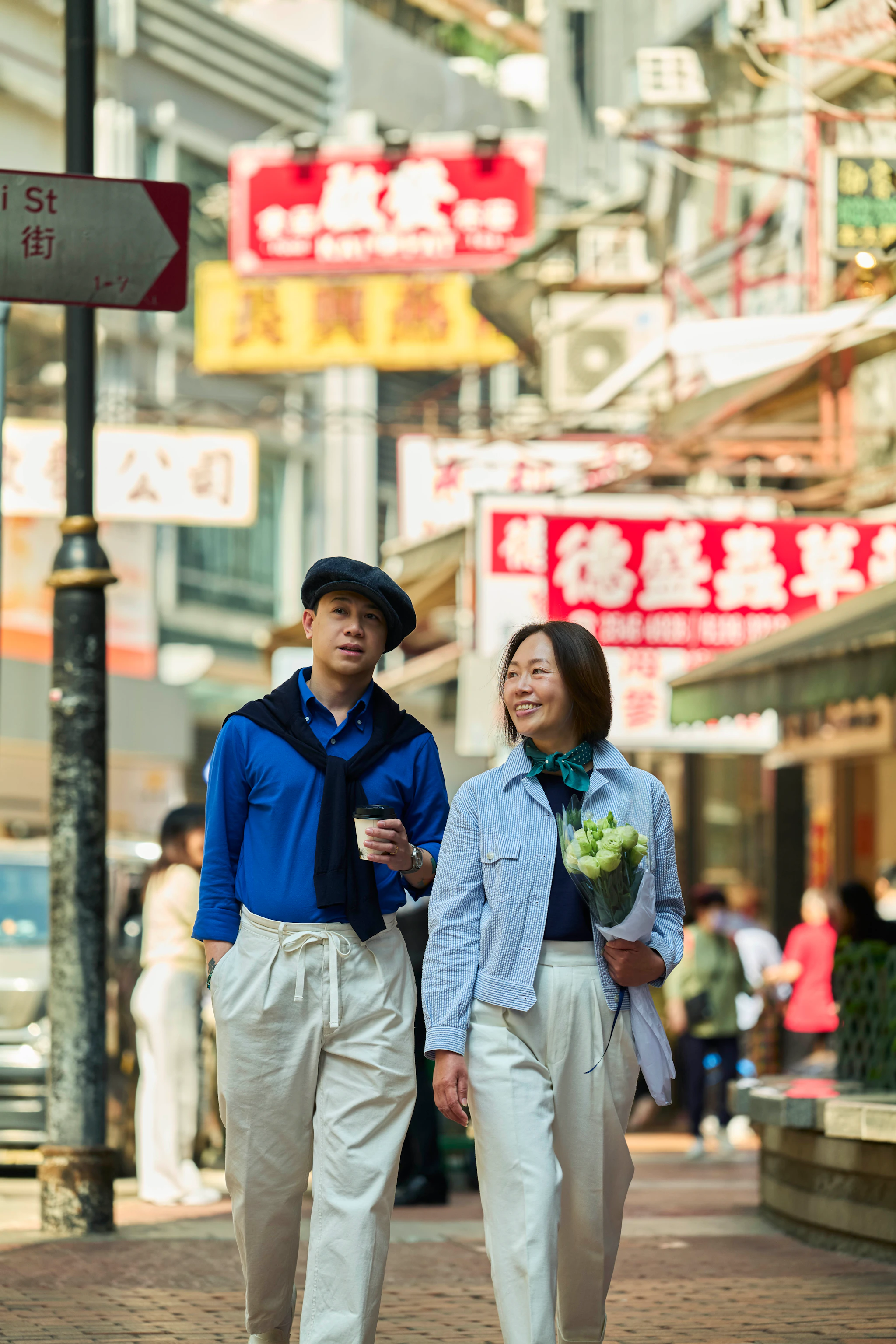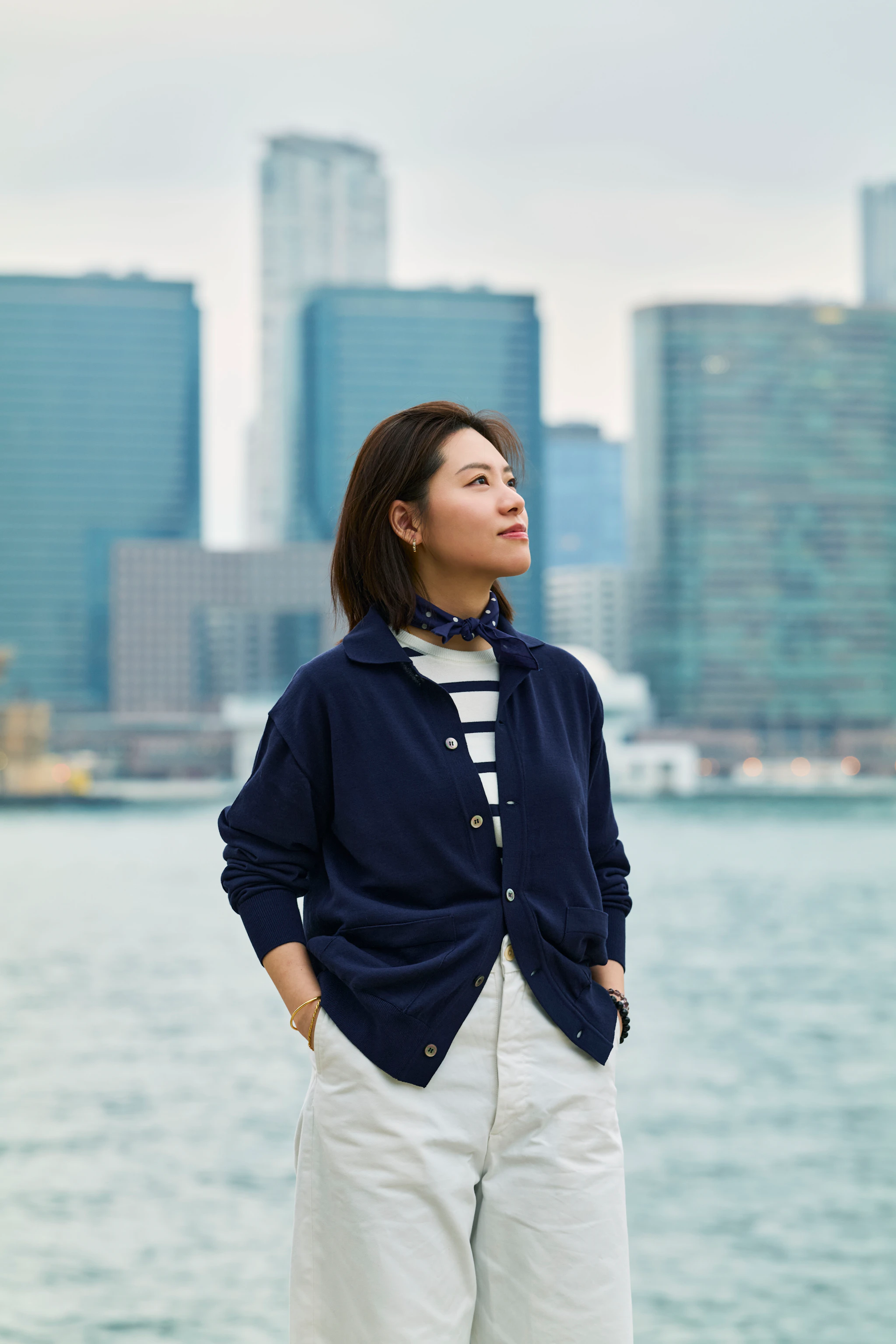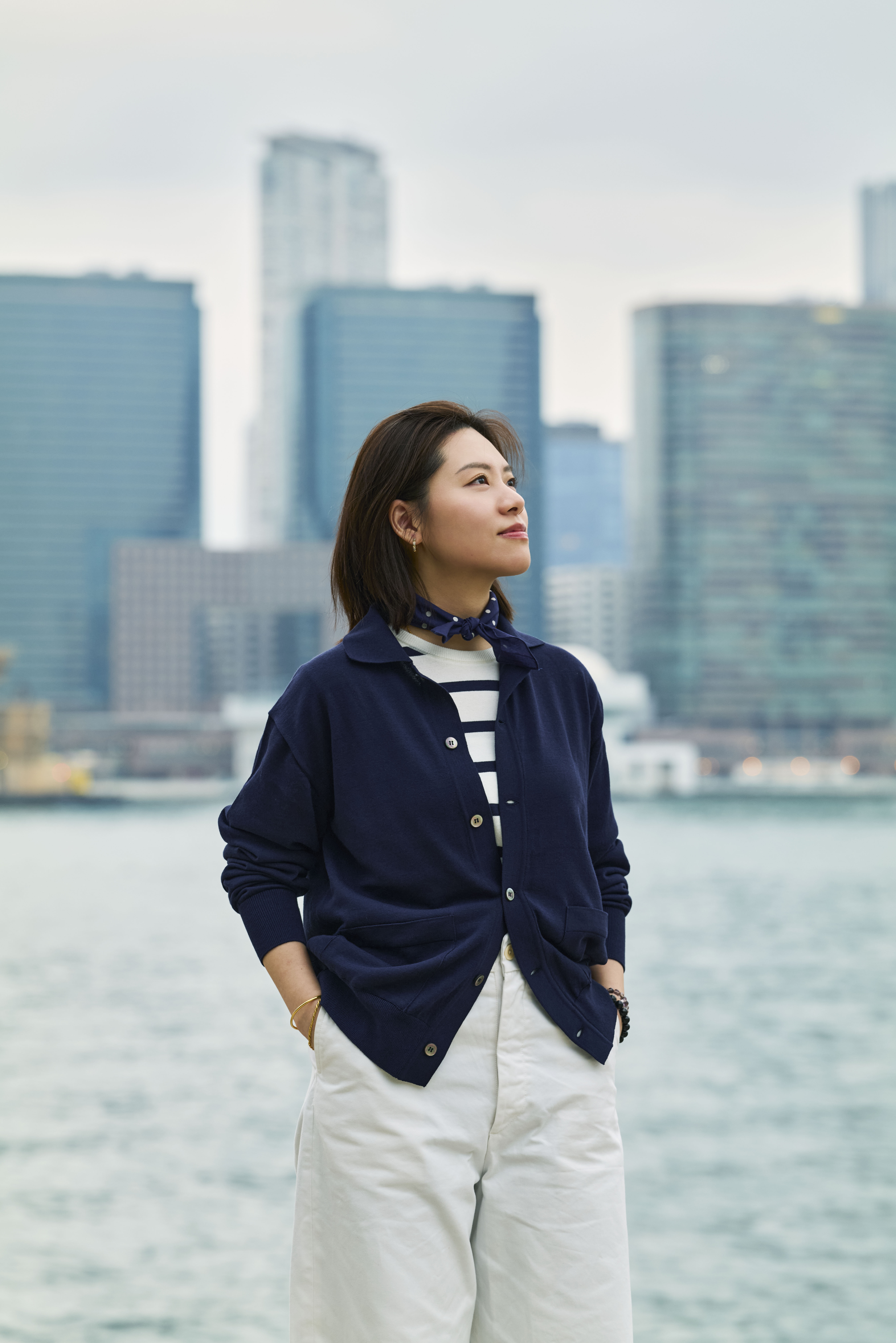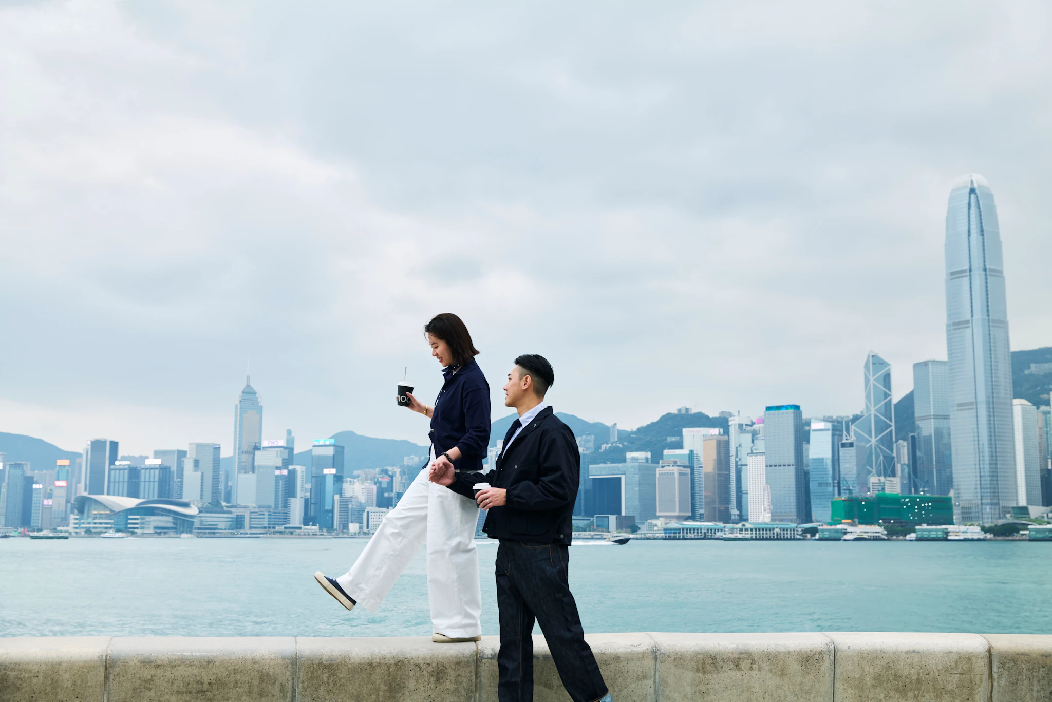 Starry and Keith stroll along the iconic Victoria Harbour, skyline in view, in some Spring/Summer favorites.
