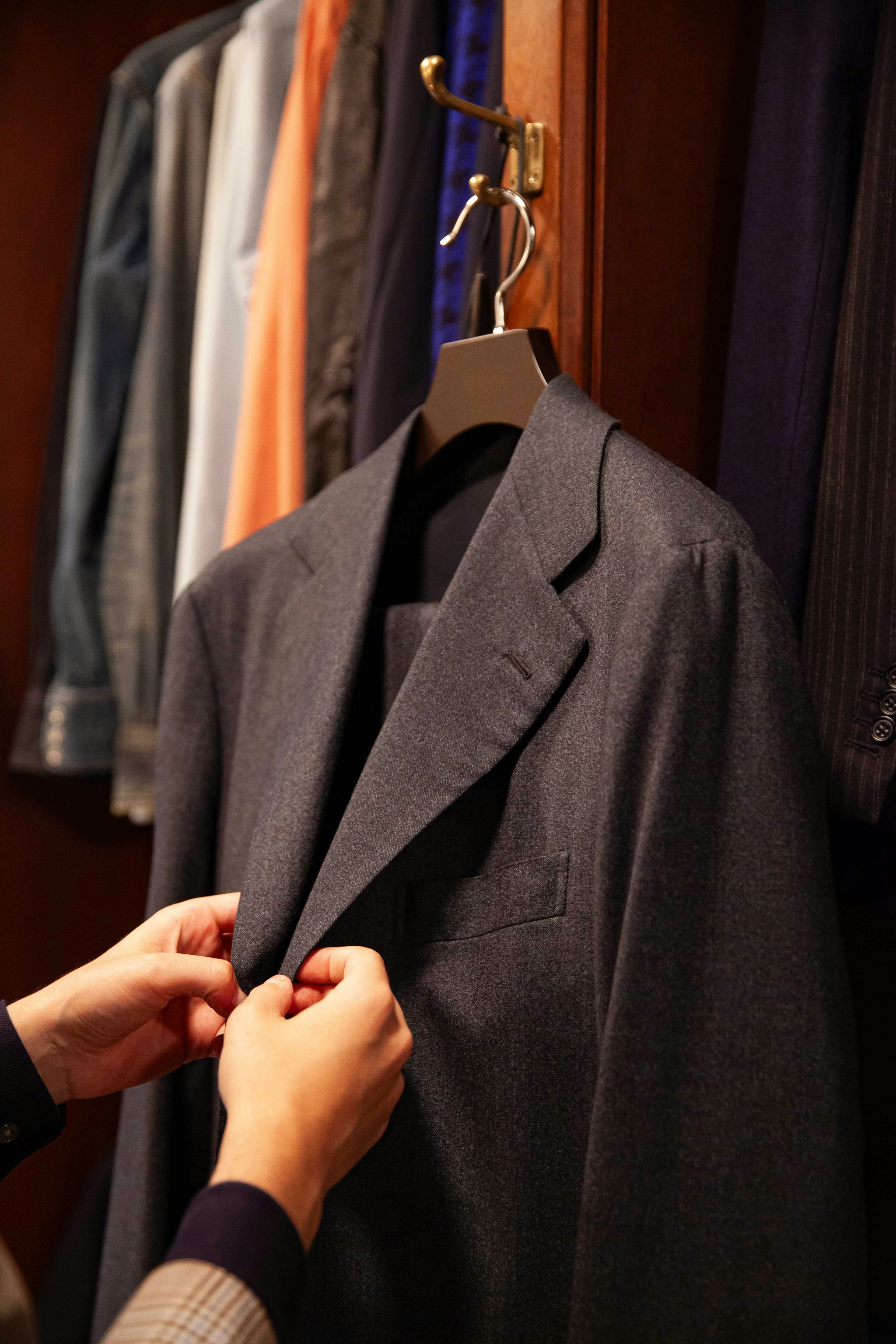 Each hanger is meticulously crafted to provide optimal support for various types of clothing, from the curved shoulders of a bespoke sport coat, to the heaviest of overcoats.