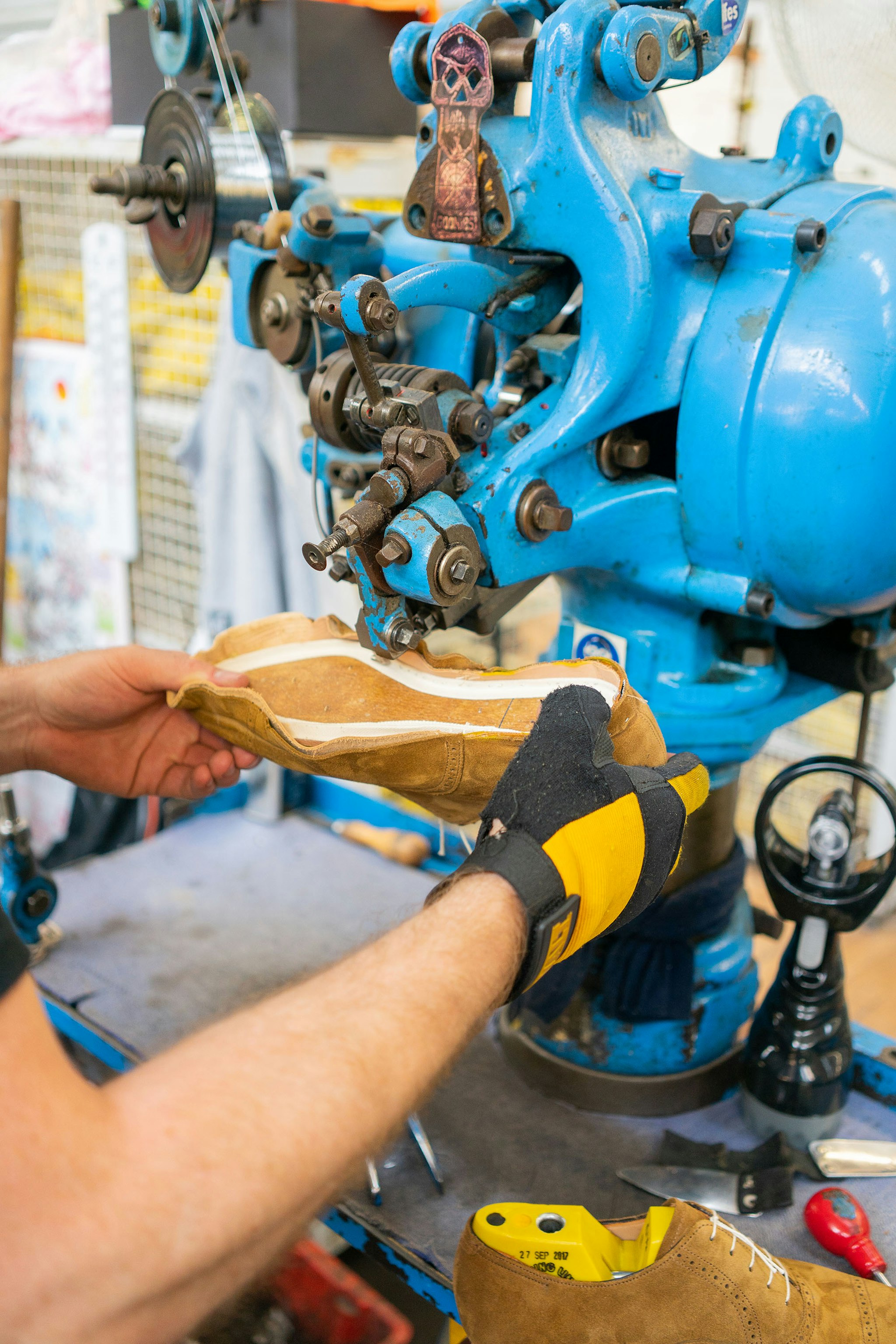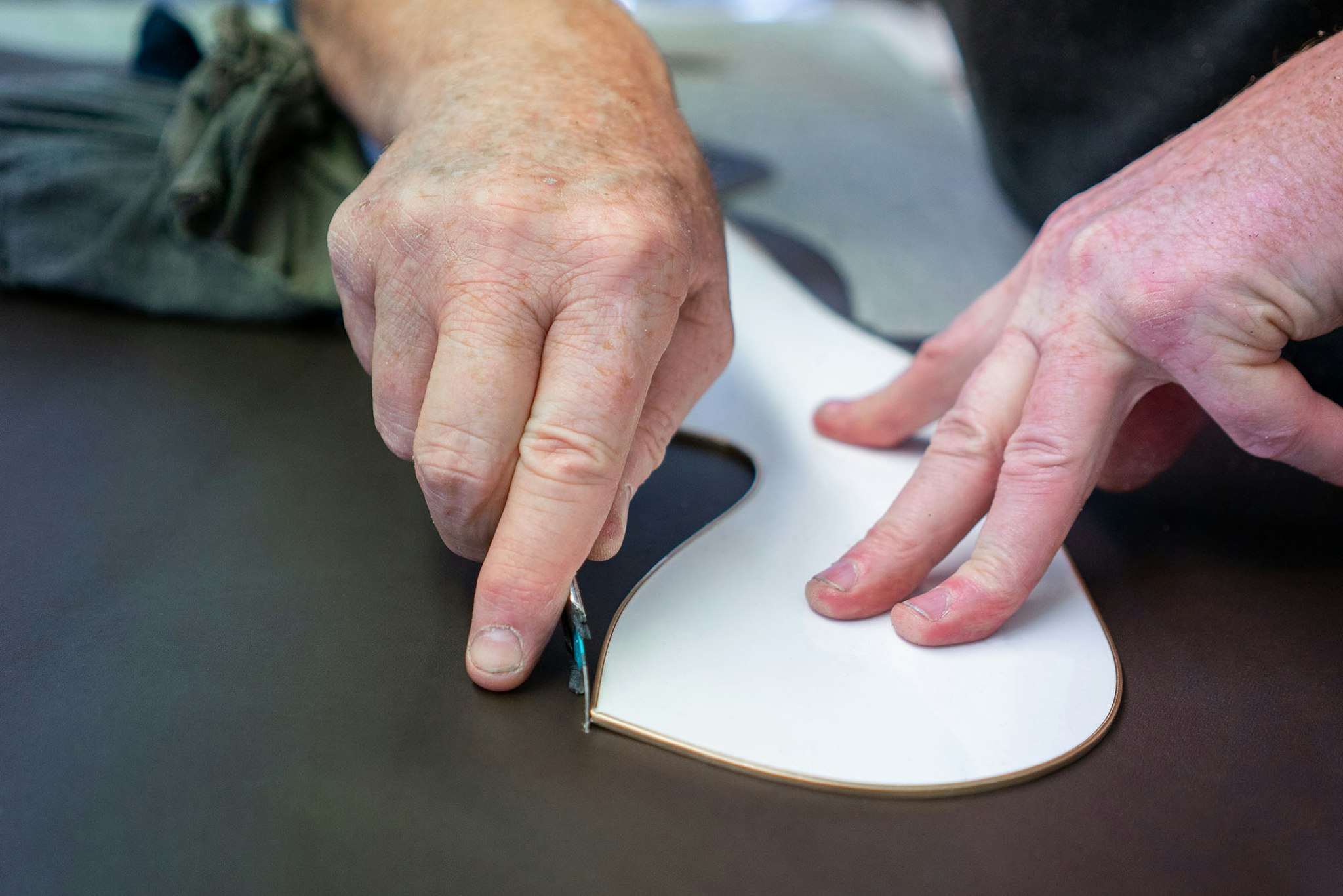 The efforts in manufacturing are undermined without sourcing excellent raw materials. We focus on finding hides that are soft enough to minimise the breaking in period but durable enough to withstand years of use. These leathers are hand cut in Northampton by ‘clickers’, a term for the people in charge of inspecting and cutting leather.