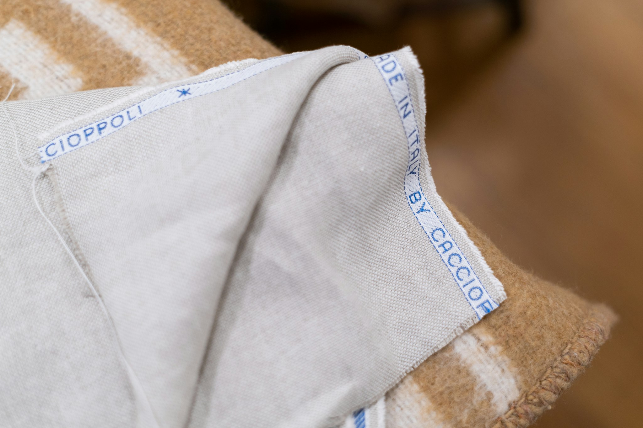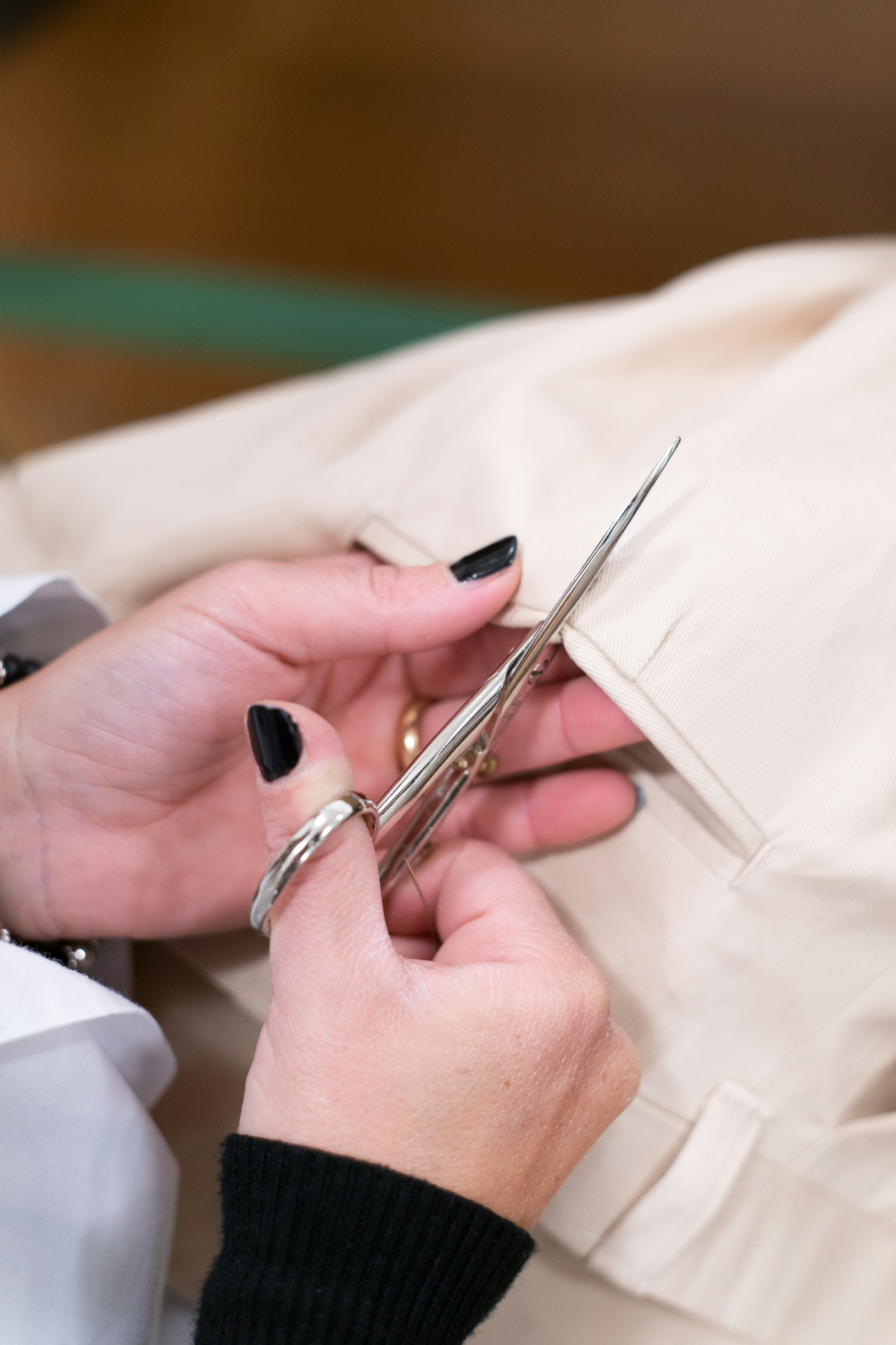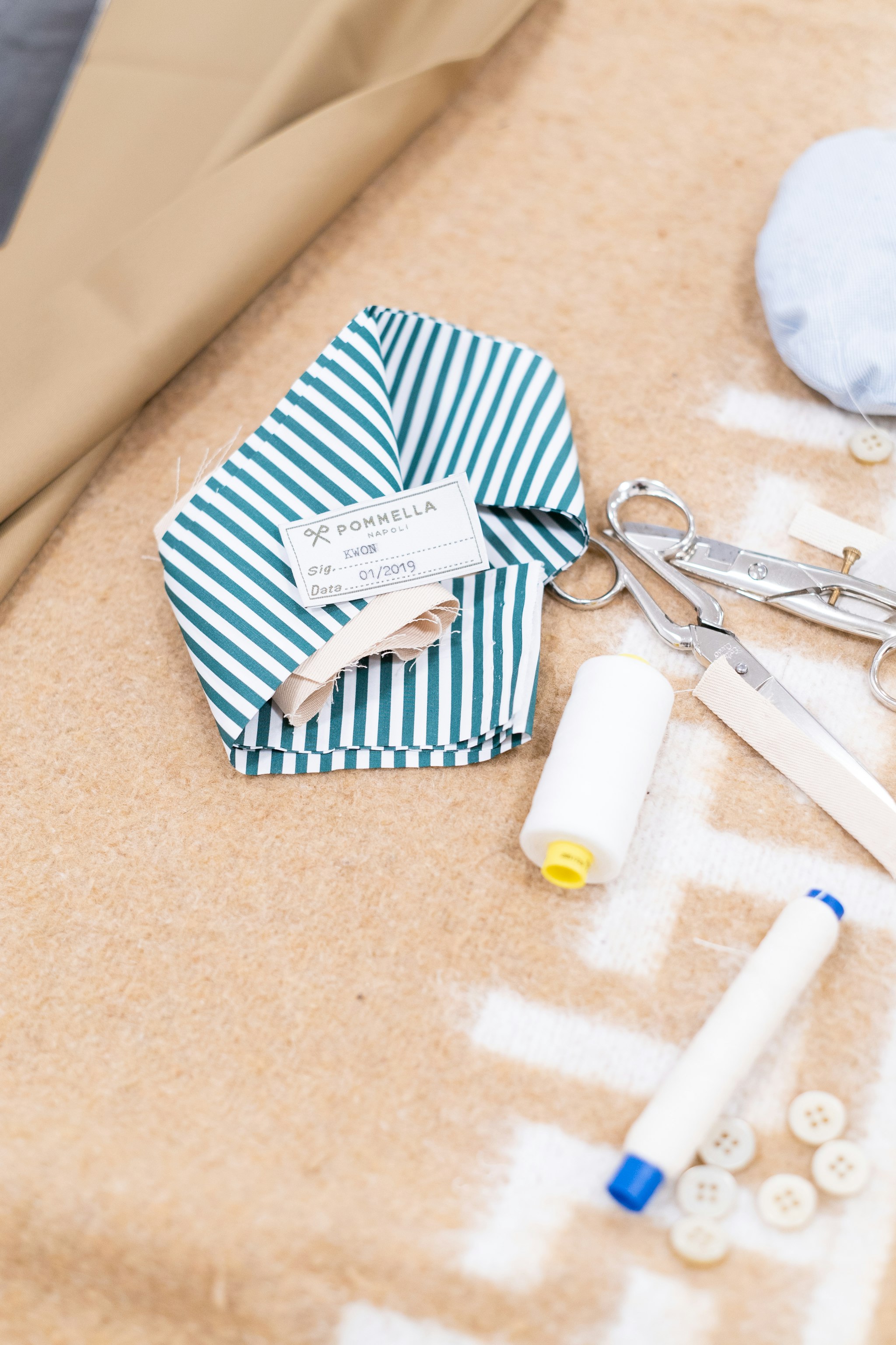 Pommella's signature waistband lining is hand-stitched using Thomas Mason shirting