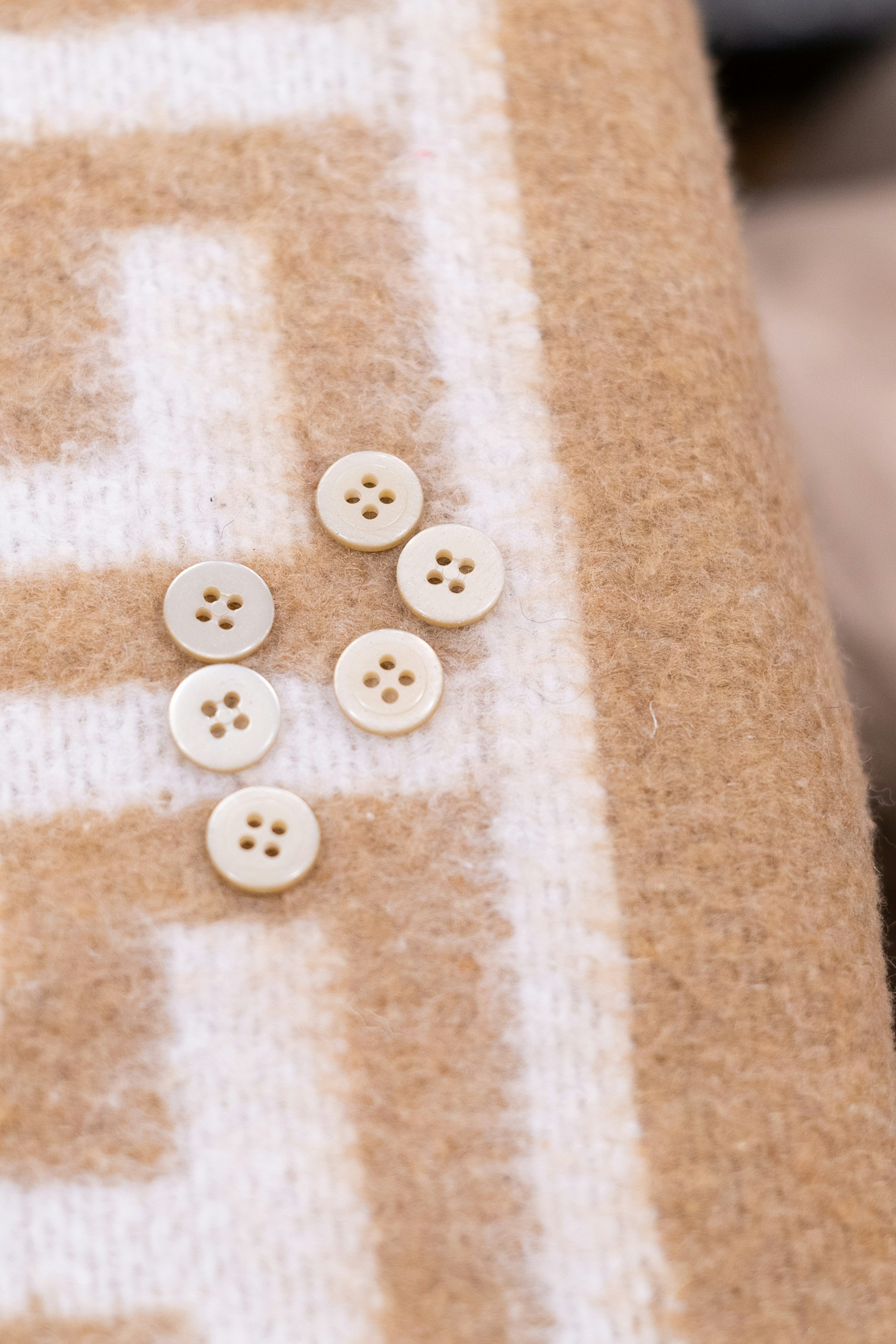 Buttonholes are cut and sewn by hand before the buttons themselves are hand attached