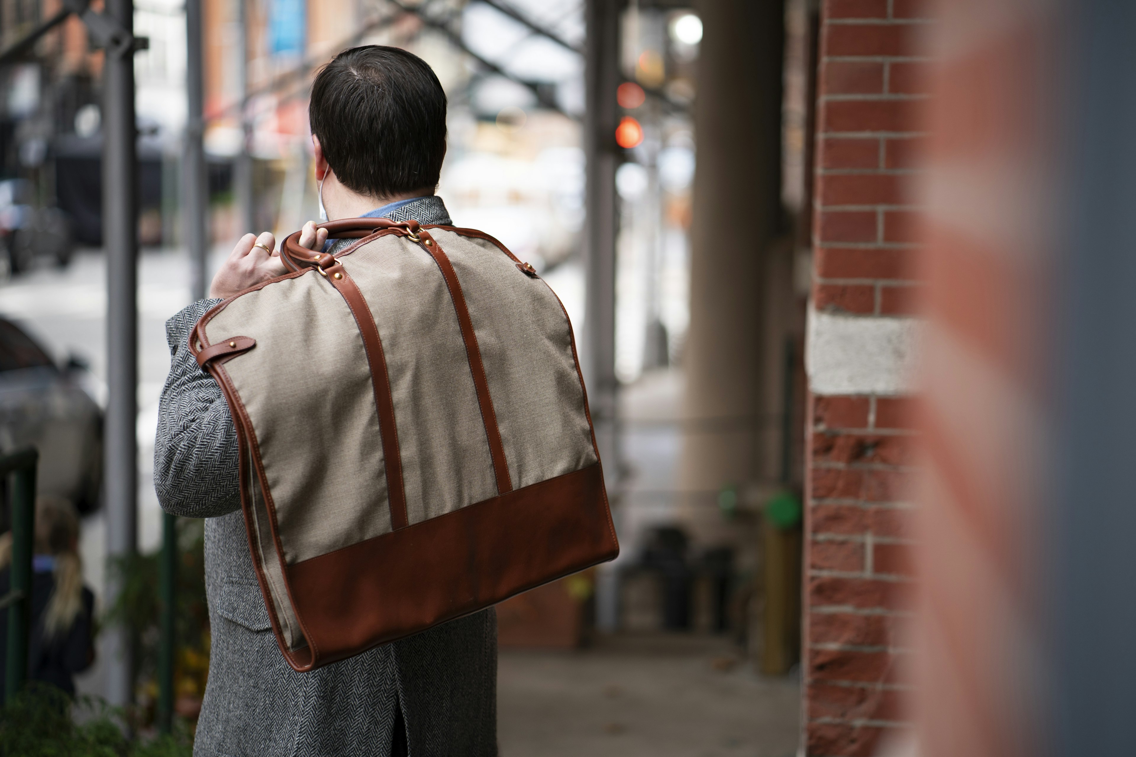 "The sunbrella cloth is sturdy and stain resistant, yet refined. We developed the bag design in collaboration with The Armoury and it soon grew into a mini collection that we’re very proud of. This particular color is is perfect choice for casual or business travel.“
