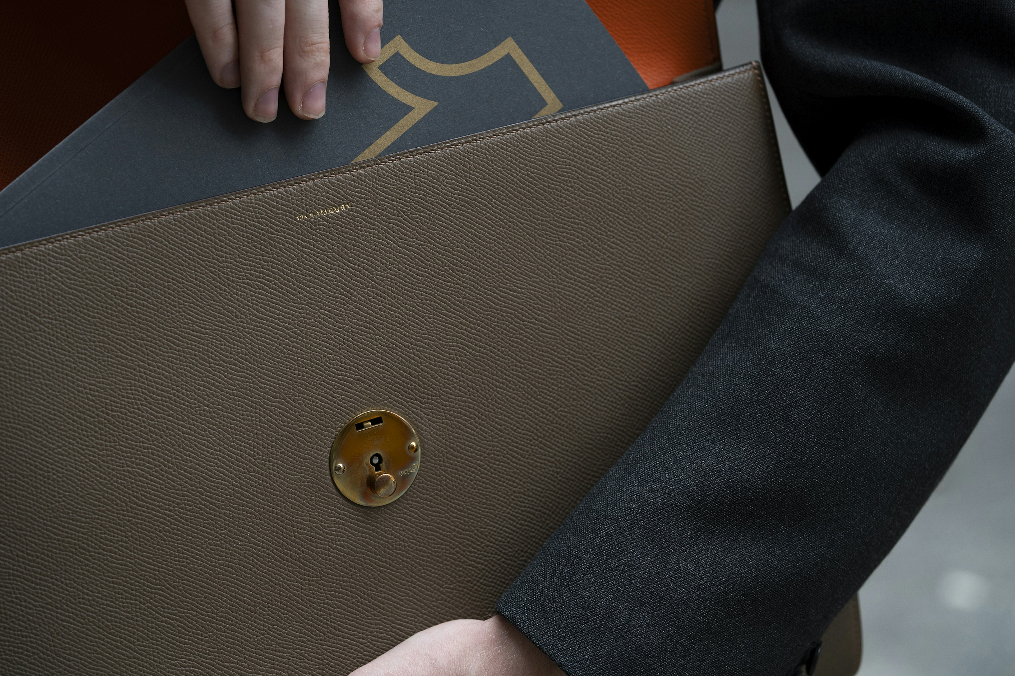 "The Winston II was developed at the suggestion of a good friend of The Armoury. This gentleman always preferred to have a notebook and a pen handy to record and develop his thoughts. The Winston II allows for a small sized moleskine notebook to be carried discreetly alongside cash and credit cards, a perfect gift for someone on the go."