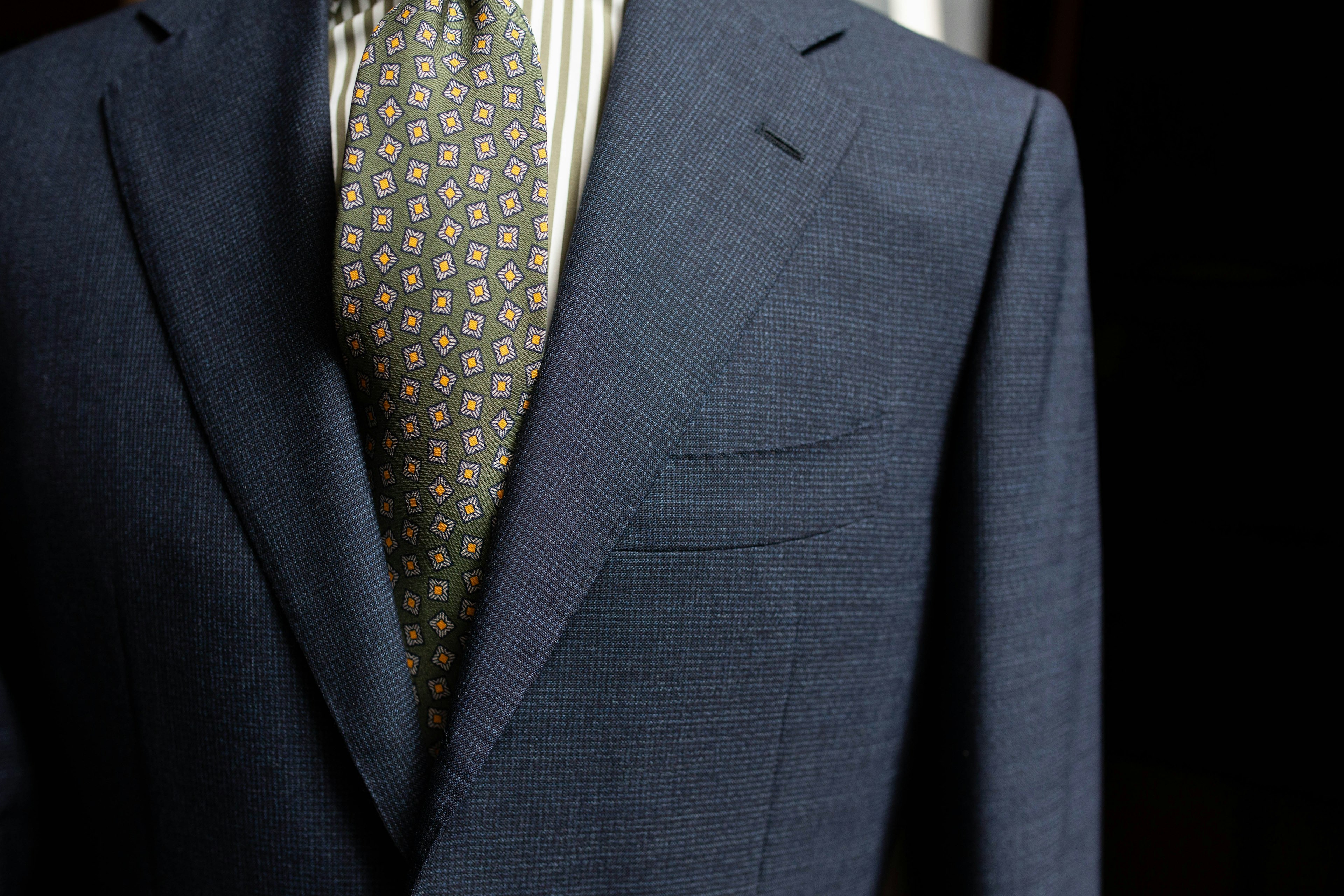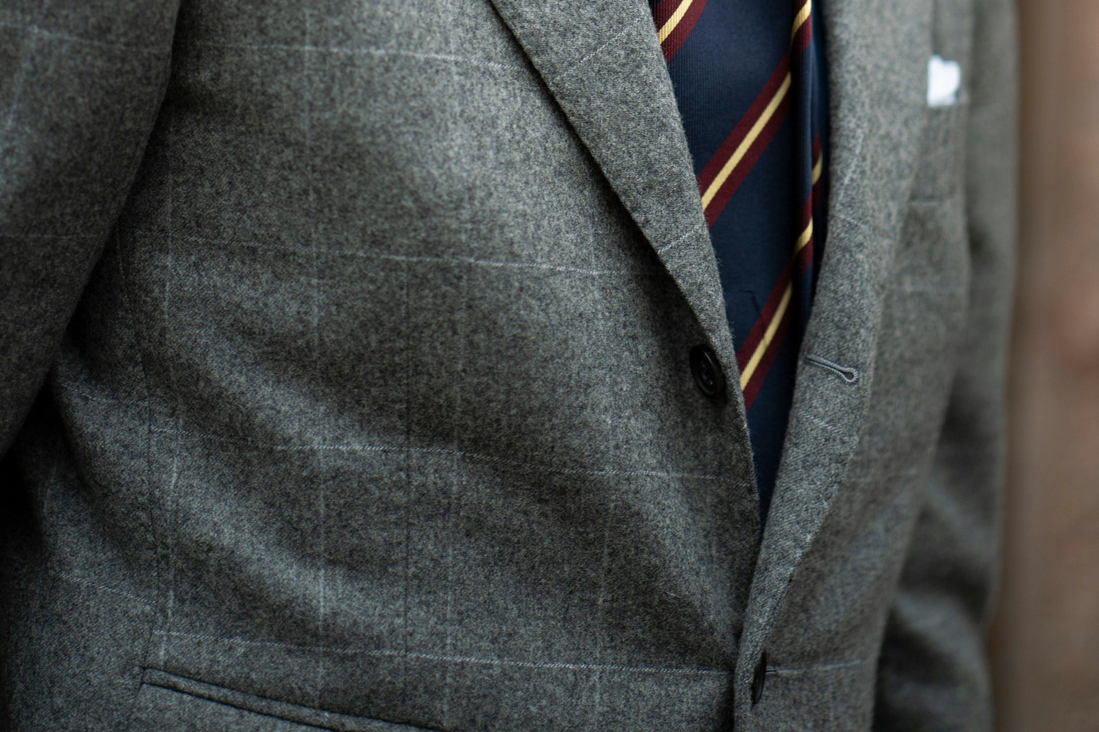 As mentioned above, The Model 1 features a slim pad which emphasizes the shoulder line. It also features an extended shoulder, additional canvas which it cut slightly longer to extend from the sleeve head. This flattering effect provides a clean transition from sleeve to shoulder and is typical of many northern Italian style jackets such as those of Musella Dembech.