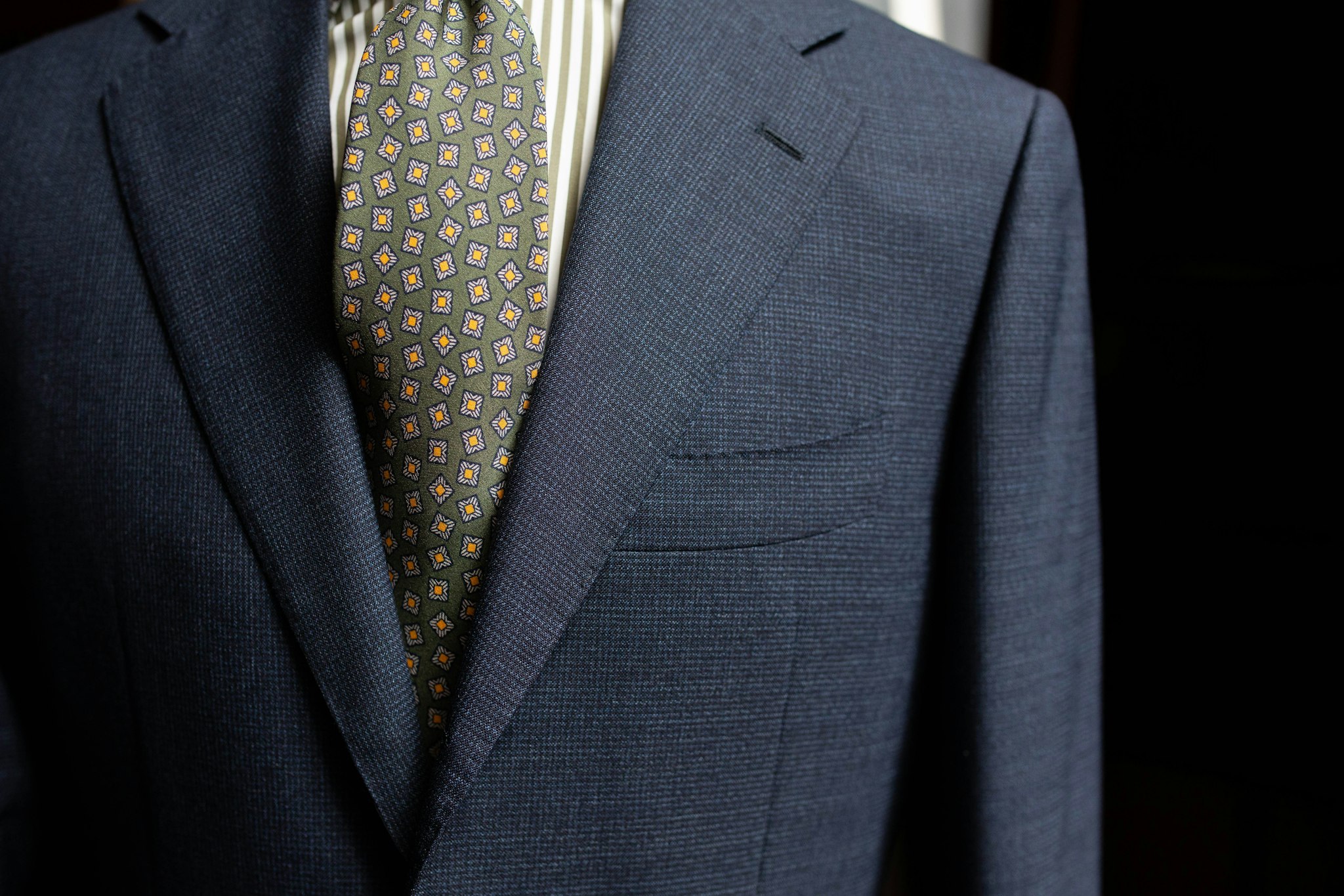 As mentioned above, The Model 1 features a slim pad which emphasizes the shoulder line. It also features an extended shoulder, additional canvas which it cut slightly longer to extend from the sleeve head. This flattering effect provides a clean transition from sleeve to shoulder and is typical of many northern Italian style jackets such as those of Musella Dembech.