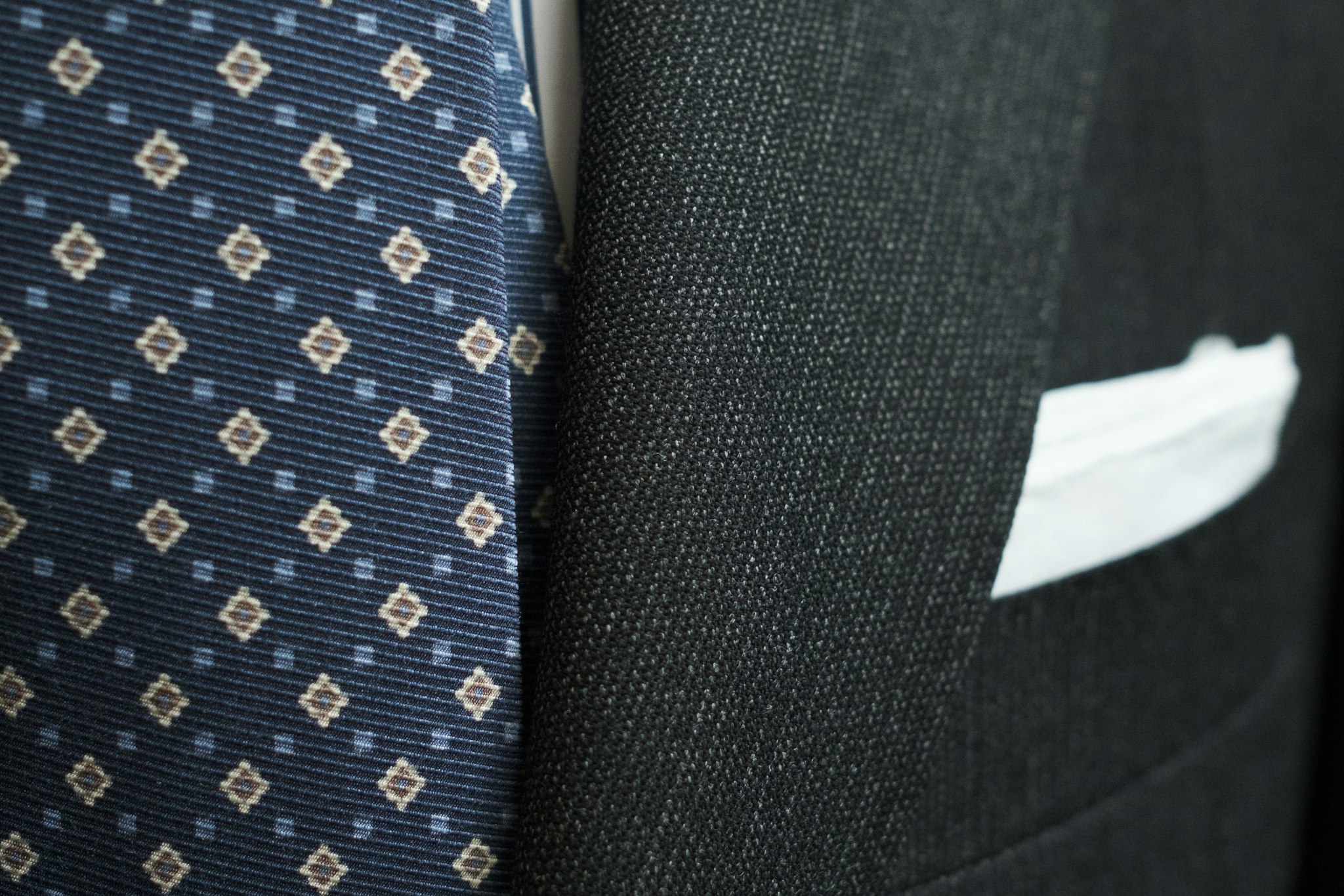 The chest pocket is cut straight, contrasting those of the softer neapolitan makers, fitting in with northern Italian tailors. The pocket is angled downwards, and lowered to match the slightly lowered gorge line.