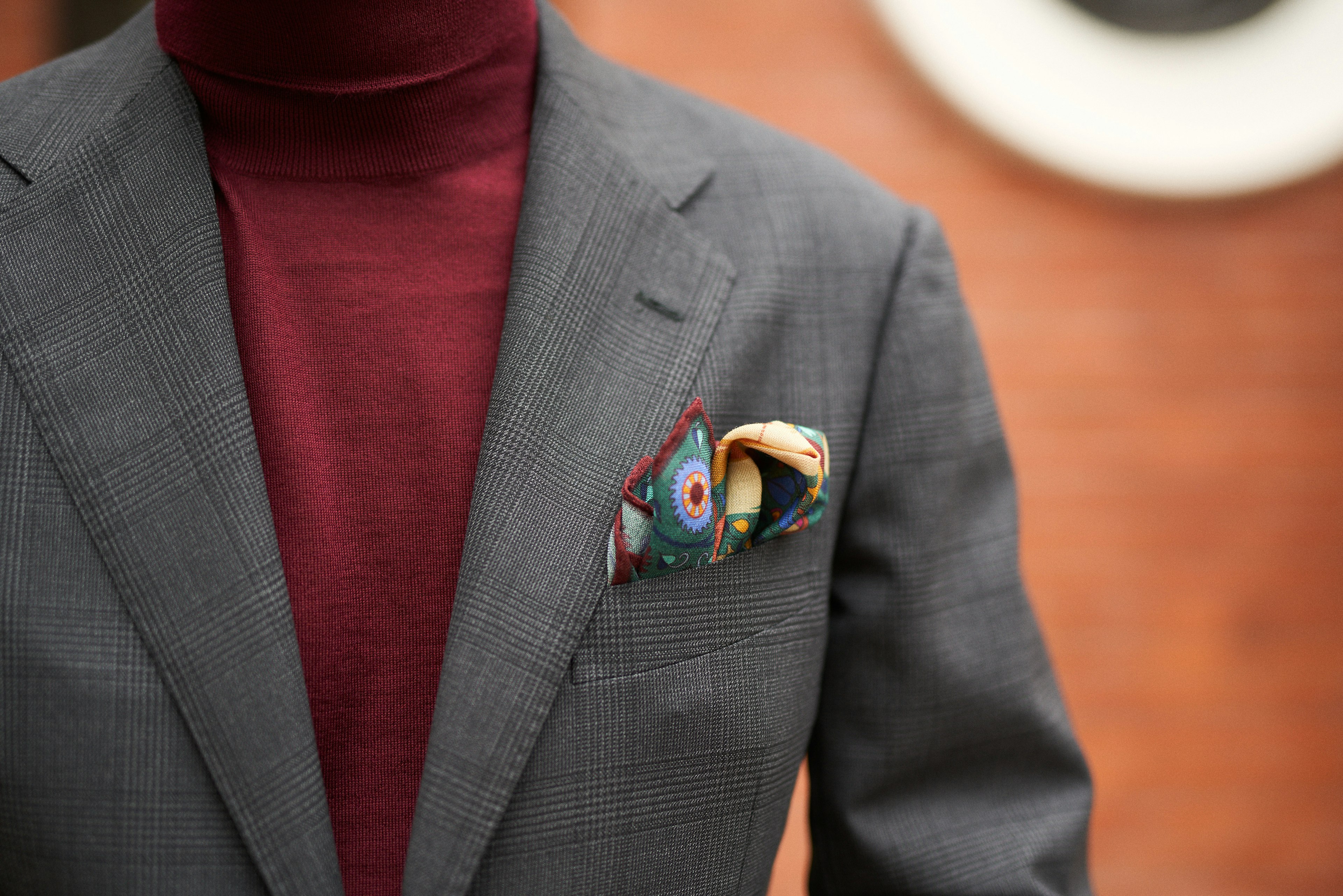 The chest pocket is cut straight, contrasting those of the softer neapolitan makers, fitting in with Florentine tailors. The pocket is angled downwards, and lowered to match the slightly lowered gorge line.