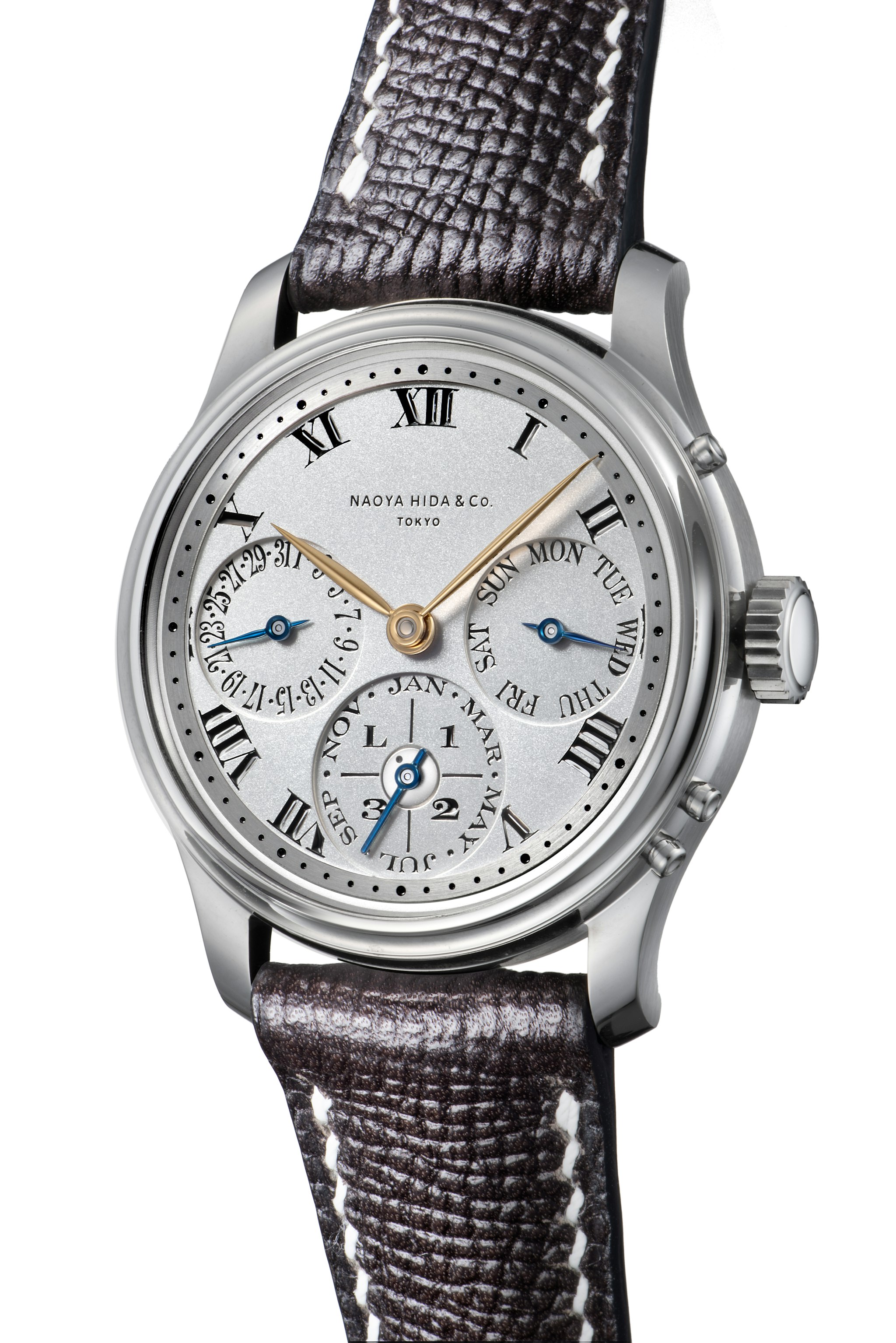 NH TYPE 6A is Naoya Hida & Co.'s dress watch equipped with a perpetual calendar. The roman numerals on the dial, as well as the sub-dials indicating the day, date, month and leap year, are all hand-engraved by the engraver Keisuke Kano. For the first time, sterling silver is used as the dial.