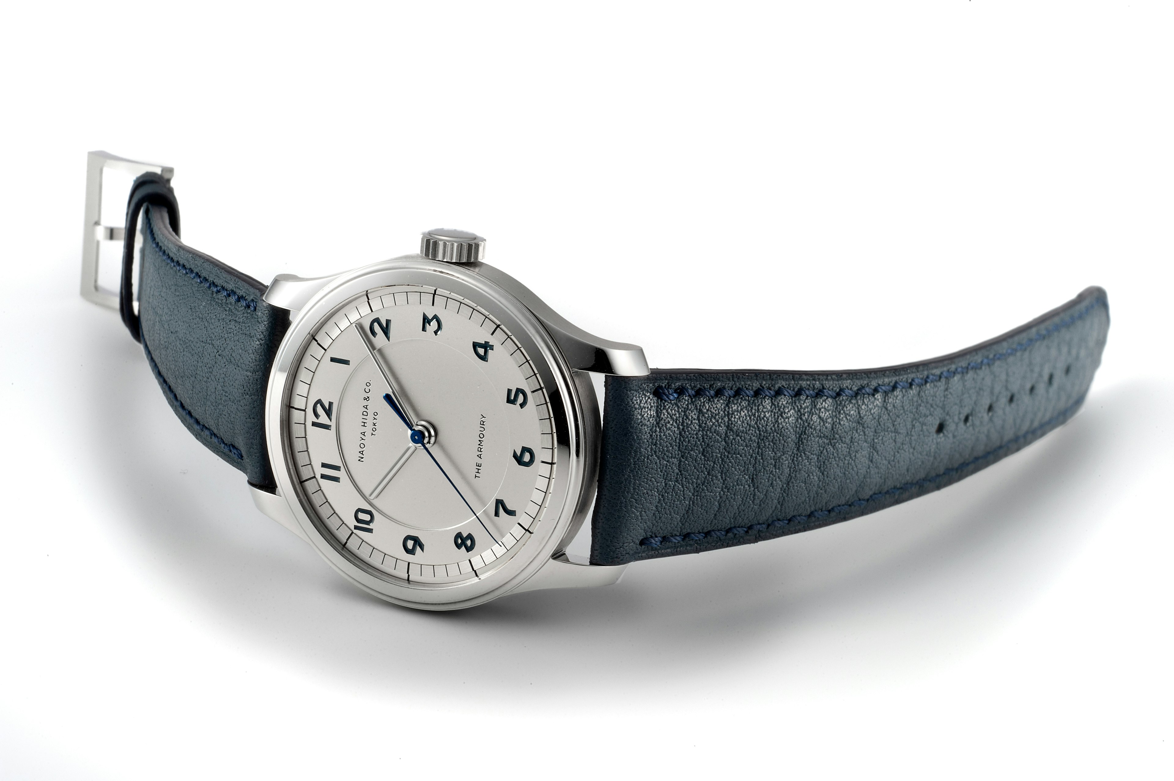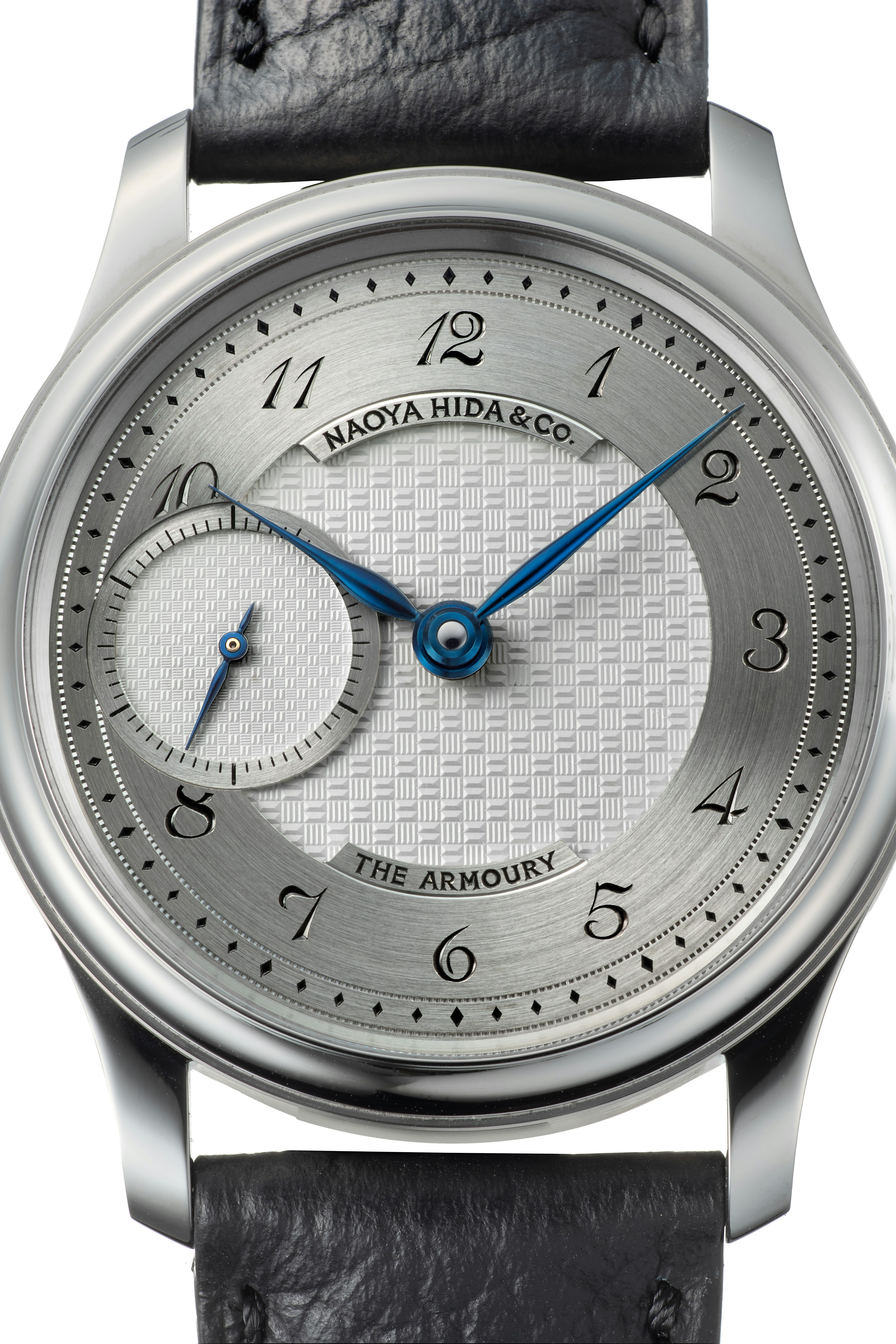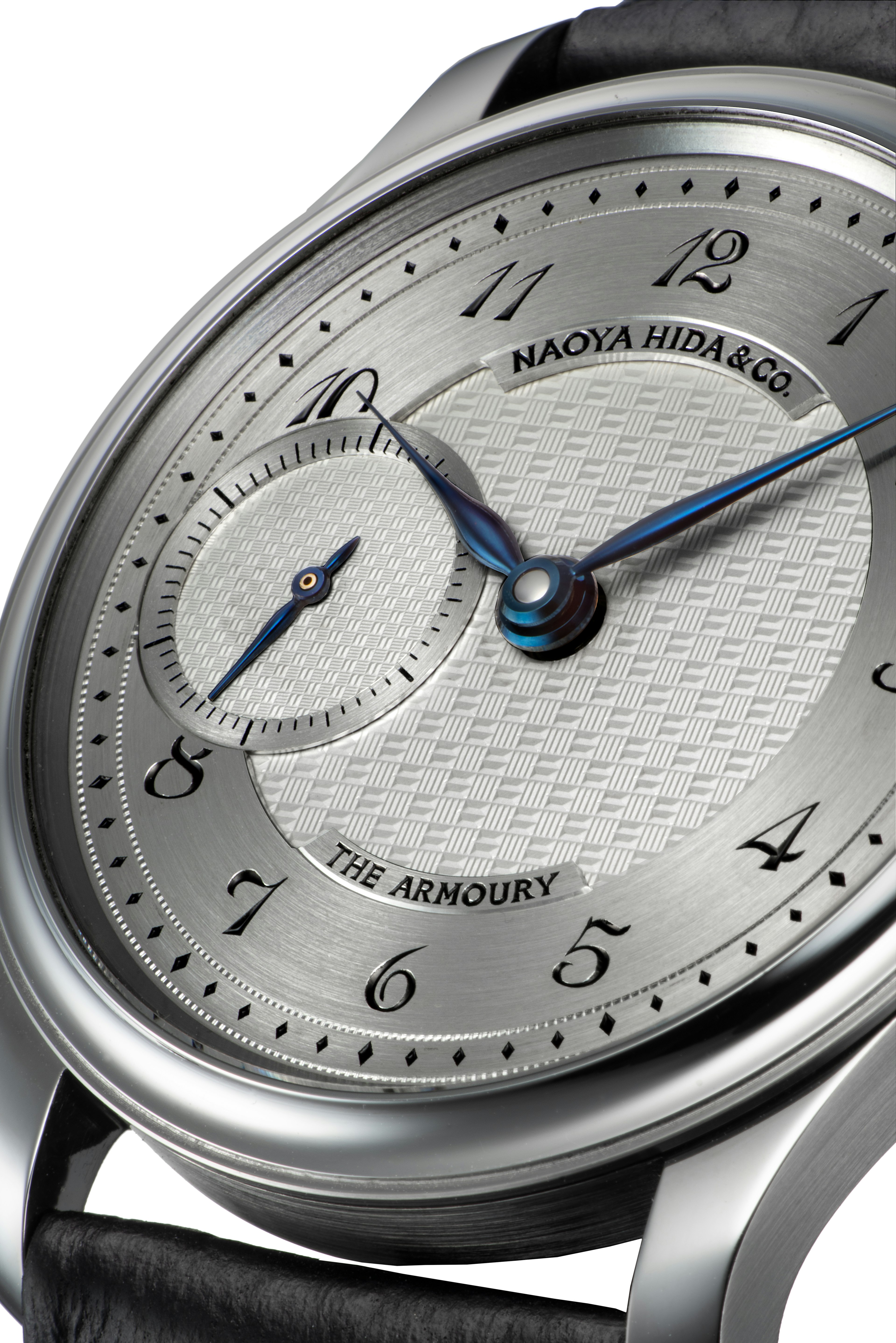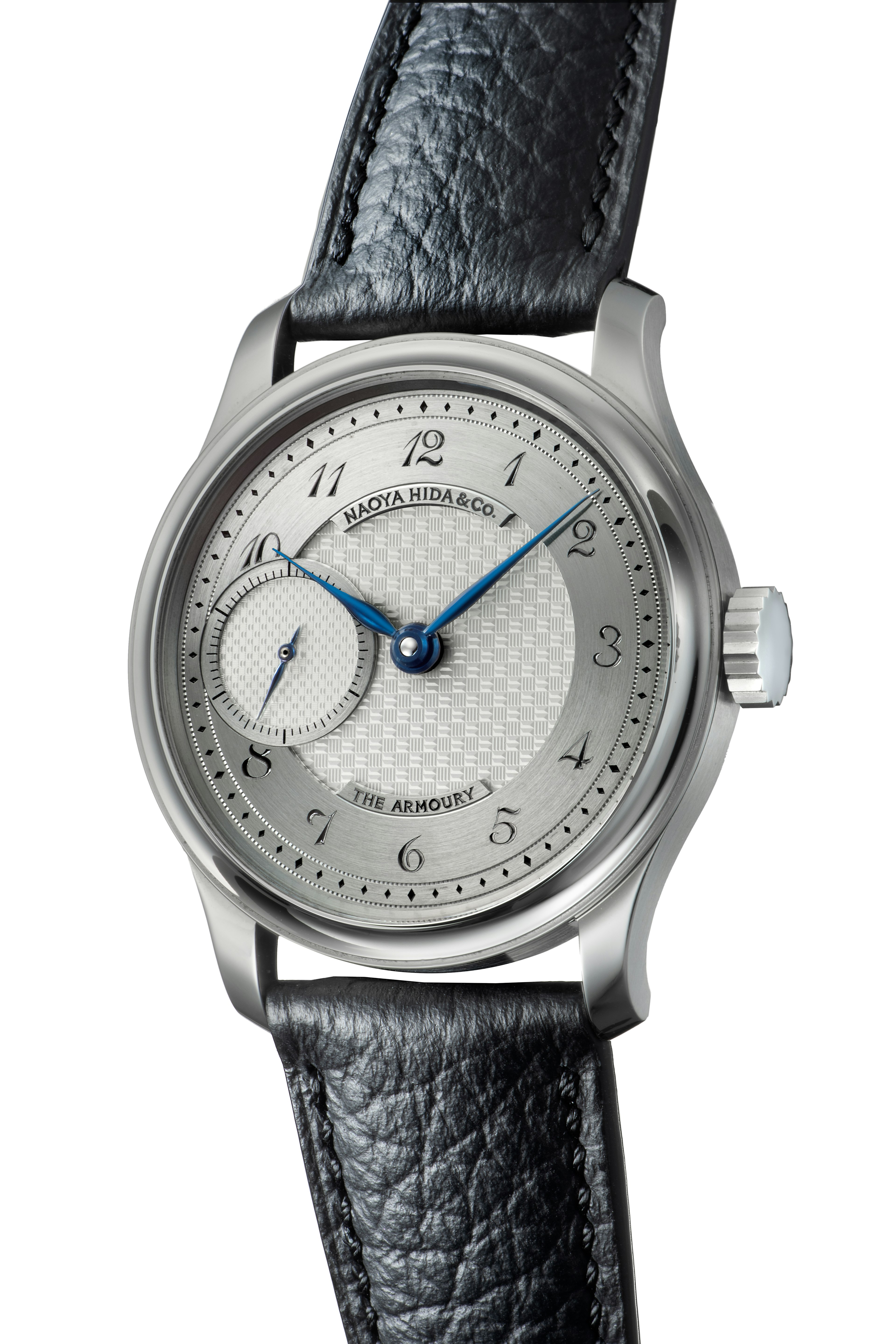 This watch is a collaboration between Naoya Hida & Co., The Armoury and J.N. Shapiro, showcasing the art of American guilloché dial-making at the highest level. Based on a classically inspired design, the watch features a sterling silver dial with a hand-cut guilloché pattern by J.N. Shapiro, along with hand-engraved logos and Breguet-style Arabic numerals for a refined, artisanal finish.