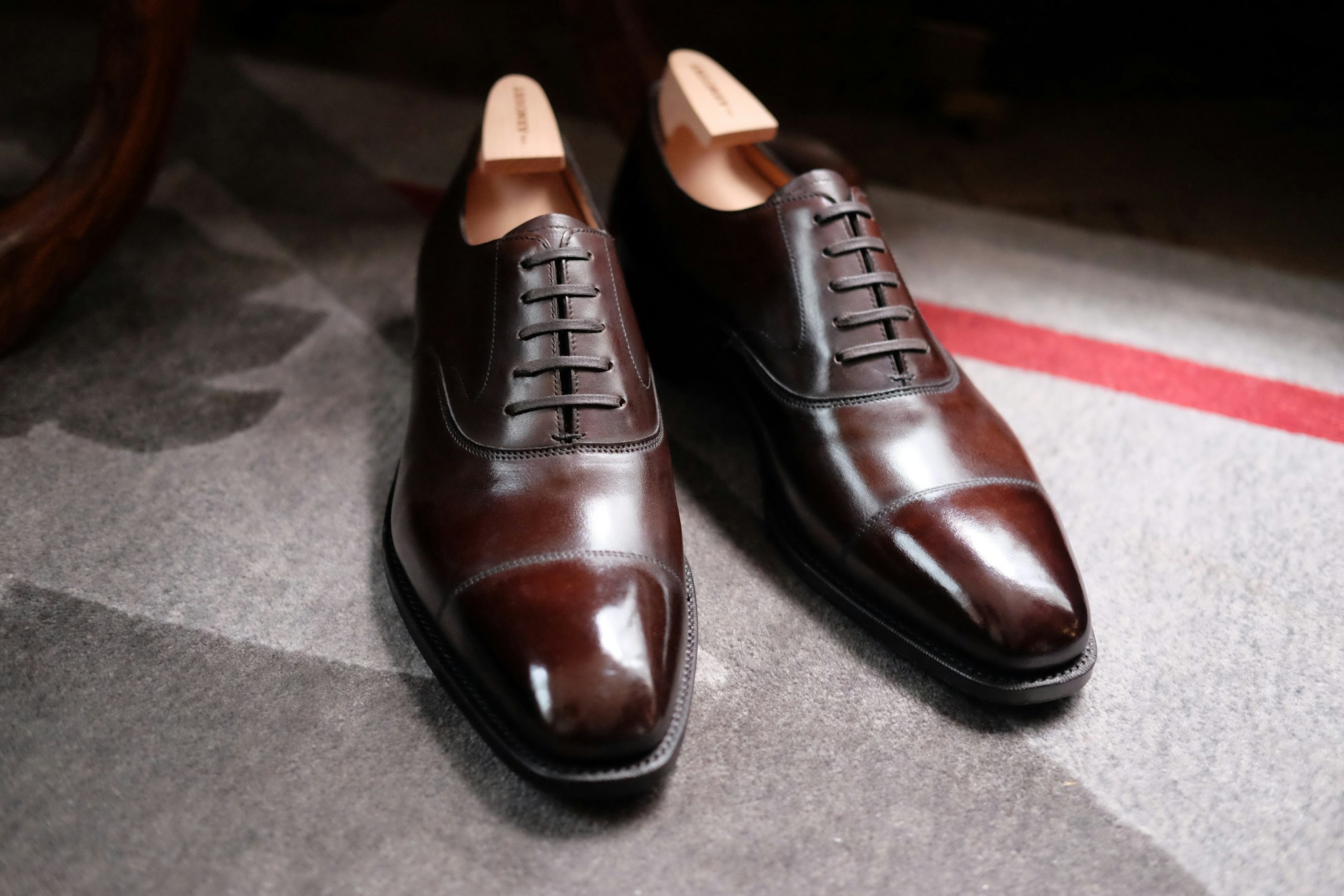 A black calf Oxford is essential. It greatly compliments grey trousers with navy sport coats or suits. For those looking for a casual option other than suede we recommend the mocha calf.