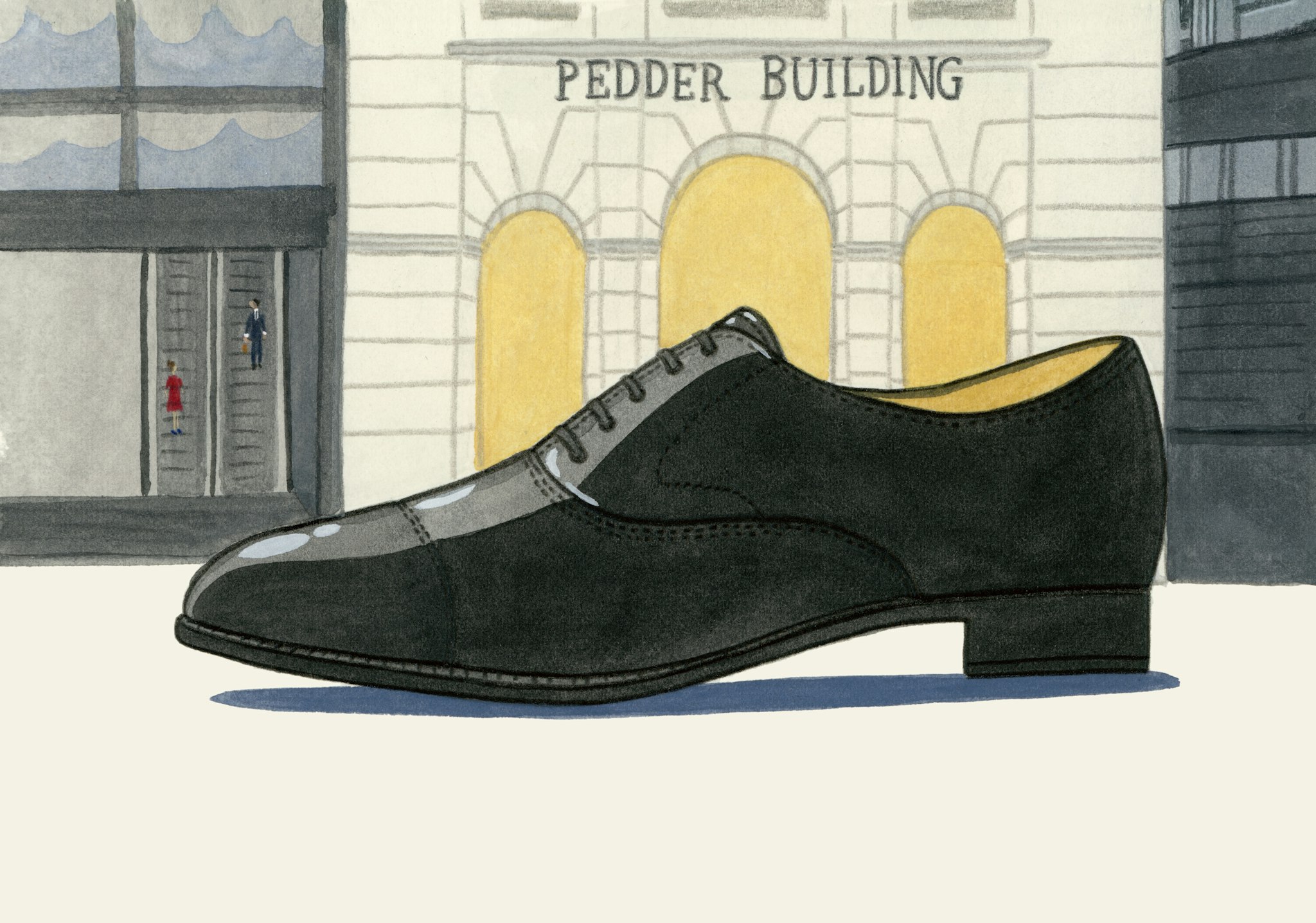 Our friend Mr. Slowboy illustrated our shoebox labels. Our shoe models are named after special landmarks in Hong Kong or New York, the home of The Armoury, the illustrations show those places on the outside of the box.