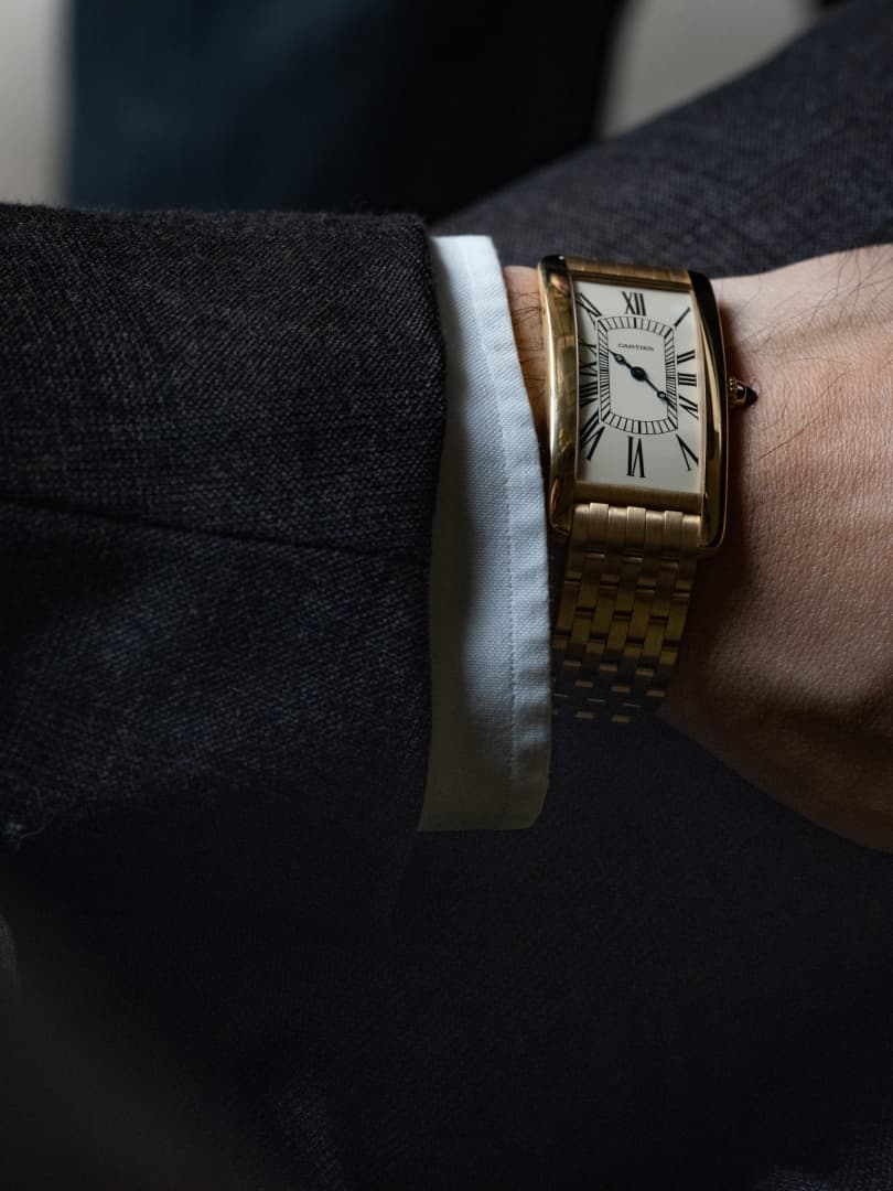 Much like the tactile joy of a fine bespoke cashmere coat, a solid gold bracelet made to your wrist size is the ultimate way to enjoy your Cartier Tank.
