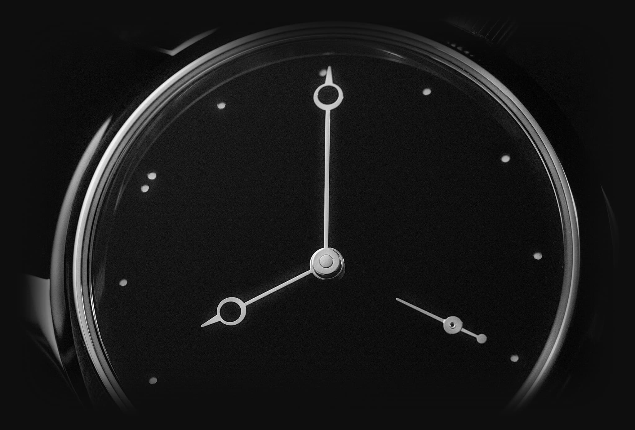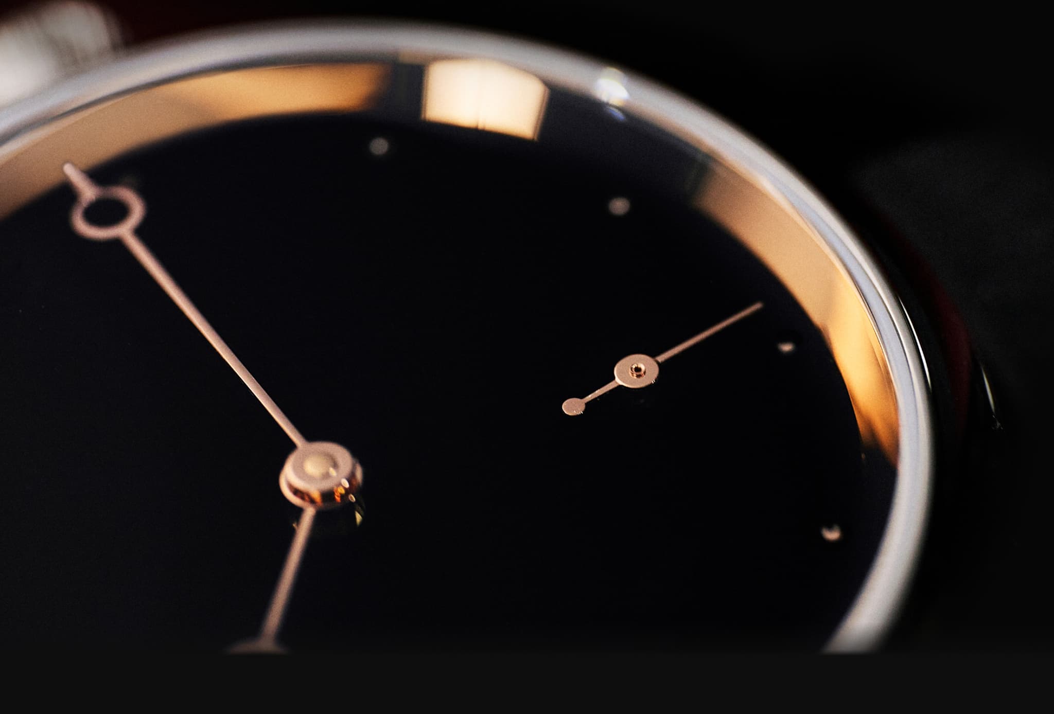 The Breguet hands and seconds sub dial are our nod to classic watchmaking and are especially striking as they float over the void-like dial.